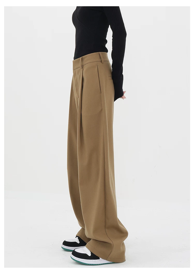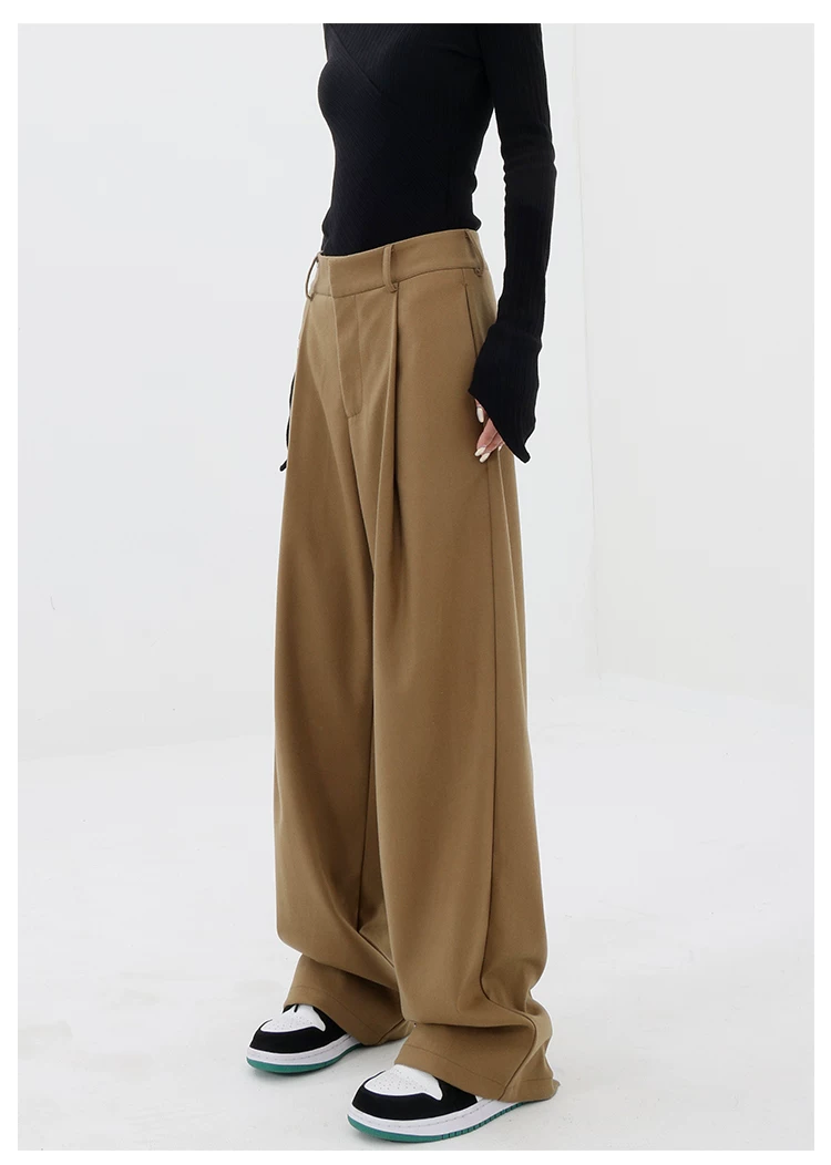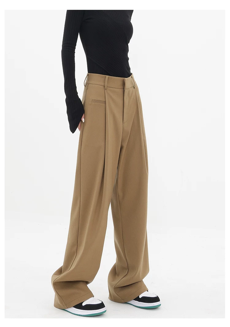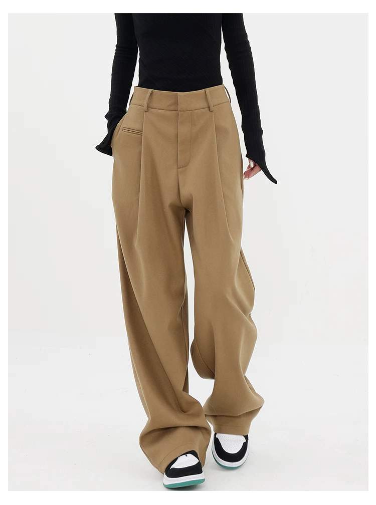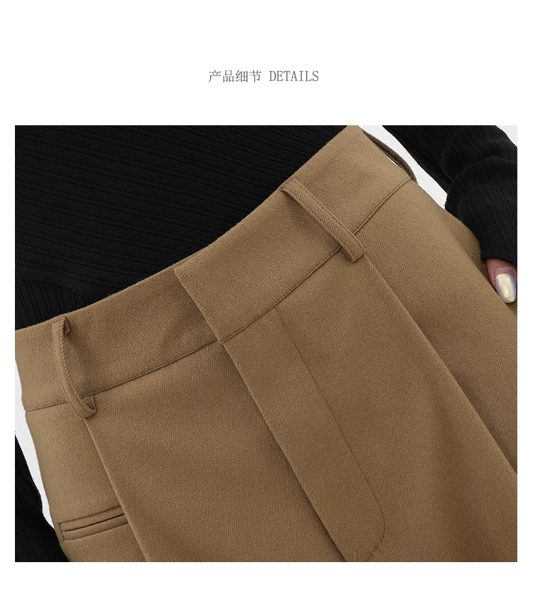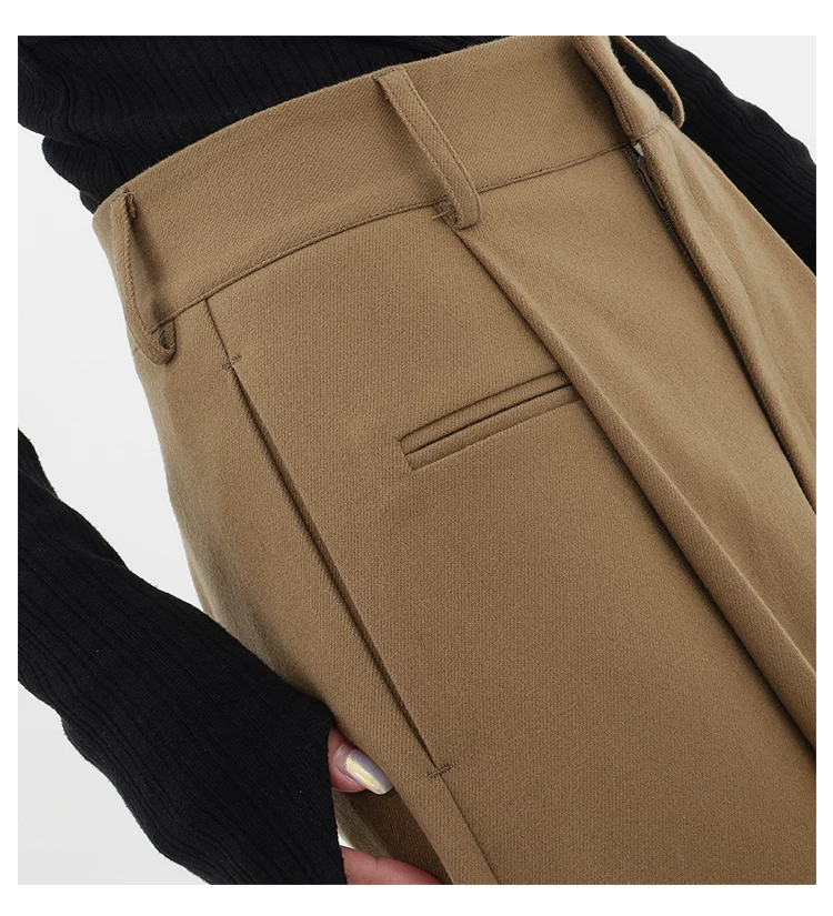 - KEN STUDIO quần tây ống đứng màu kaki dày dặn mùa thu đông dành cho nữ, quần ống đứng drapey, quần thường ngày, quần công sở.
