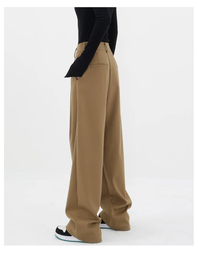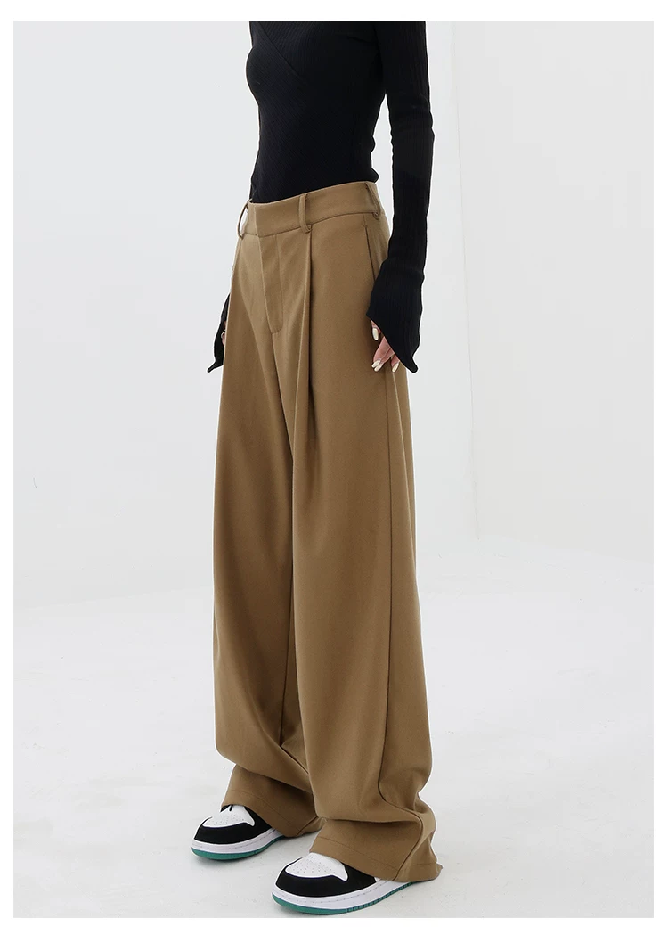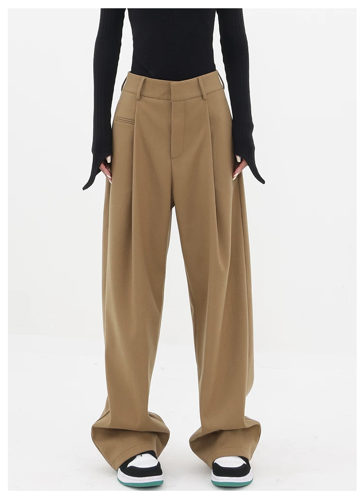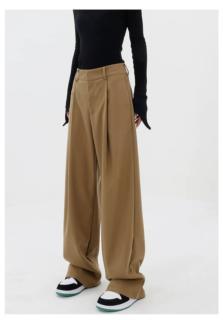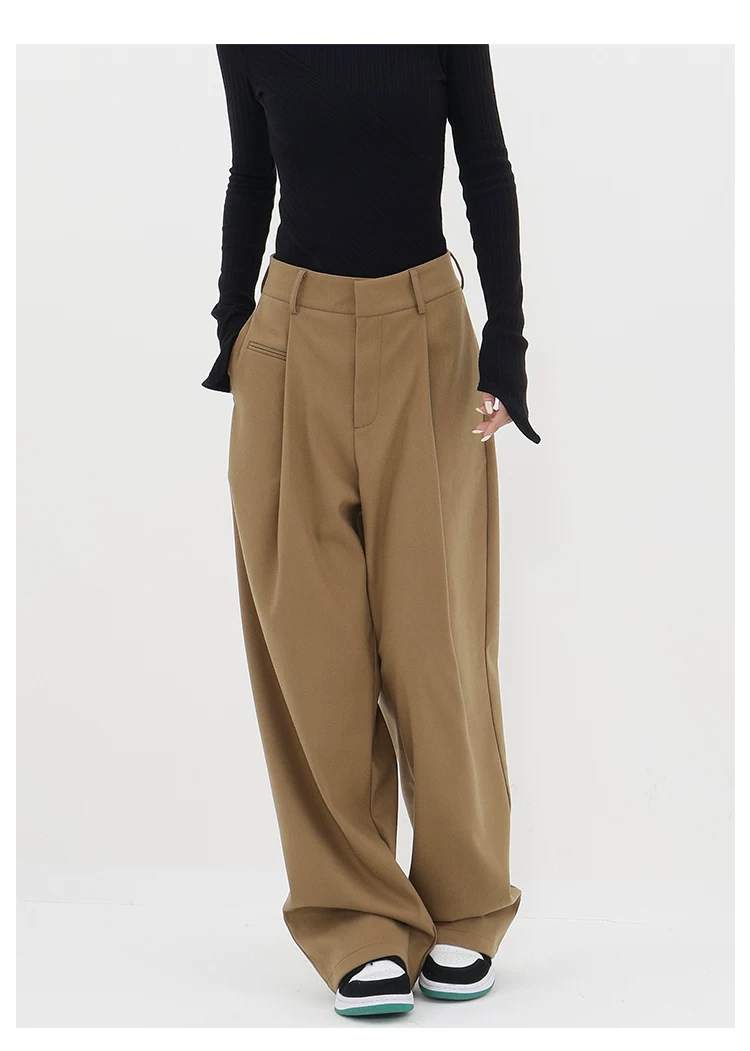 - KEN STUDIO quần tây ống đứng màu kaki dày dặn mùa thu đông dành cho nữ, quần ống đứng drapey, quần thường ngày, quần công sở.