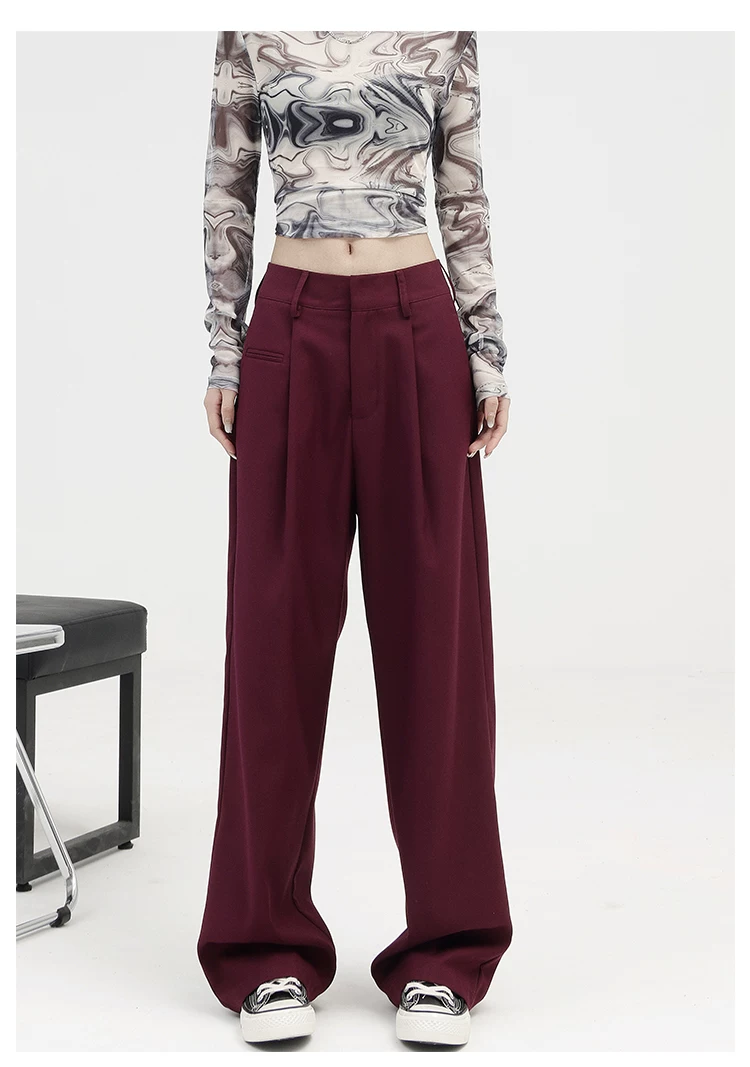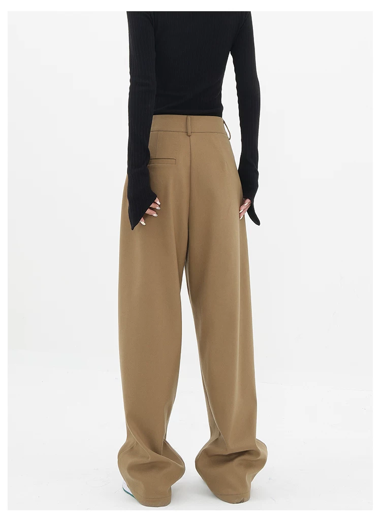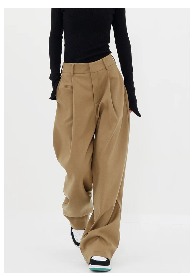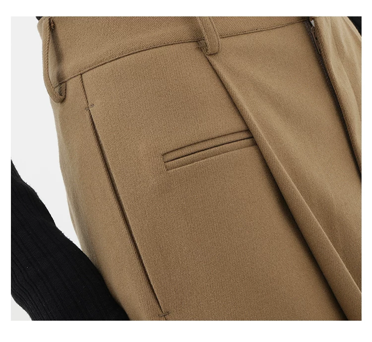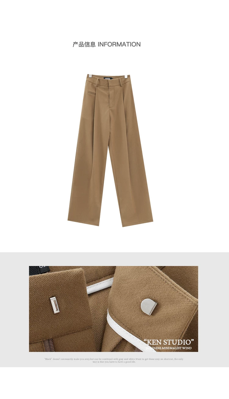 KEN STUDIO quần tây ống đứng màu kaki dày dặn mùa thu đông dành cho nữ, quần ống đứng drapey, quần thường ngày, quần công sở.