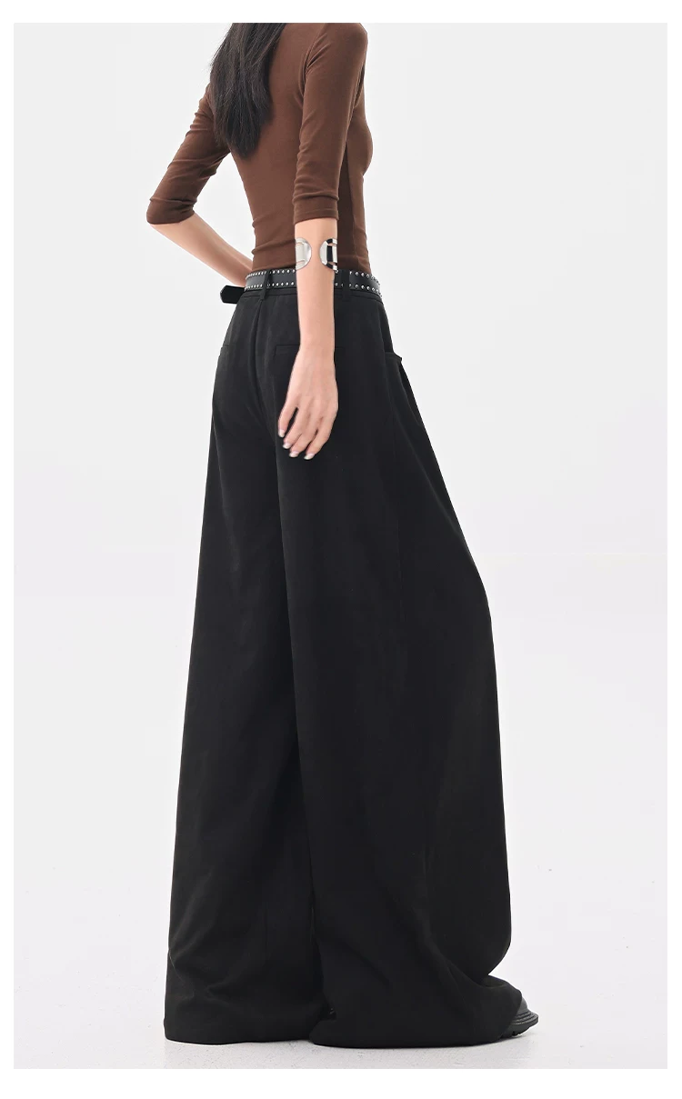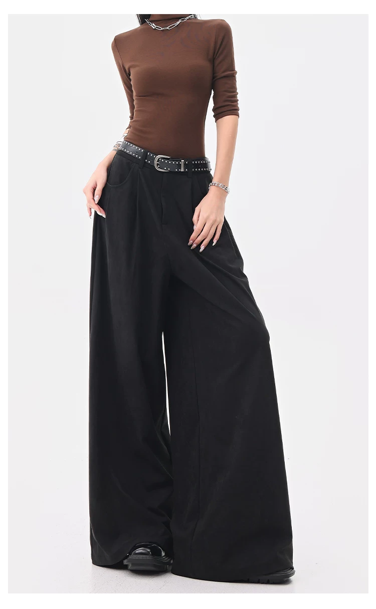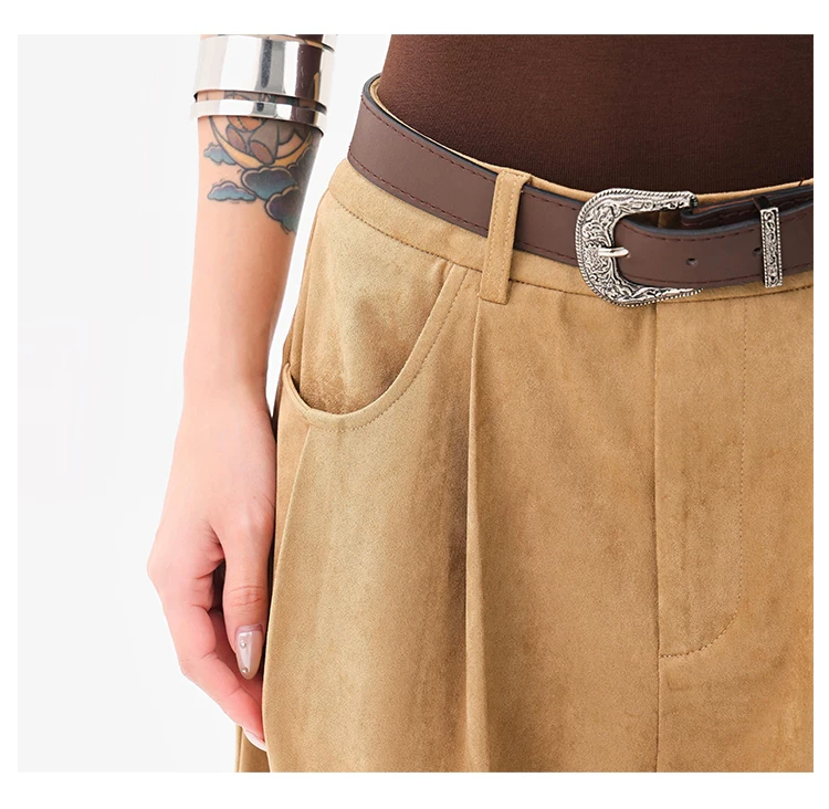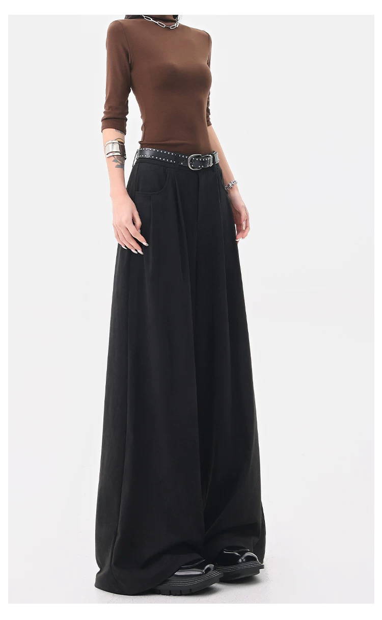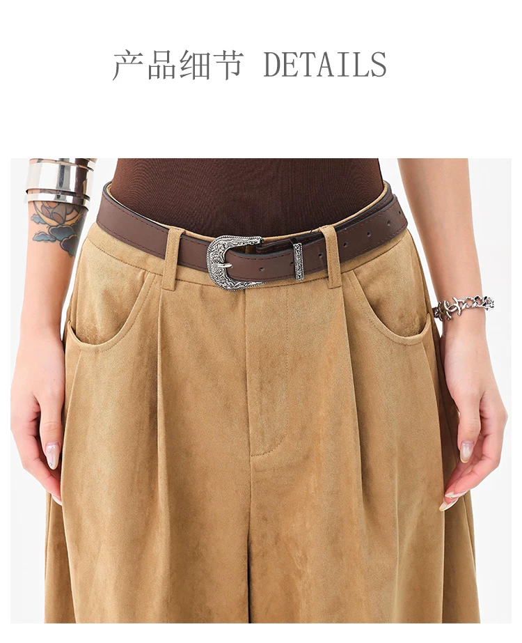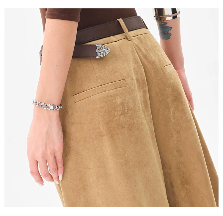 - KEN STUDIO Quần tây ống rộng da lộn màu kaki mới thu đông dành cho nữ, quần cạp cao, dáng rộng, quần thường ngày giúp giảm béo