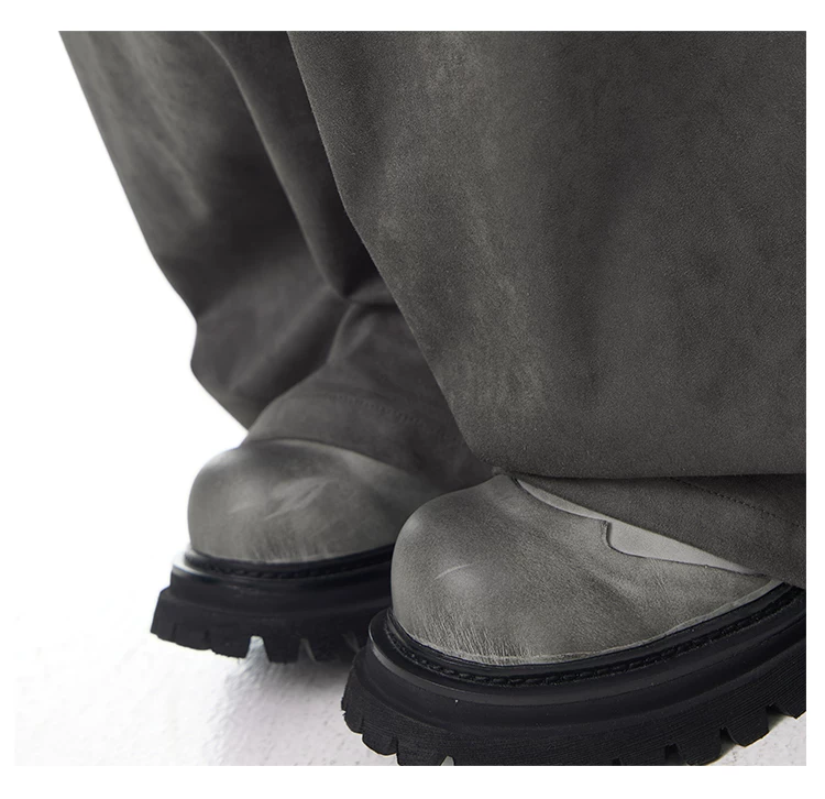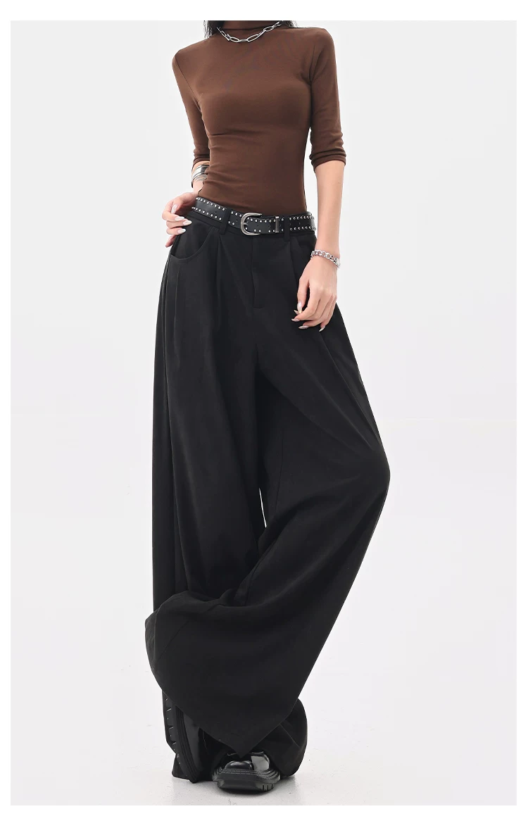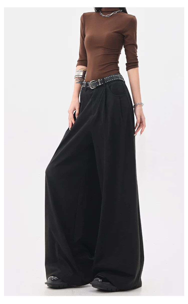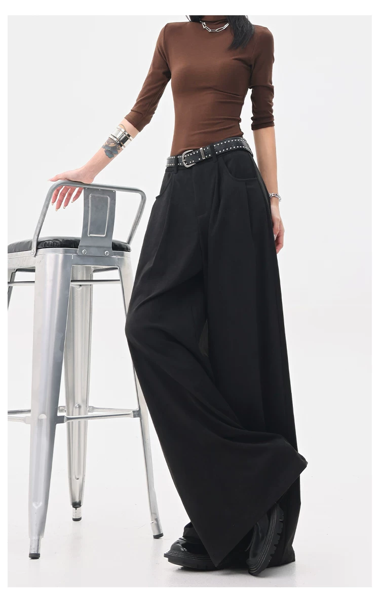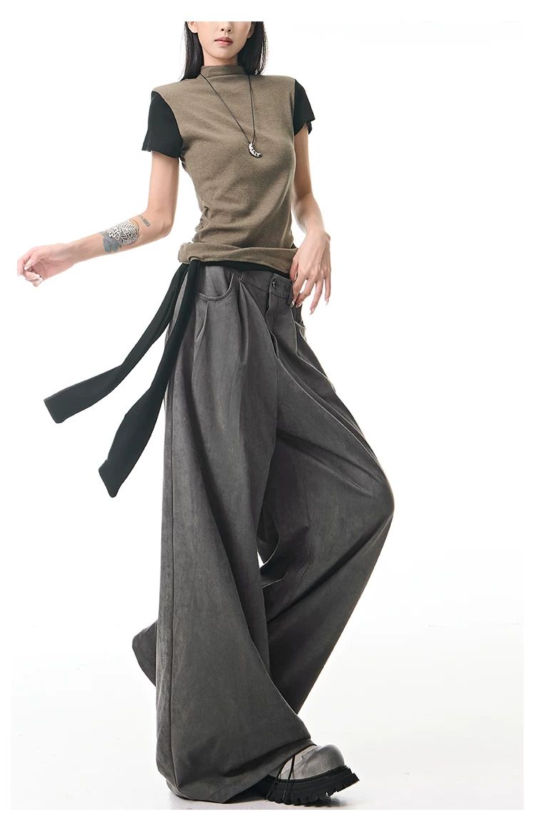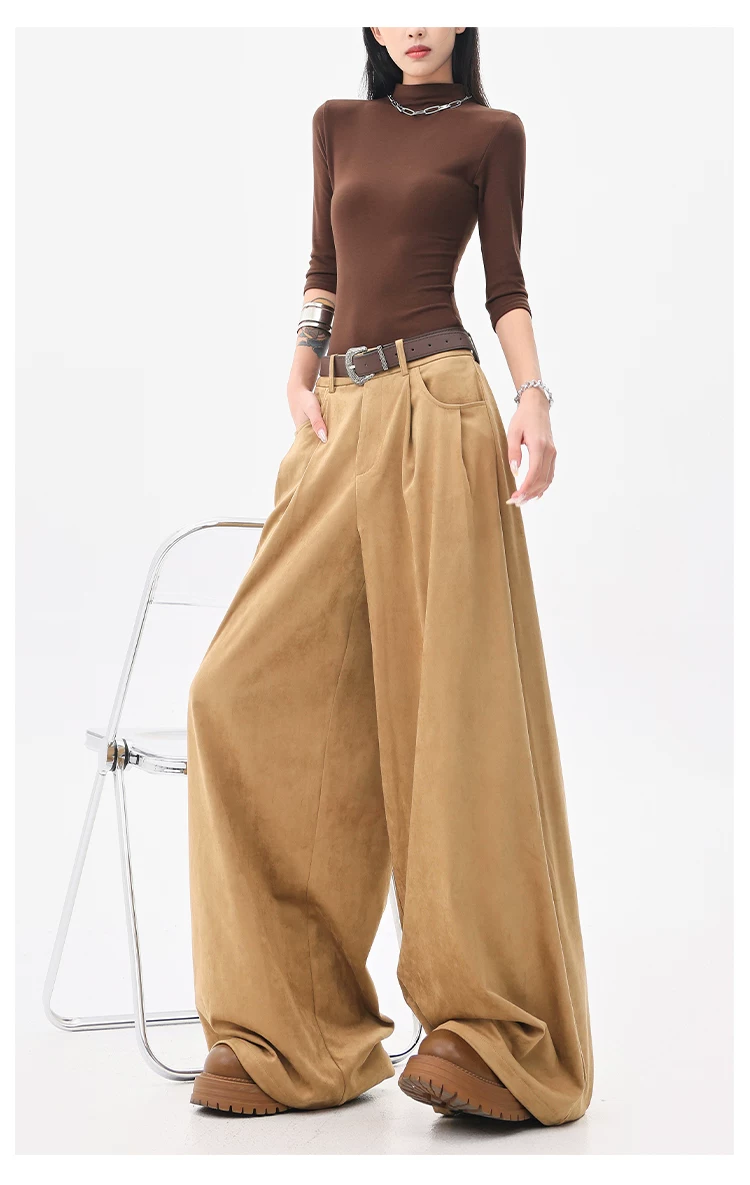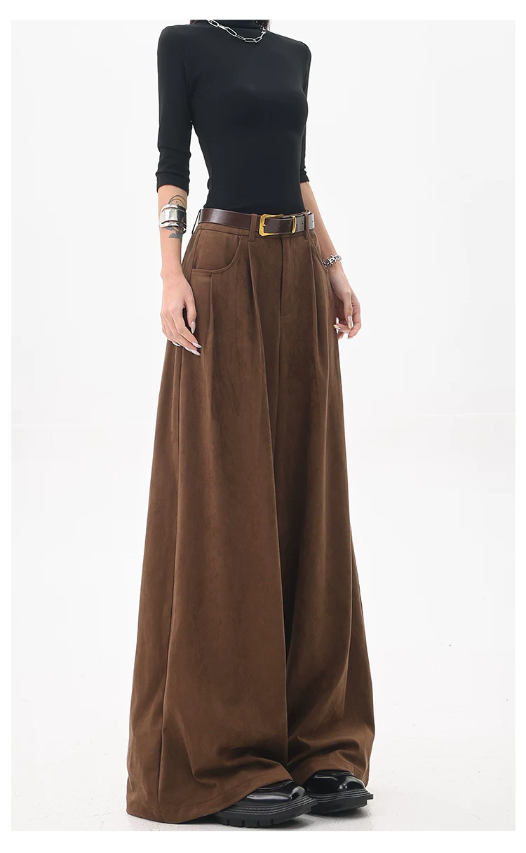 - KEN STUDIO Quần tây ống rộng da lộn màu xám thu đông mới dành cho nữ, quần cạp cao, dáng rộng, quần thường ngày giúp giảm béo