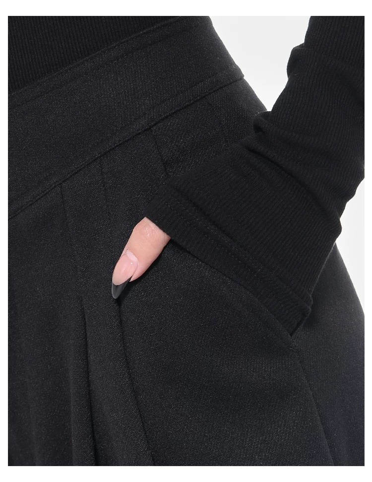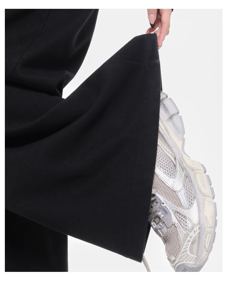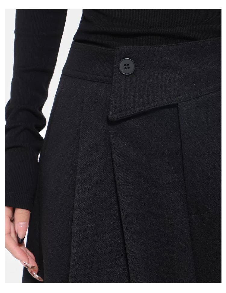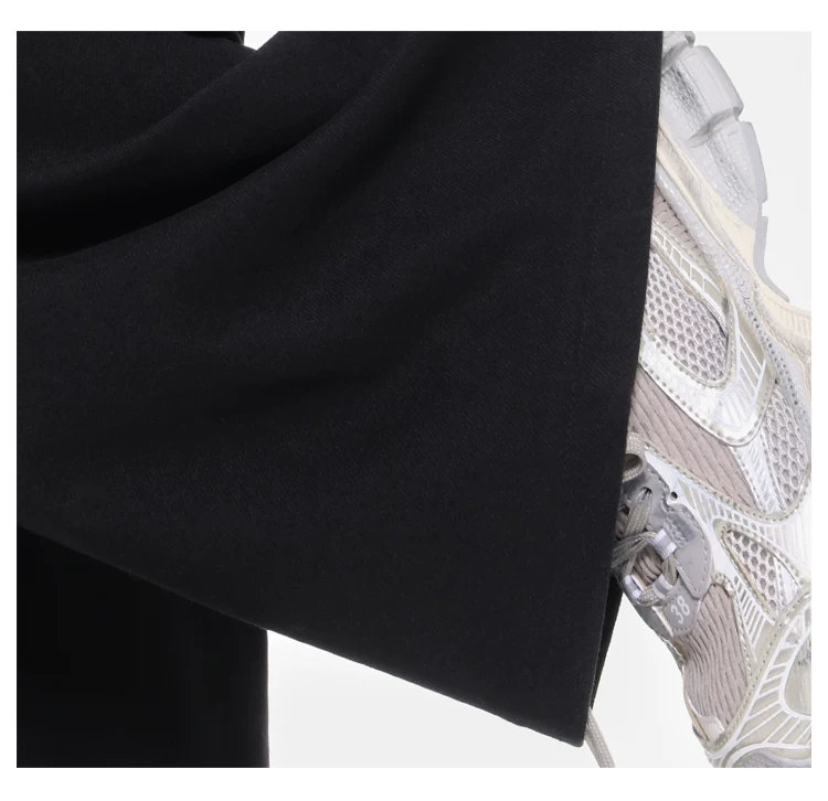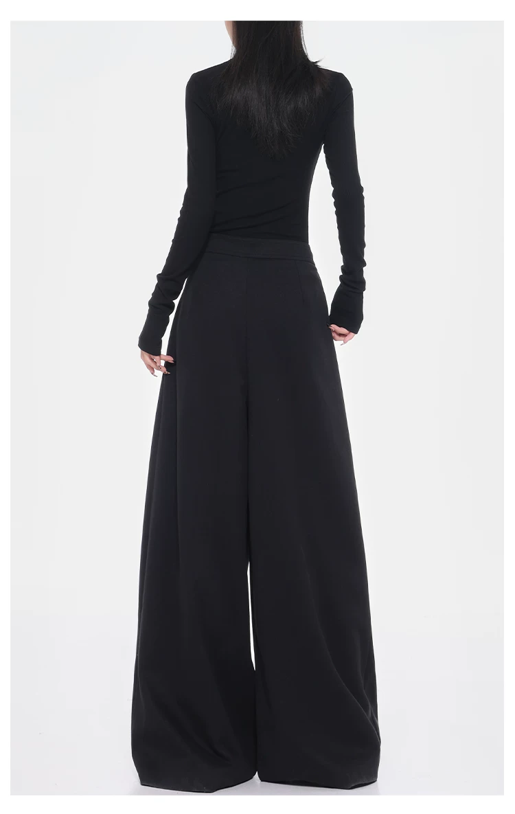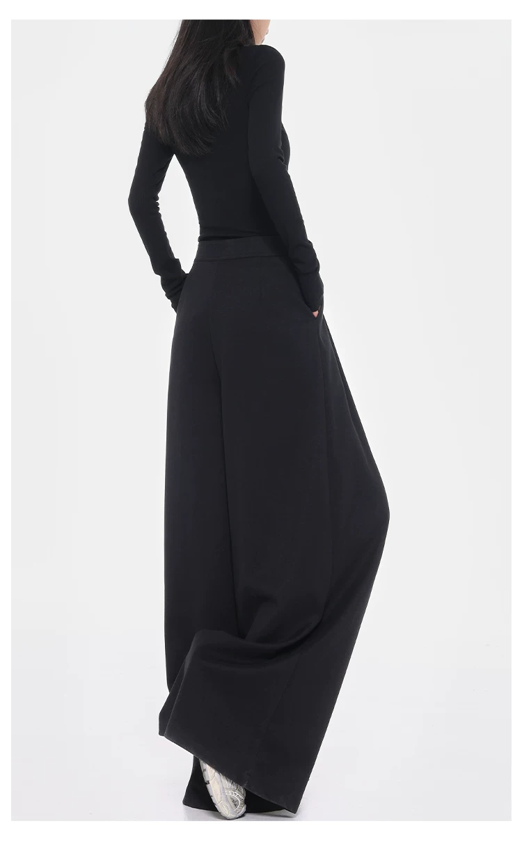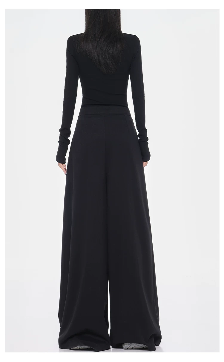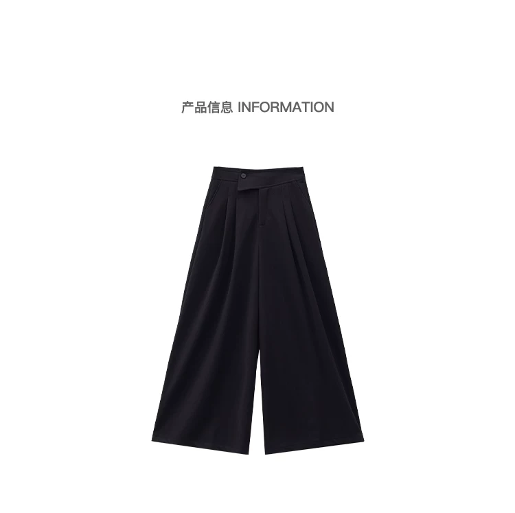 - KEN STUDIO Quần tây ống rộng dày dặn lưng cao thu đông mới dành cho nữ với thiết kế khuy chéo quần ống đứng kiểu dáng đơn giản