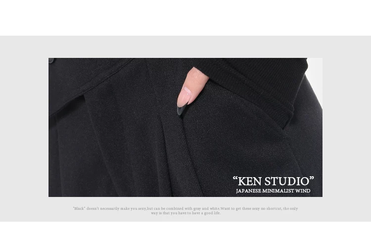 KEN STUDIO Quần tây ống rộng dày dặn lưng cao thu đông mới dành cho nữ với thiết kế khuy chéo quần ống đứng kiểu dáng đơn giản