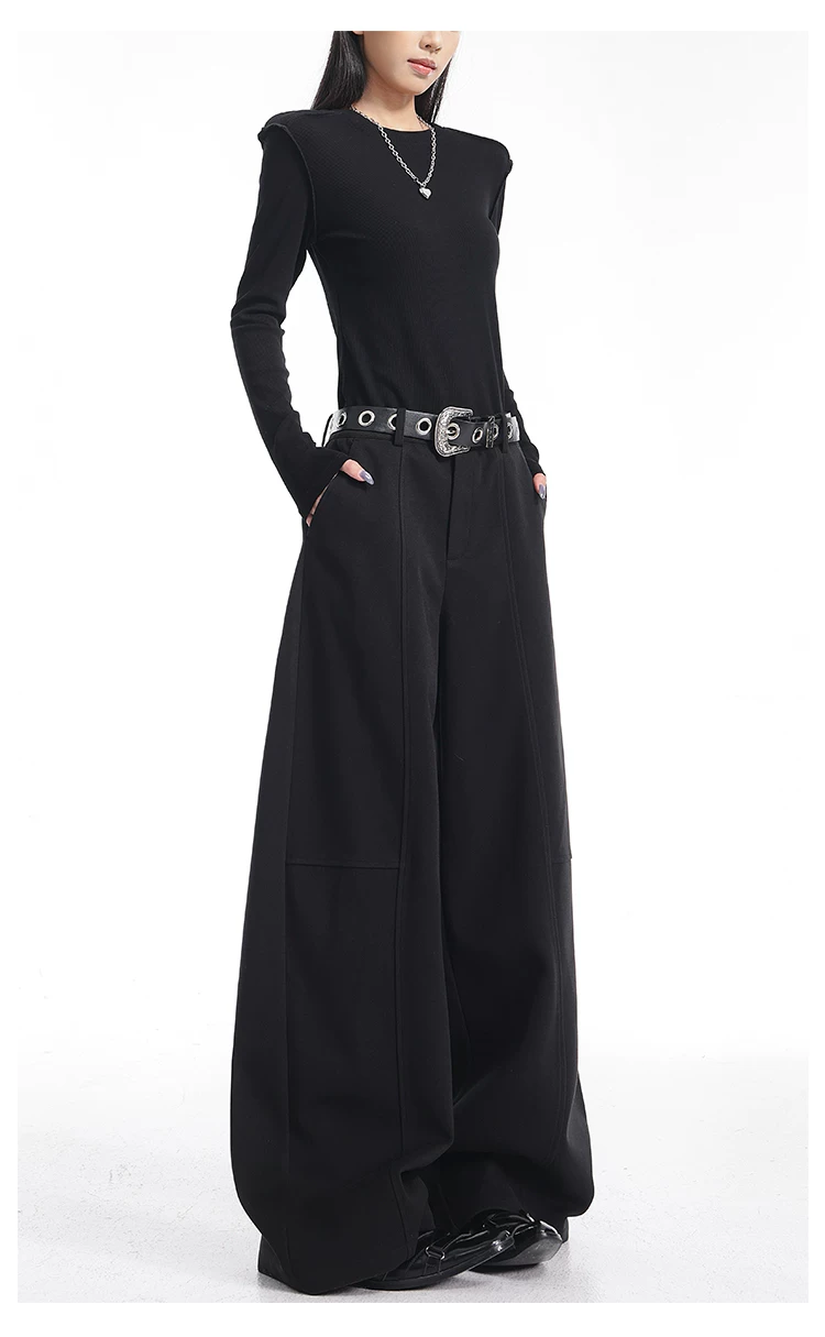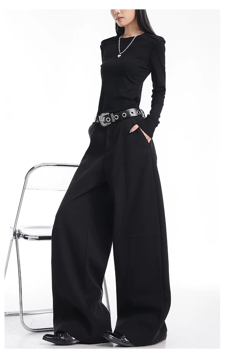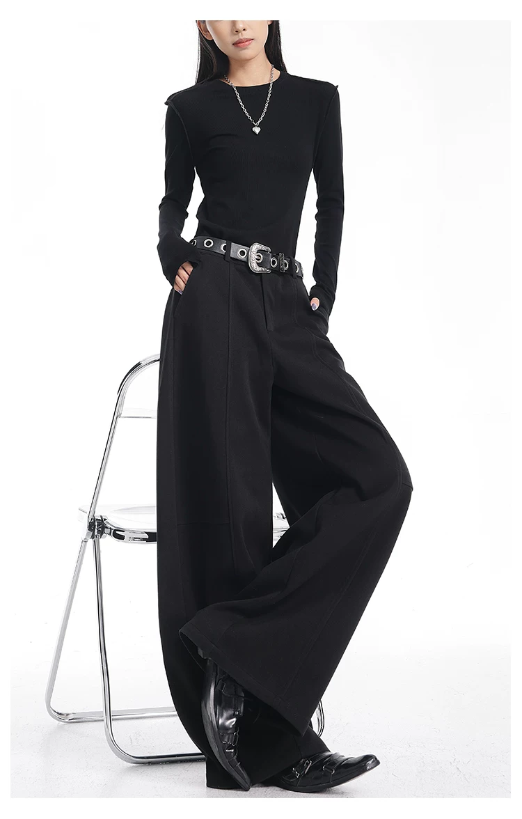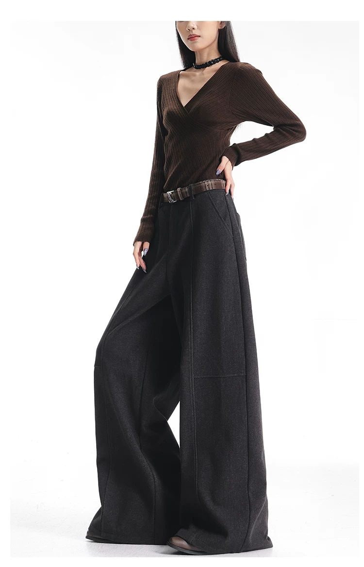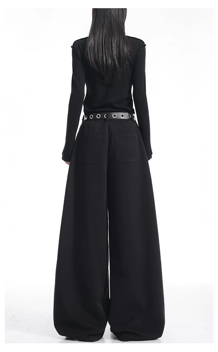 - KEN STUDIO Quần tây ống rộng len đen thu đông mới dành cho nữ, dáng rộng, thon gọn, quần dài dày dặn