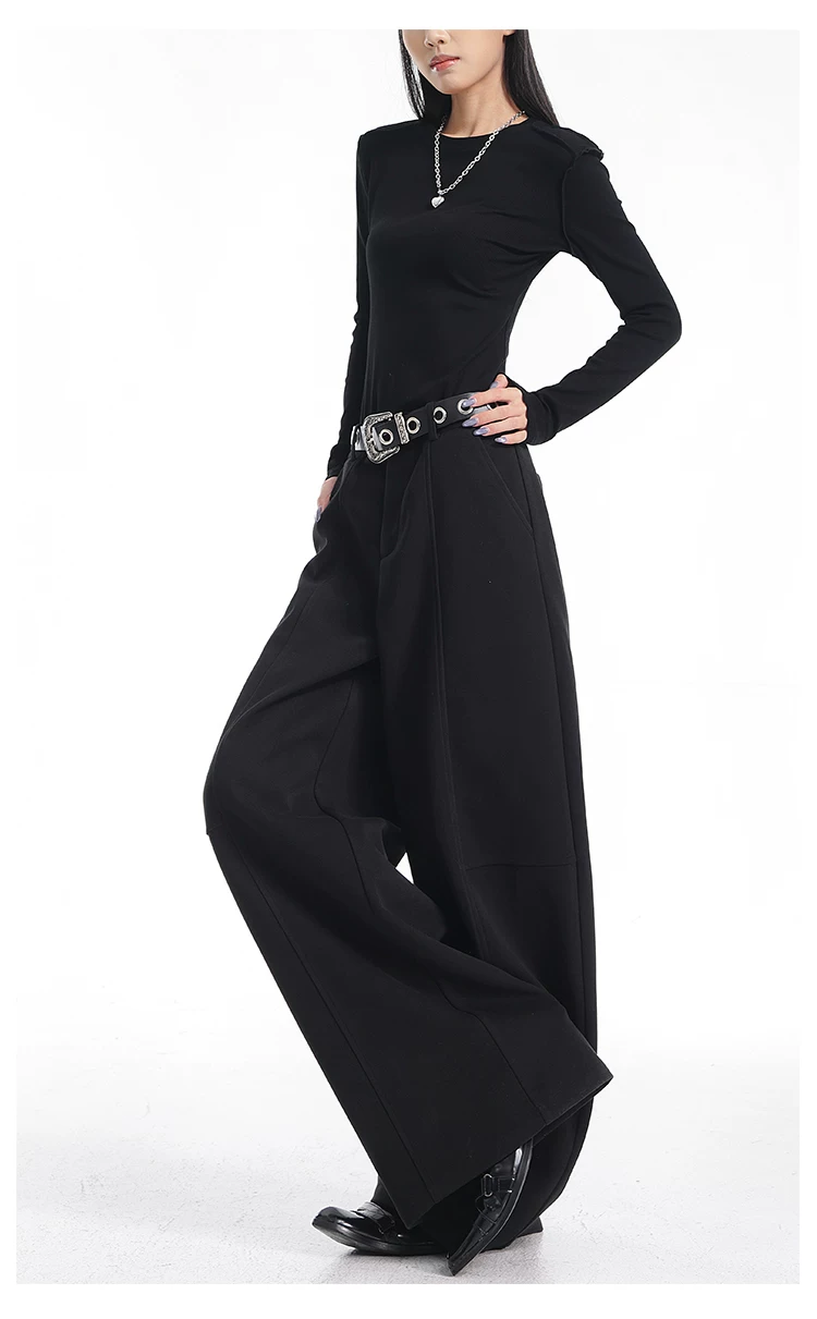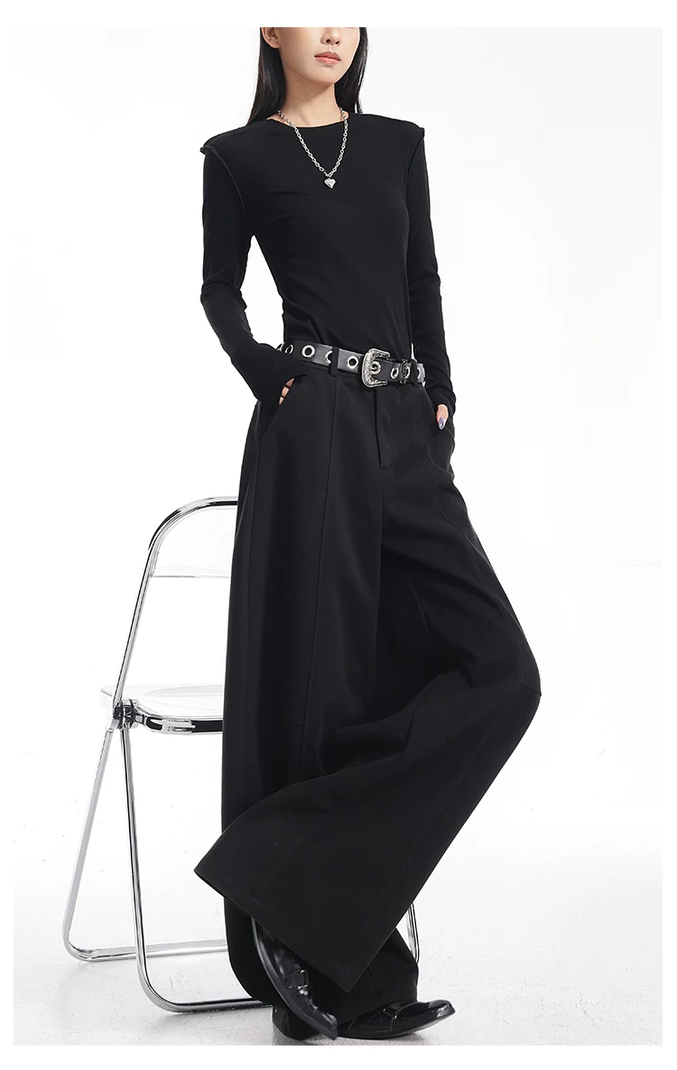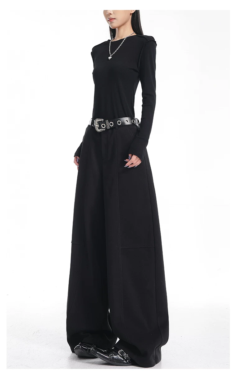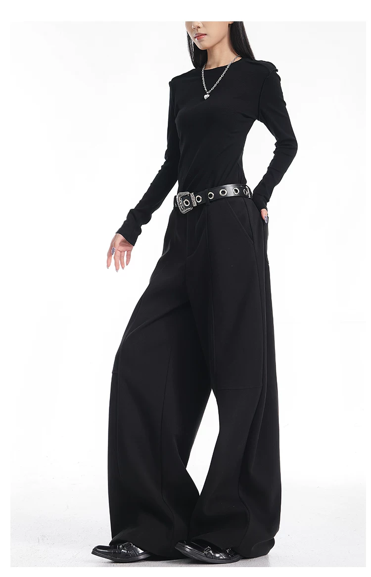 - KEN STUDIO Quần tây ống rộng len đen thu đông mới dành cho nữ, dáng rộng, thon gọn, quần dài dày dặn