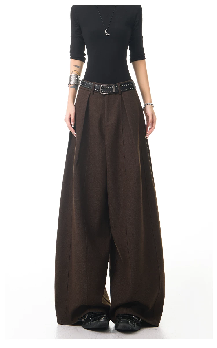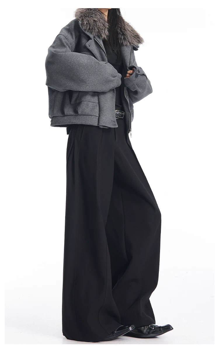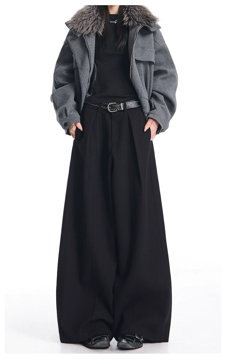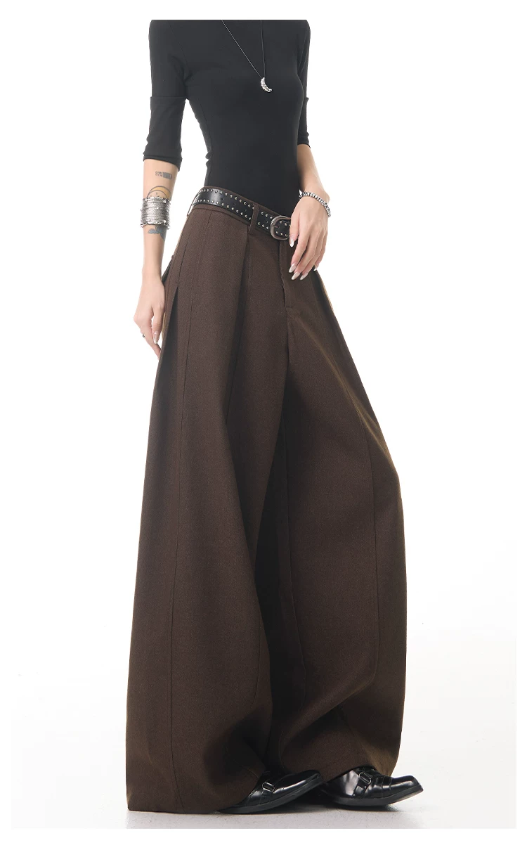 - KEN STUDIO Quần tây ống rộng len màu xám thu đông mới dành cho nữ, quần cạp cao, tôn dáng, quần dài xếp nếp