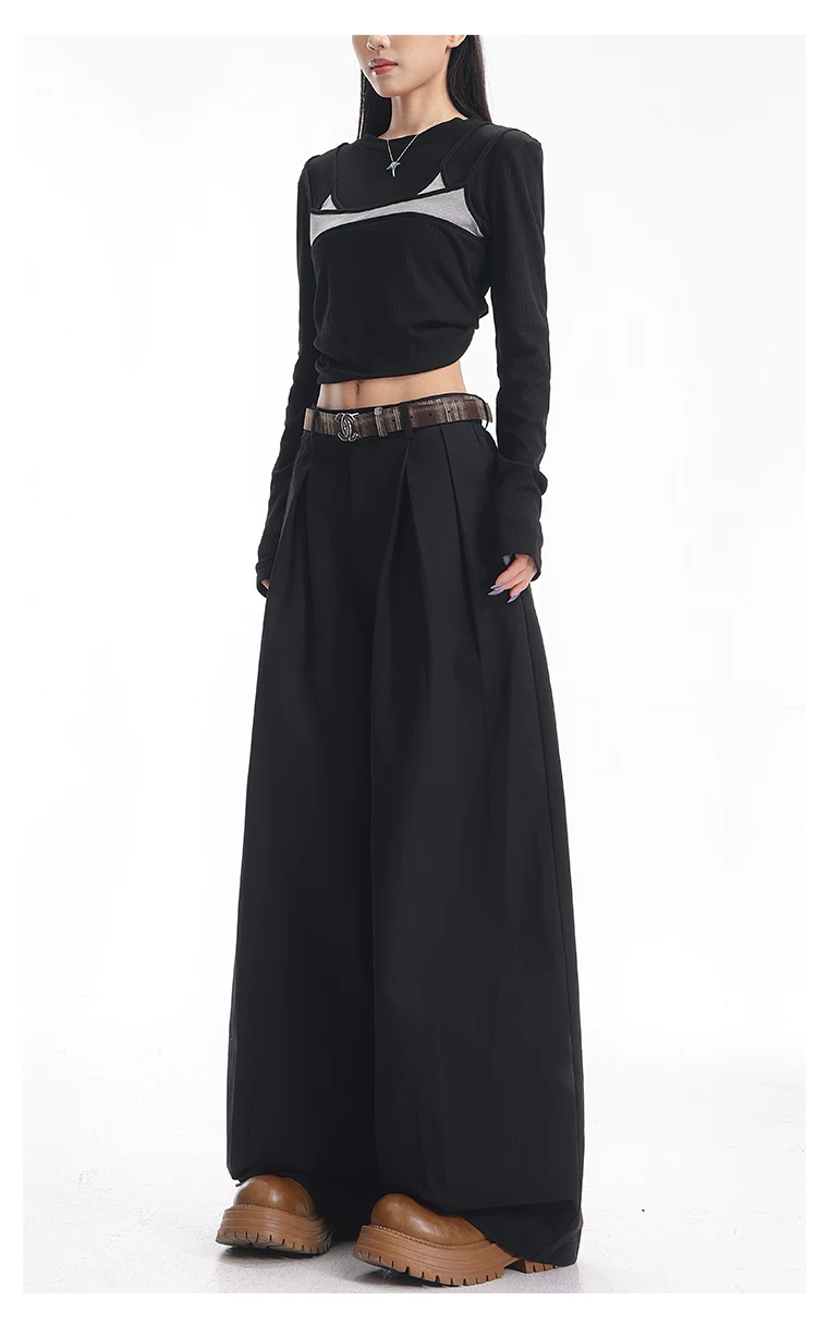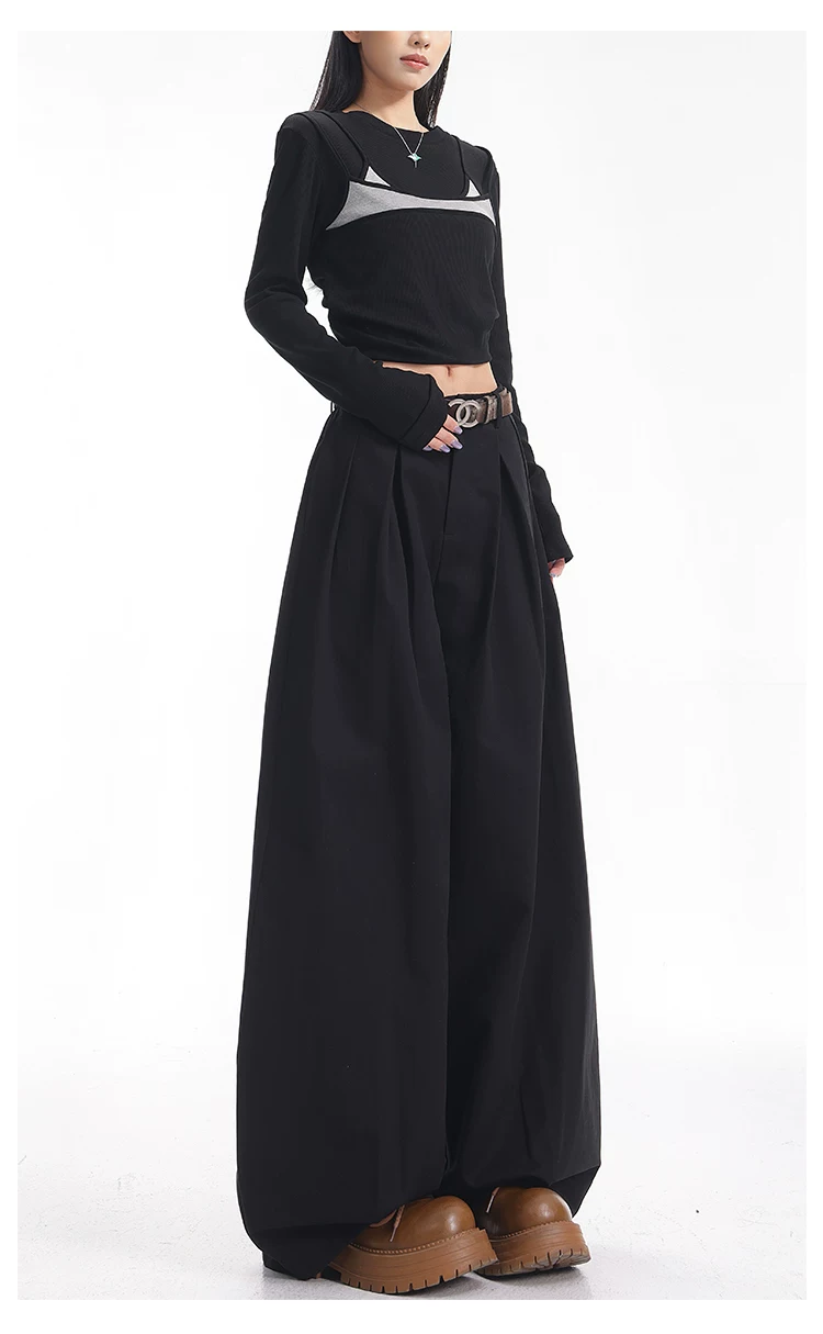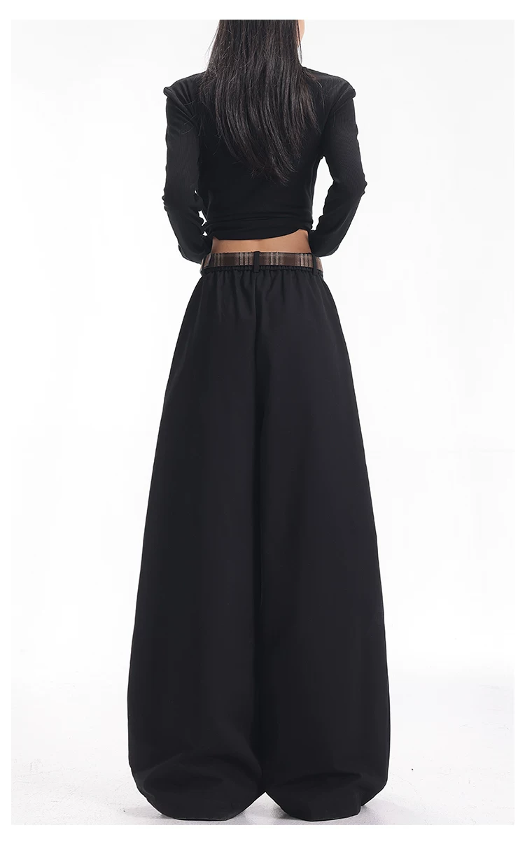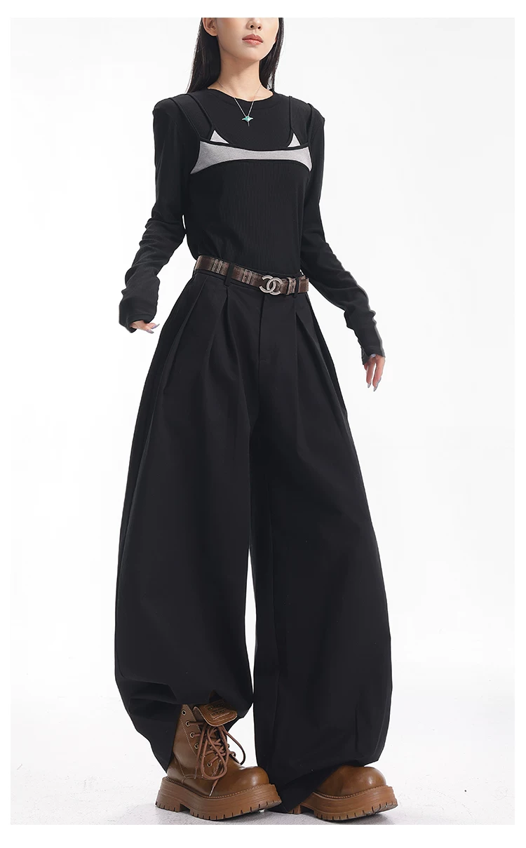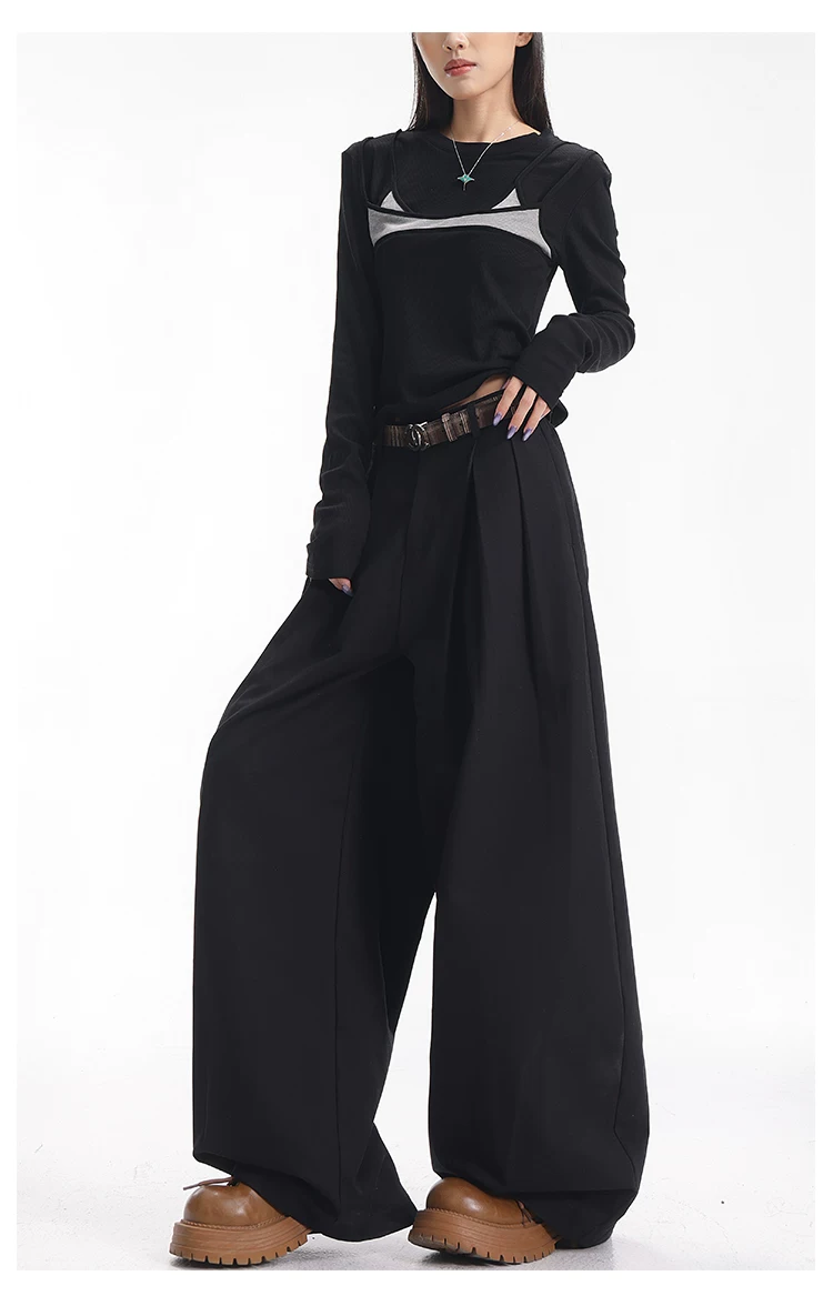 - KEN STUDIO Quần tây ống rộng màu đen thu đông mới dành cho nữ với thiết kế xếp ly, quần ống rộng dáng suông và tôn dáng