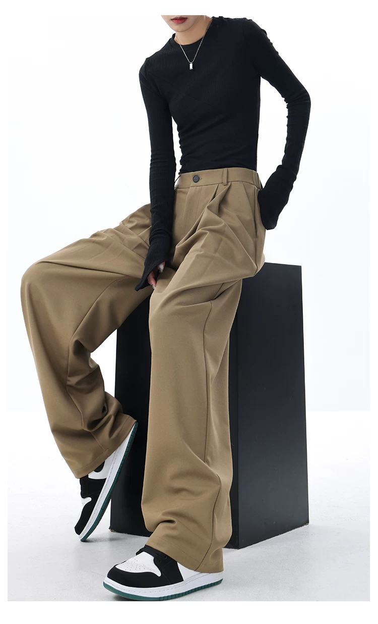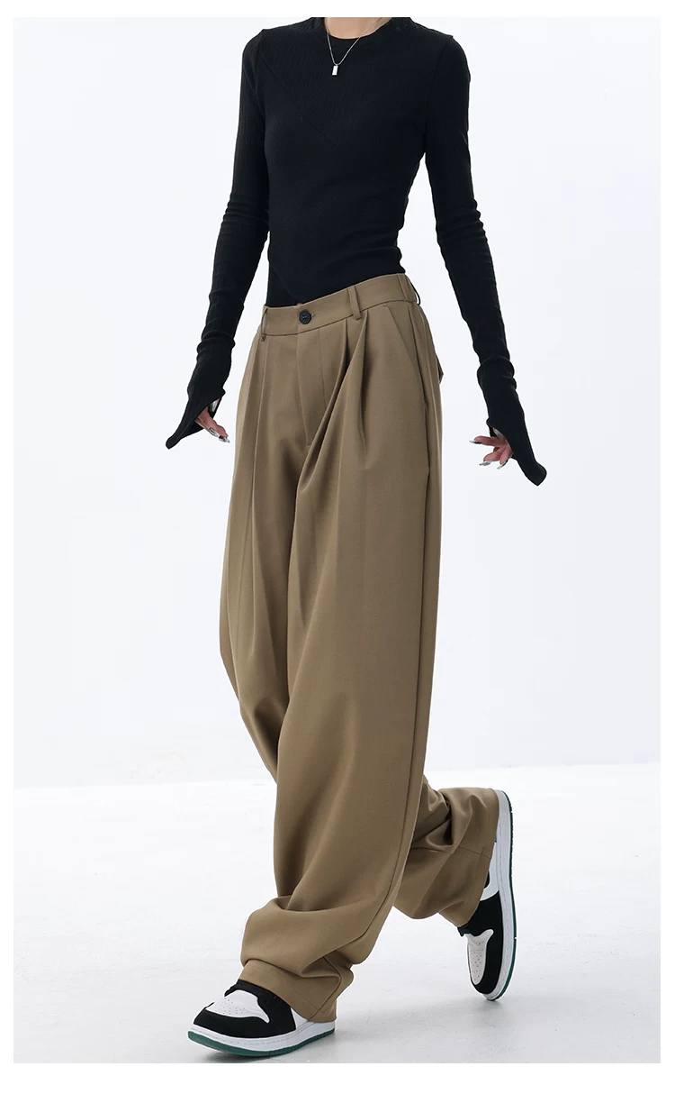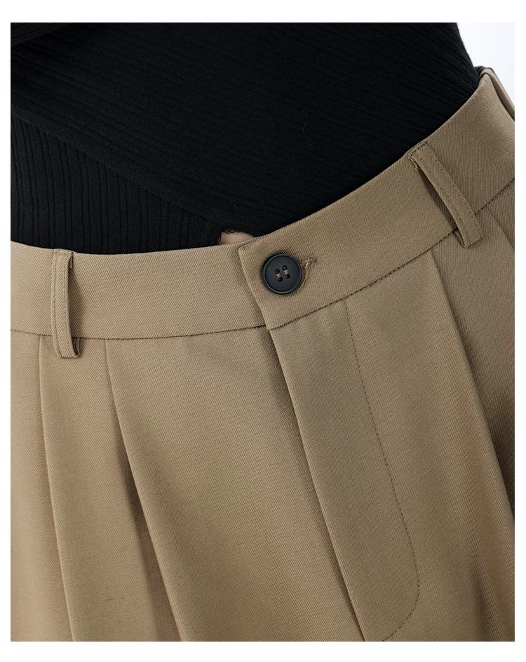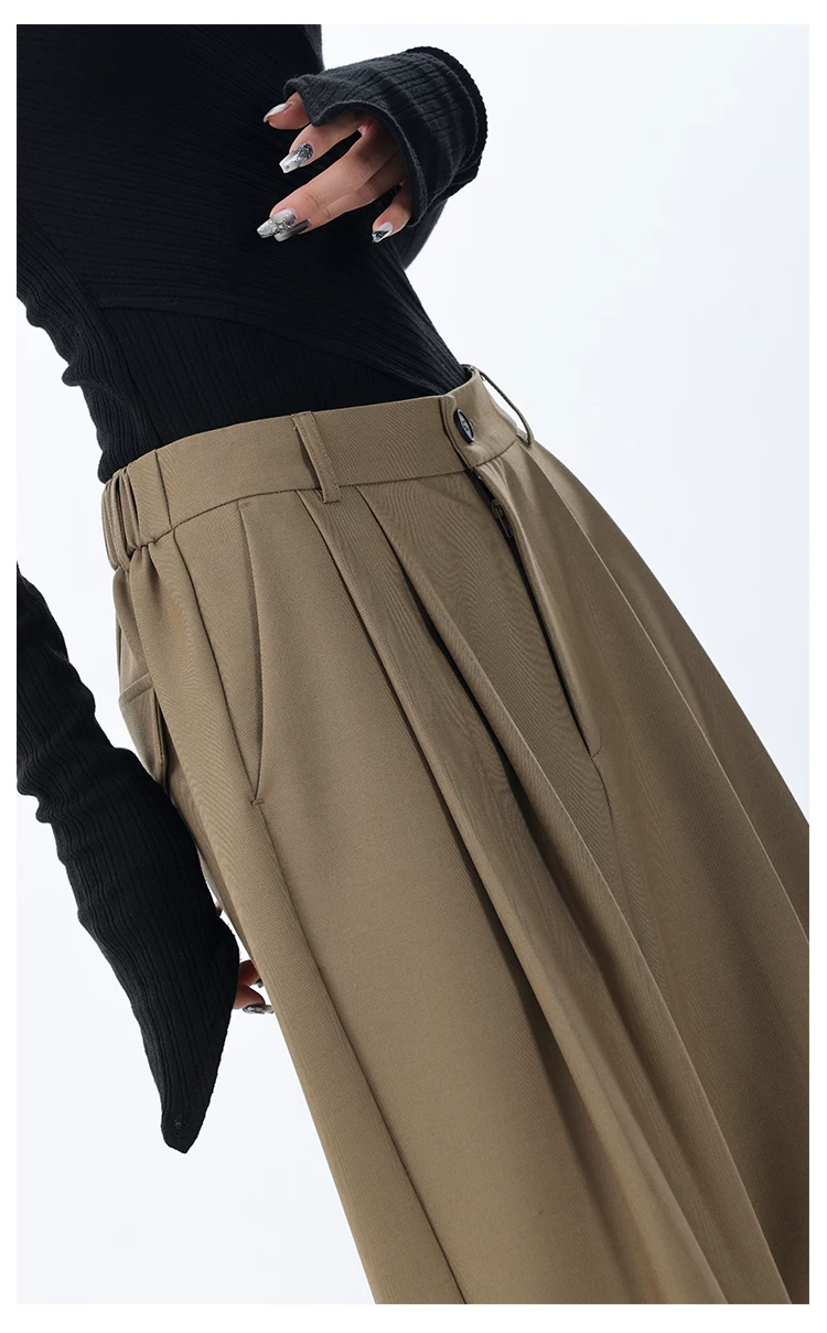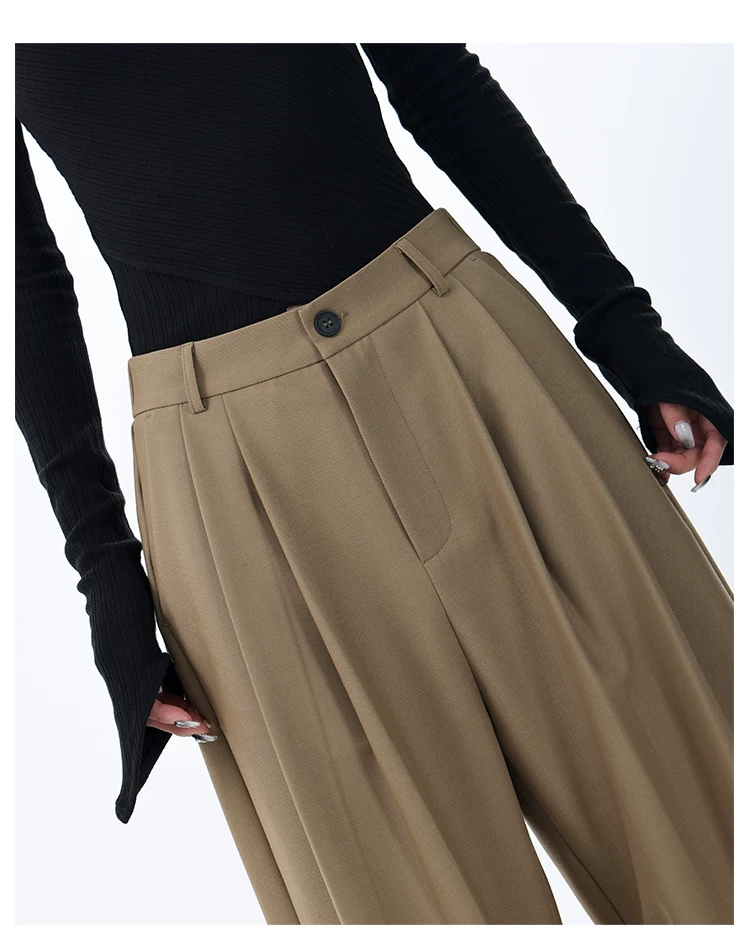 - KEN STUDIO quần tây ống rộng màu kaki dành cho nữ mùa xuân thu 2023 mới quần tây ống đứng quần tây quần âu