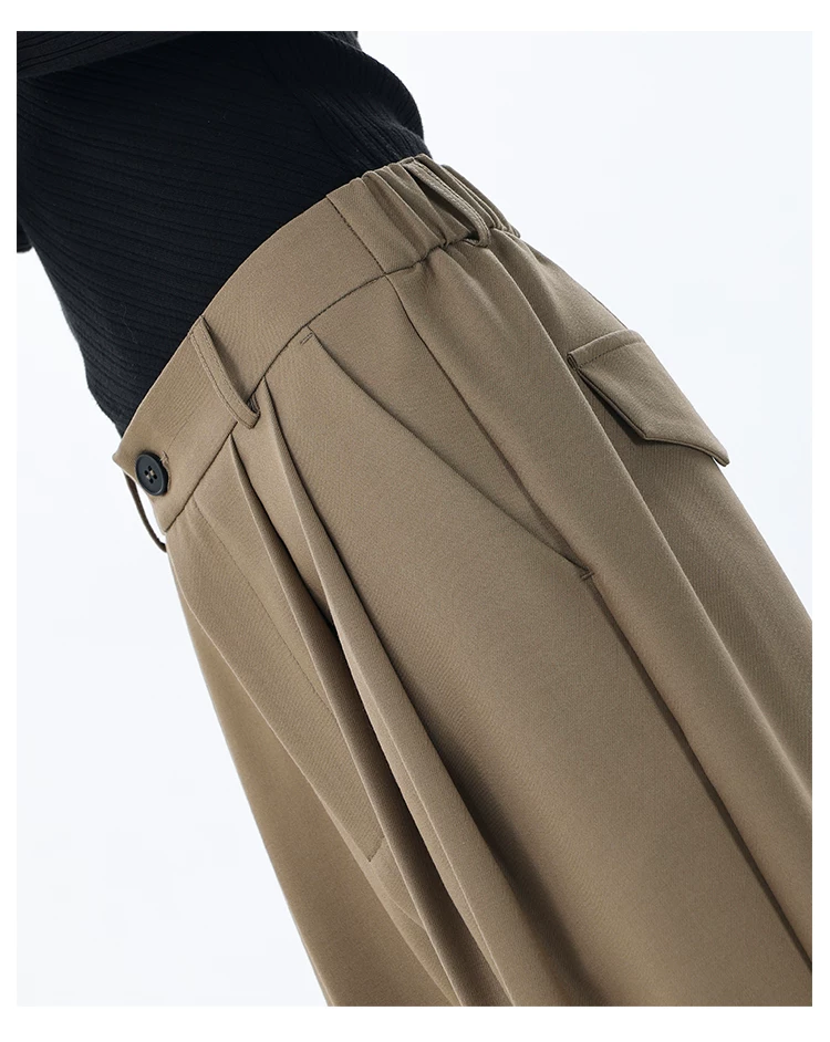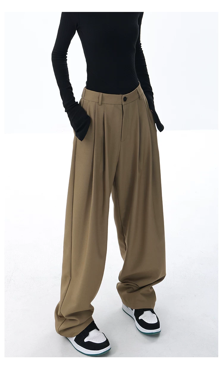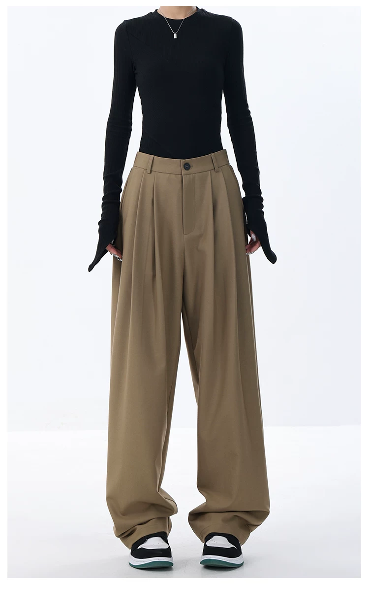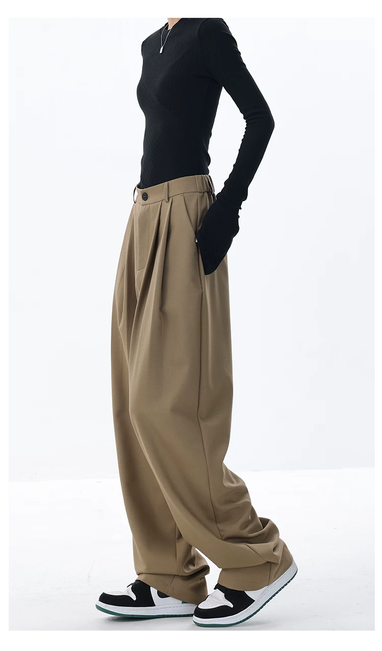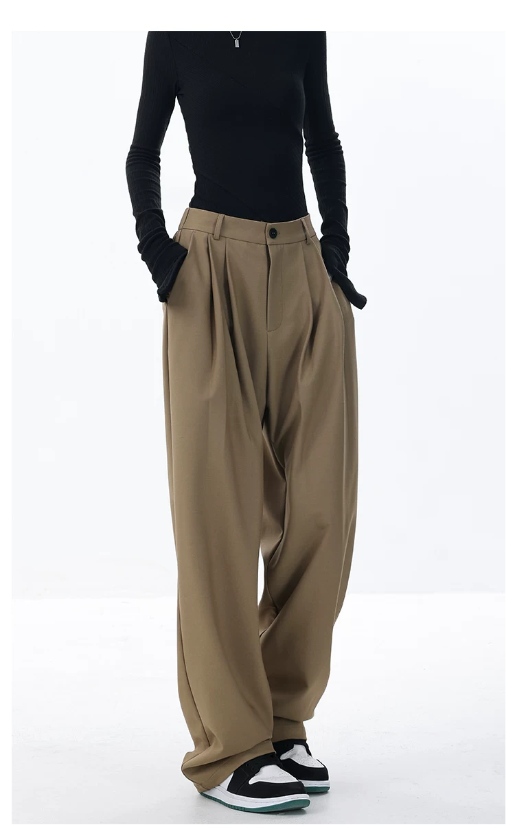 - KEN STUDIO quần tây ống rộng màu kaki dành cho nữ mùa xuân thu 2023 mới quần tây ống đứng quần tây quần âu