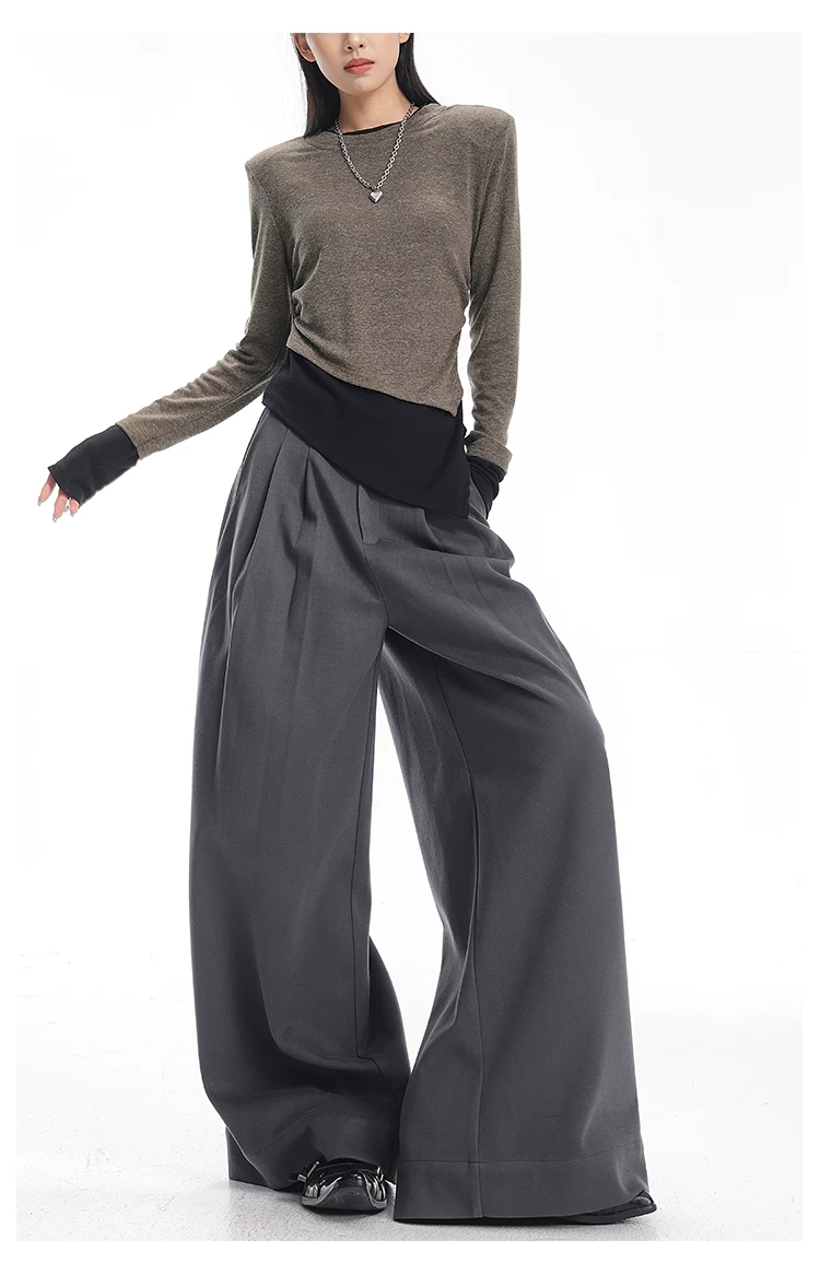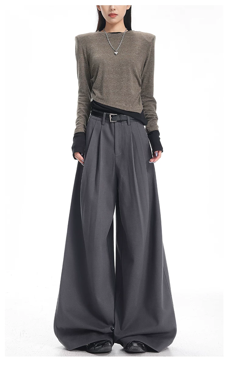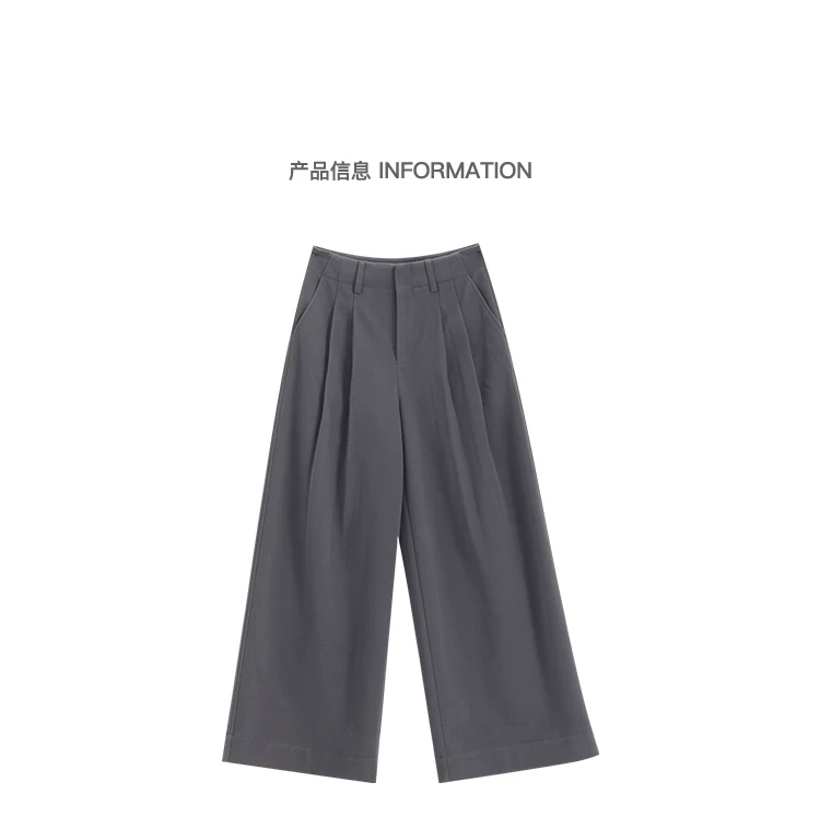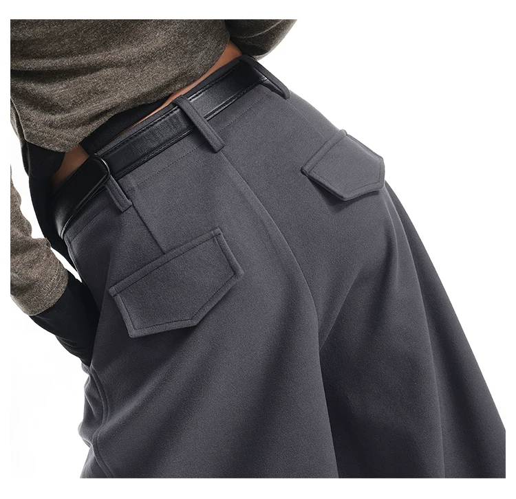 - KEN STUDIO Quần tây ống rộng màu xám thu đông mới dành cho nữ, chất liệu len dày, quần dài dáng rộng cao cấp