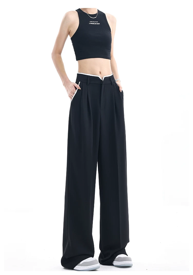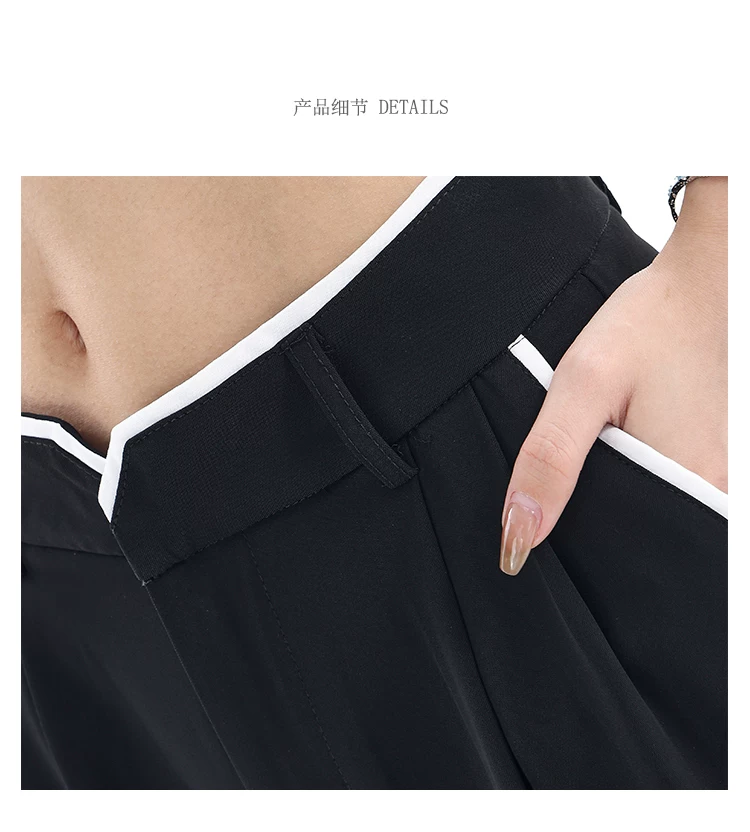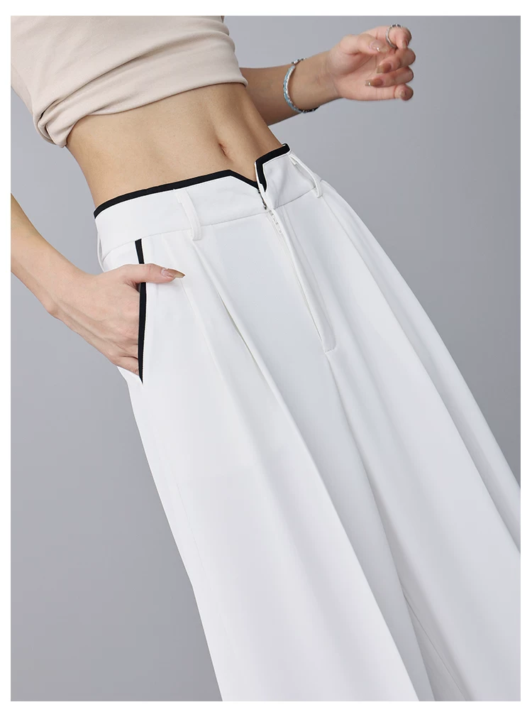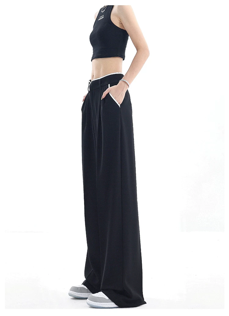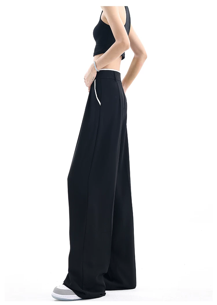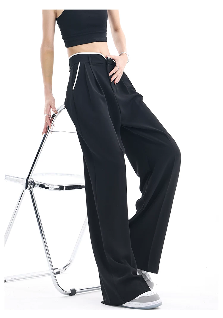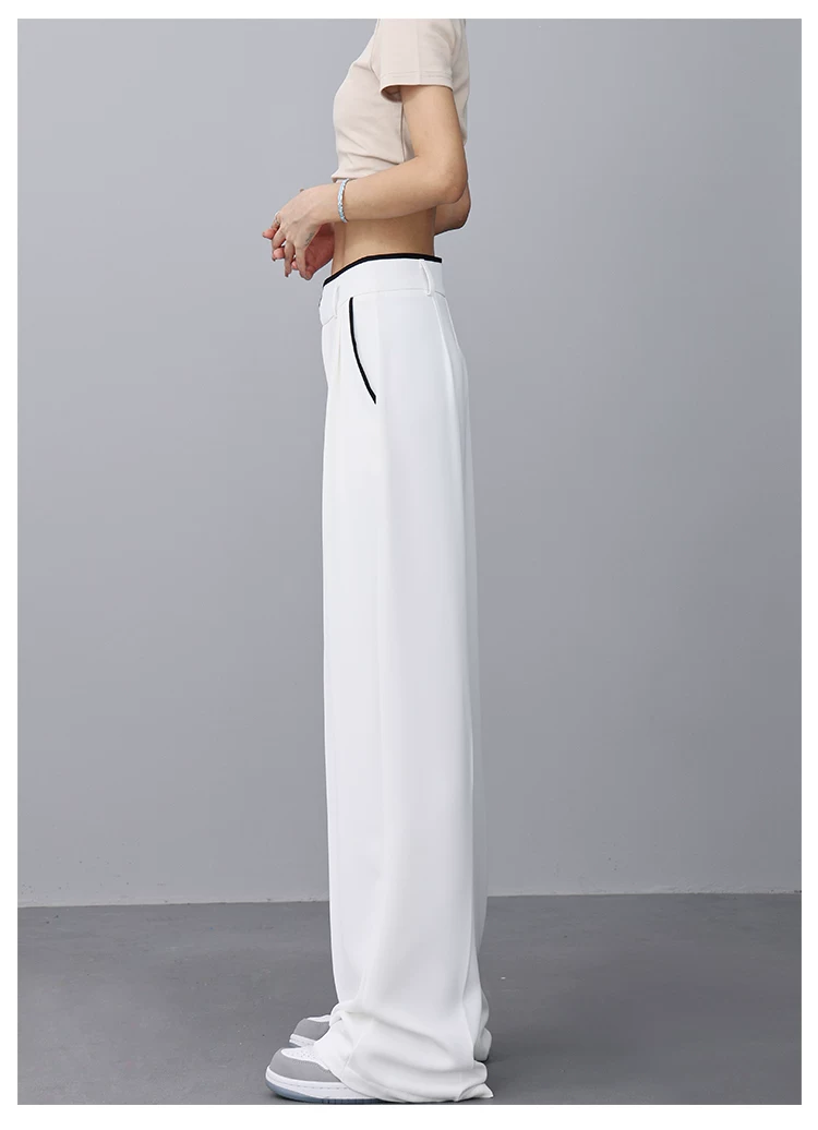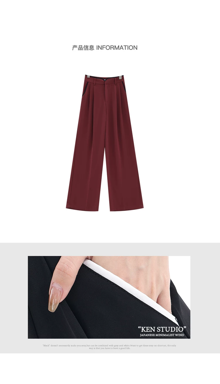 - KEN STUDIO quần tây ống rộng mới mùa hè dành cho nữ với thiết kế màu sắc tương phản, quần dài dáng rộng, phong cách giản dị