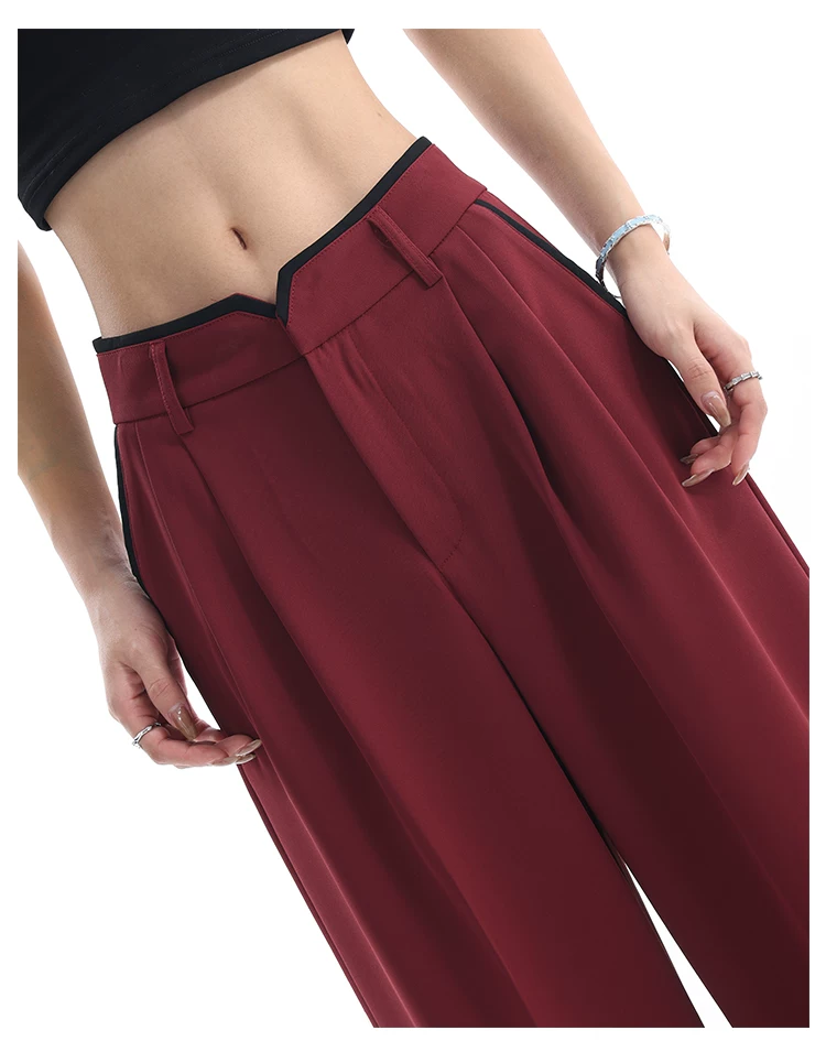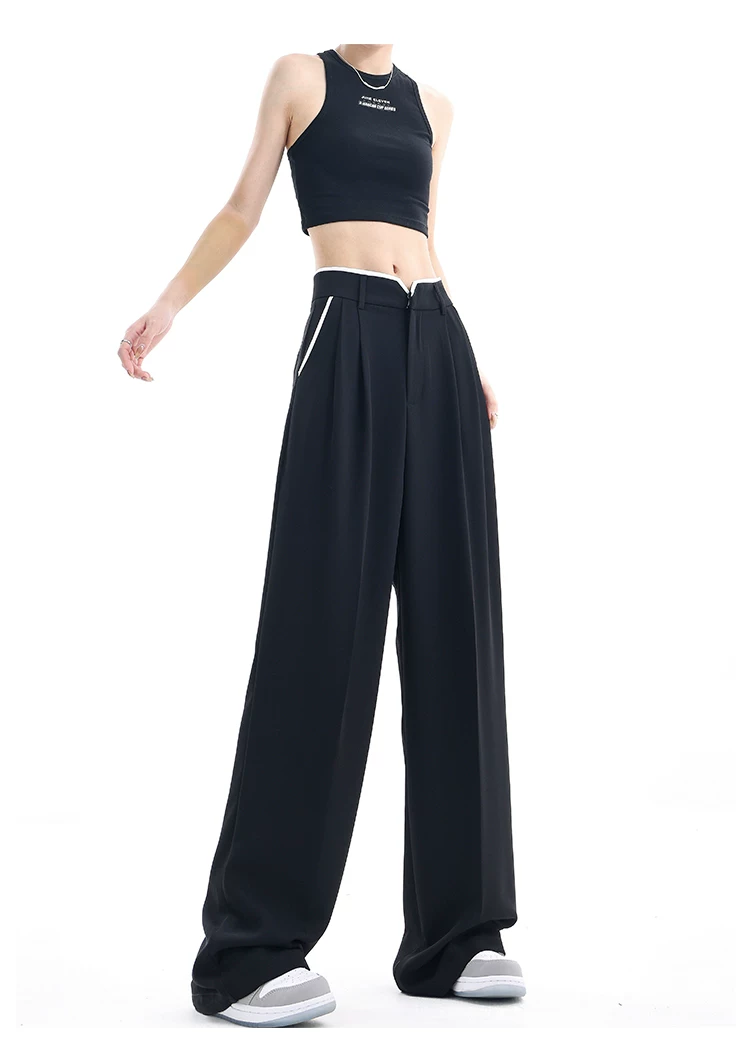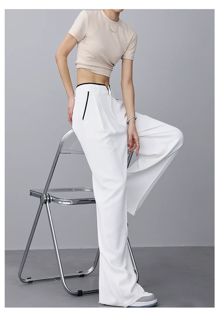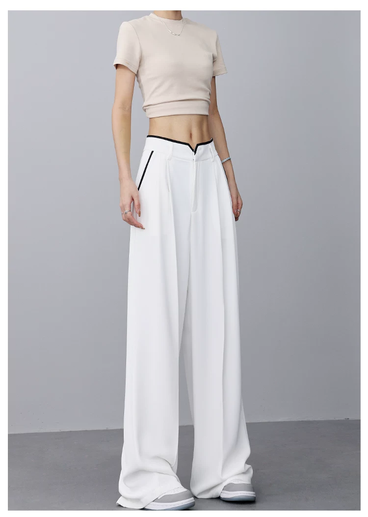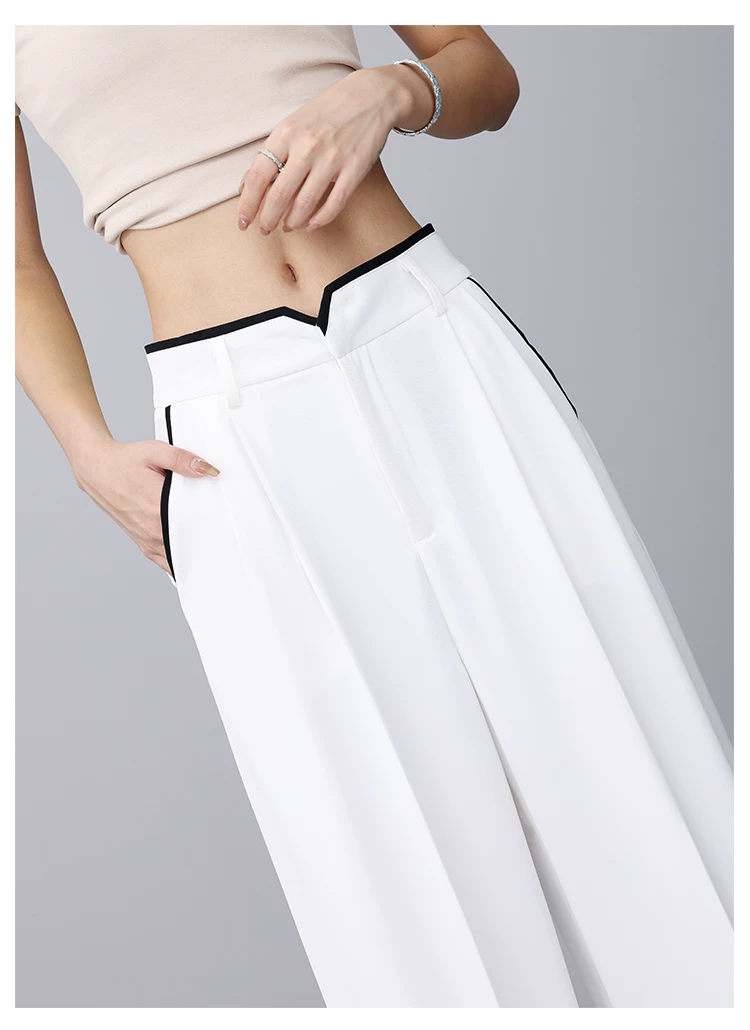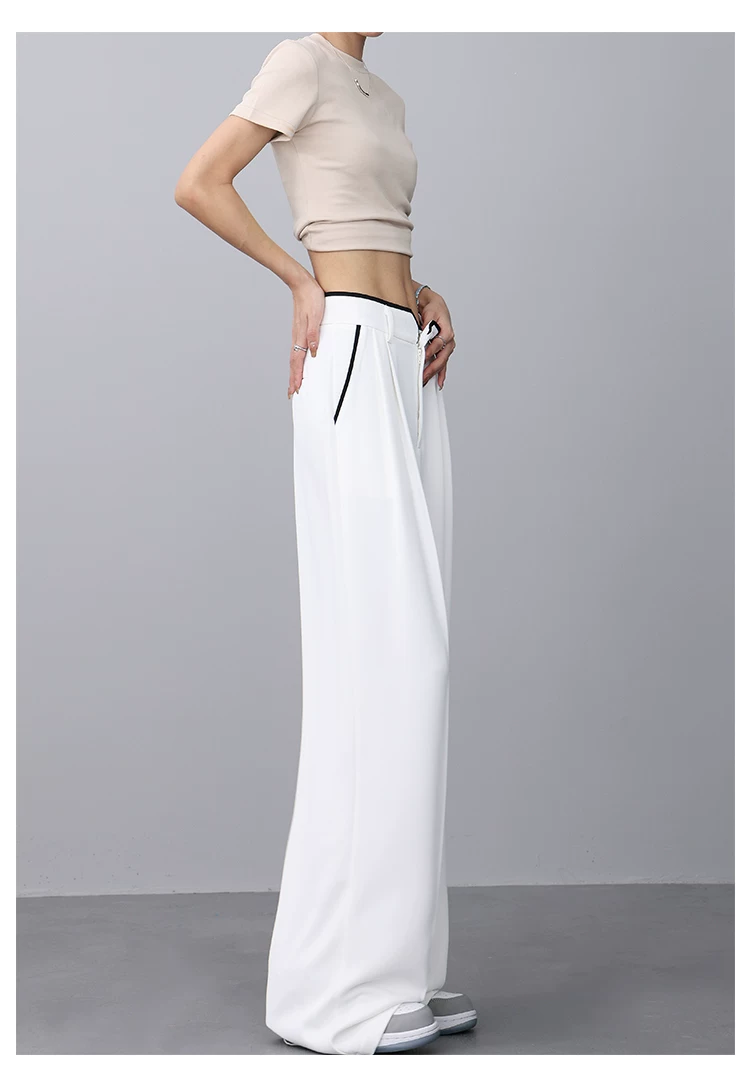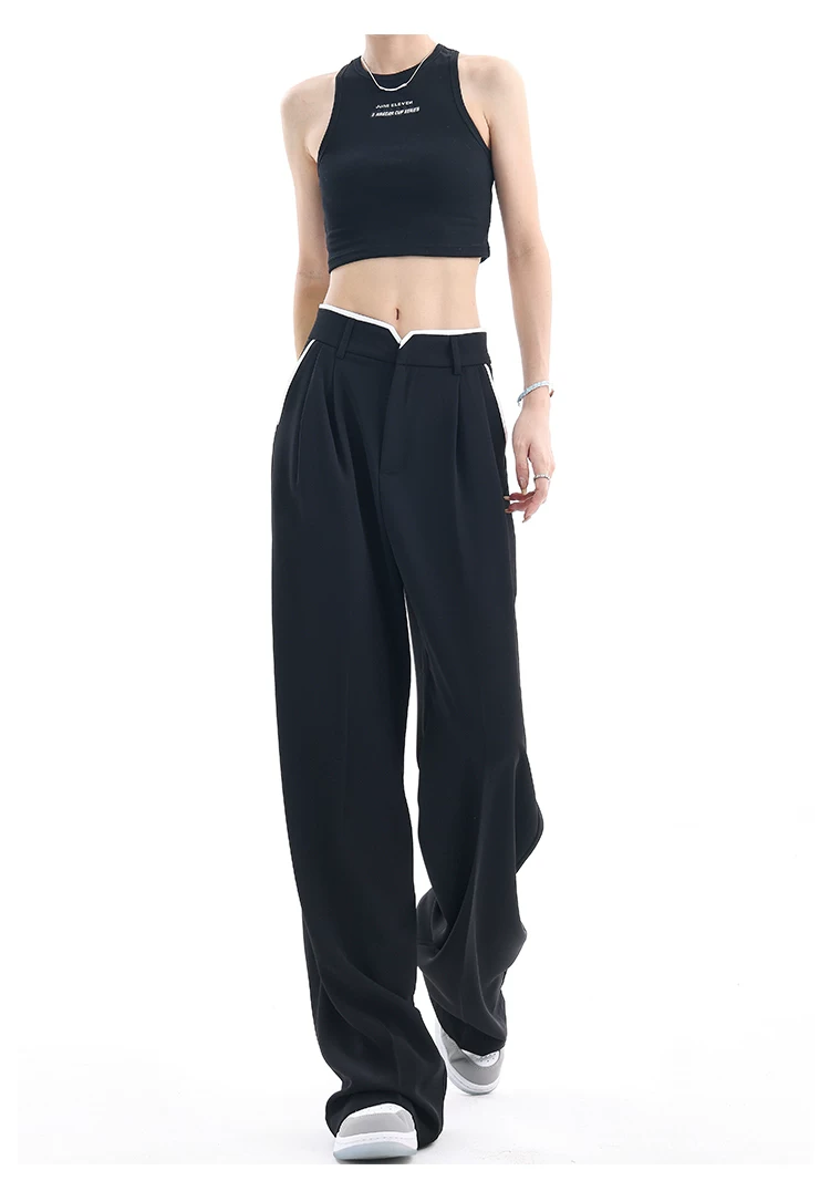 - KEN STUDIO quần tây ống rộng mới mùa hè dành cho nữ với thiết kế màu sắc tương phản, quần dài dáng rộng, phong cách giản dị