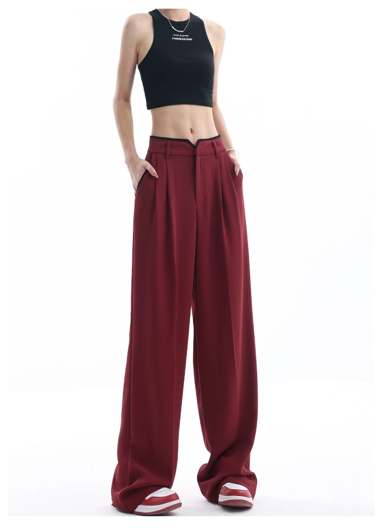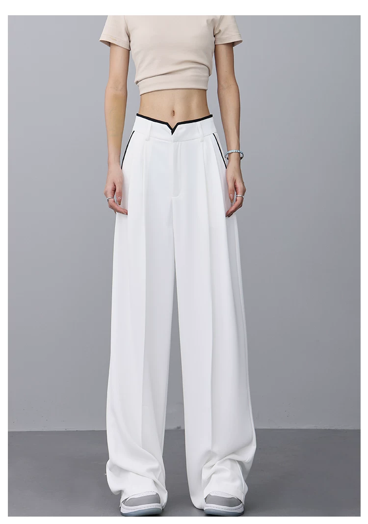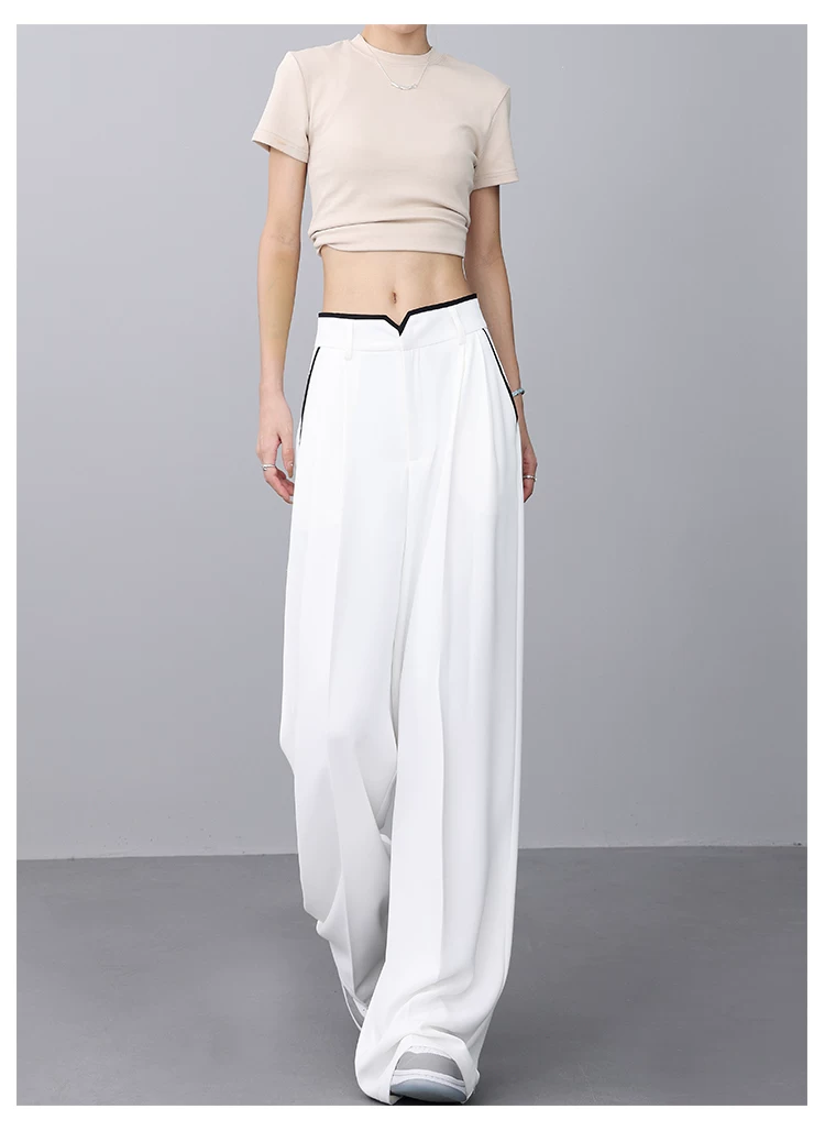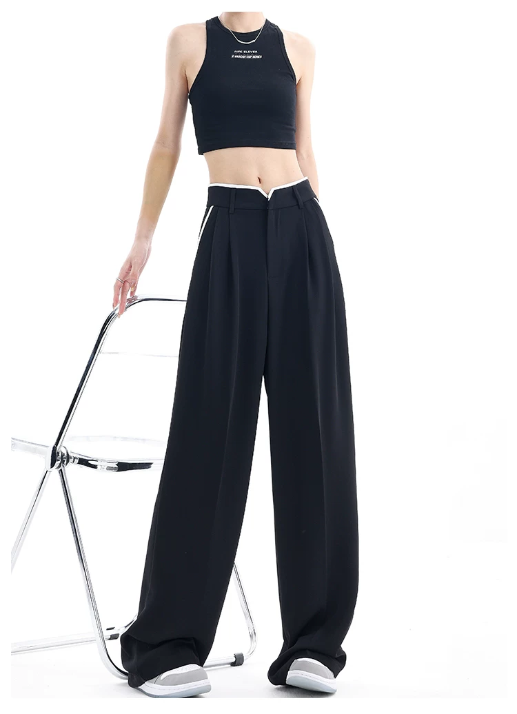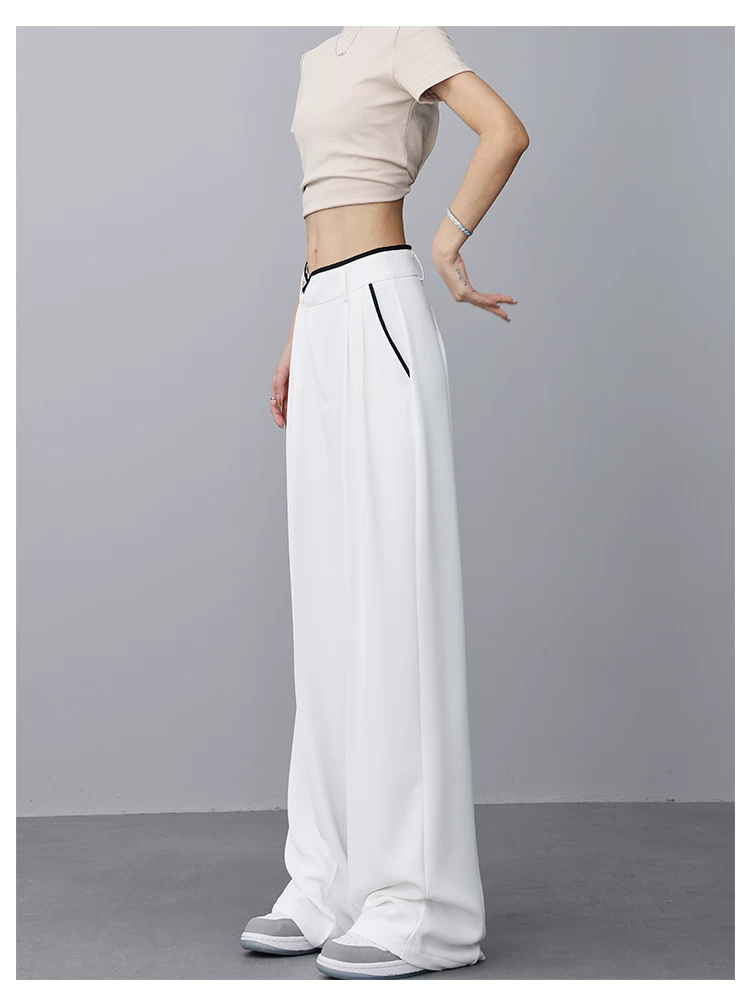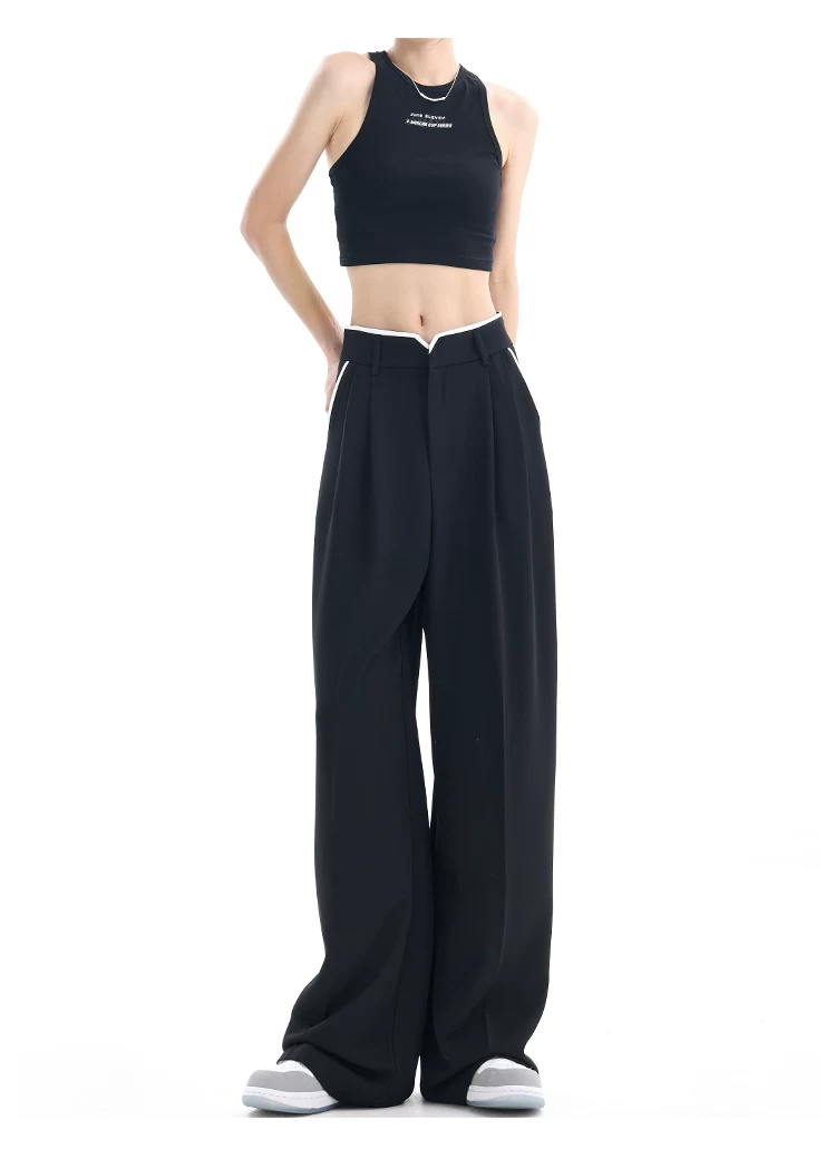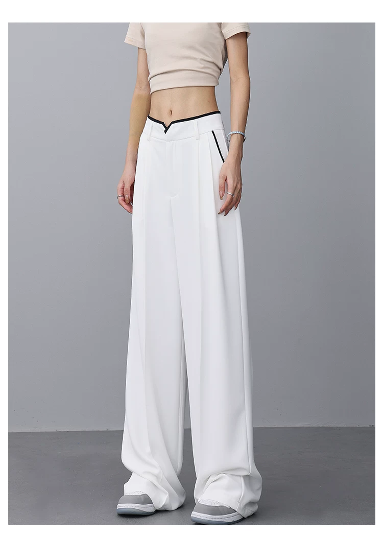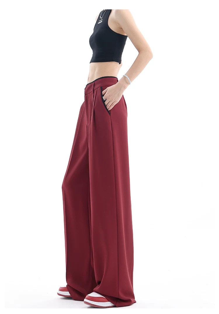 - KEN STUDIO quần tây ống rộng mới mùa hè dành cho nữ với thiết kế màu sắc tương phản, quần dài dáng rộng, phong cách giản dị