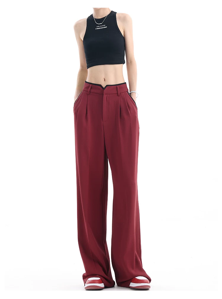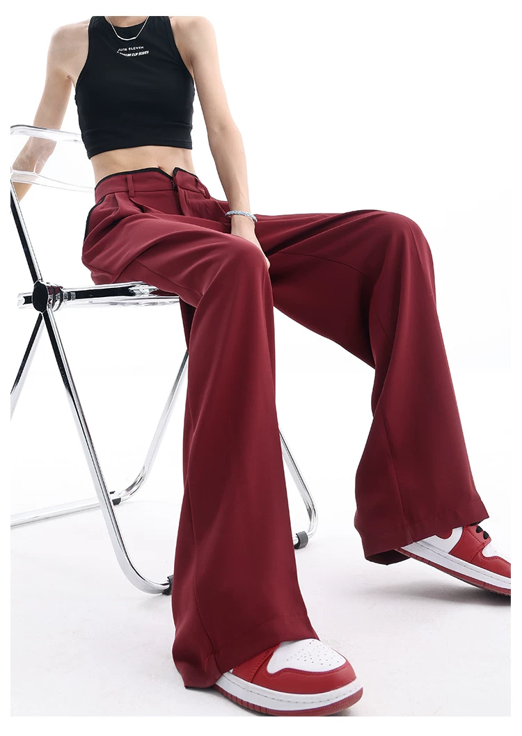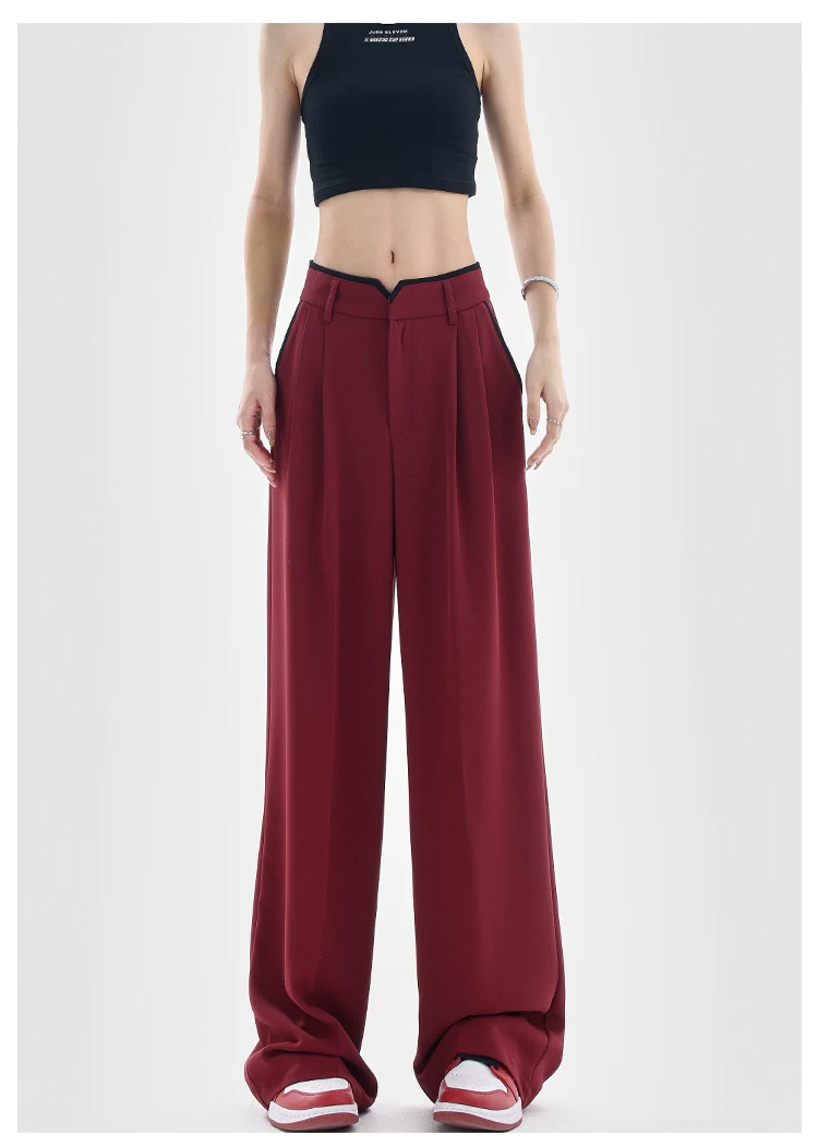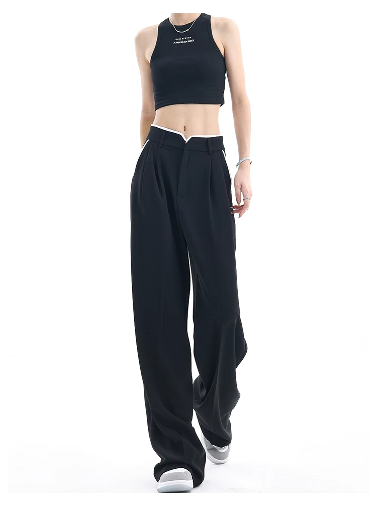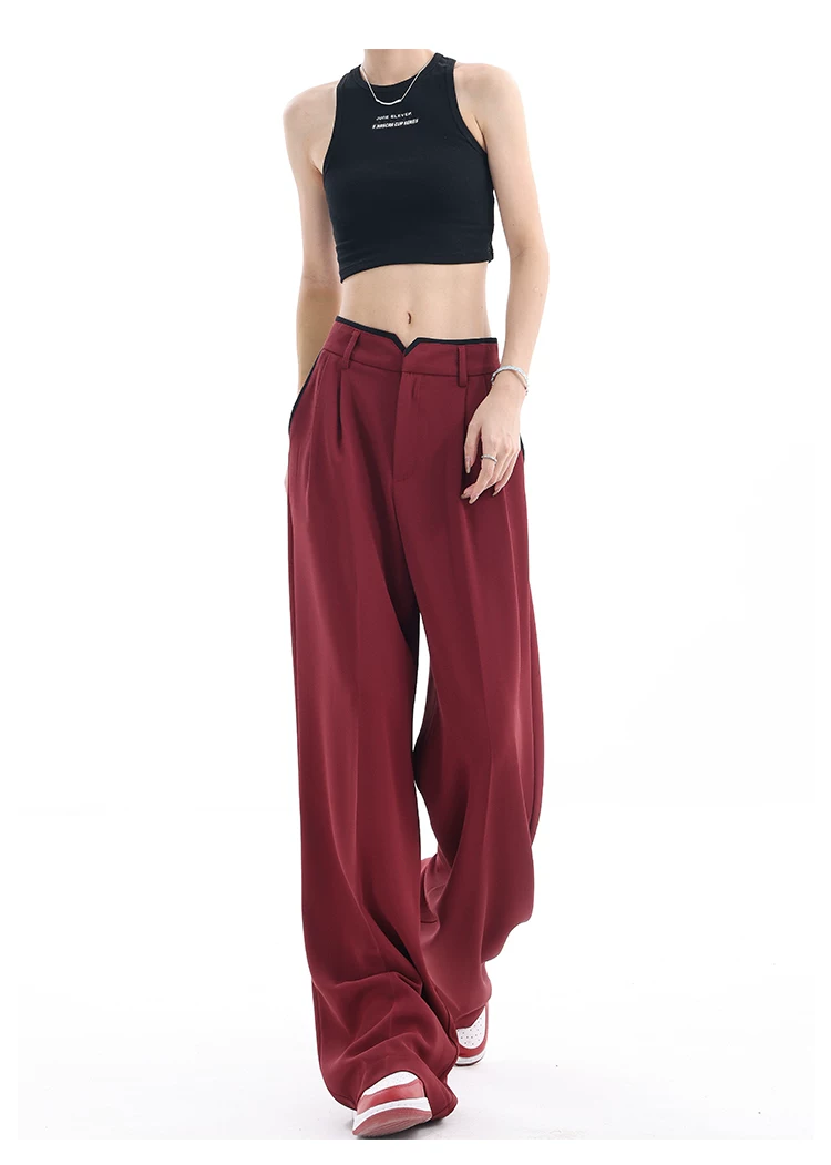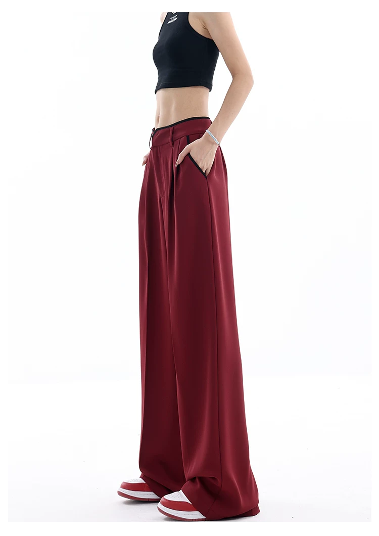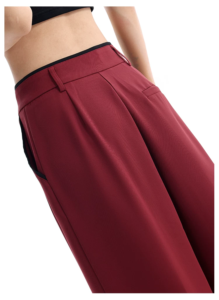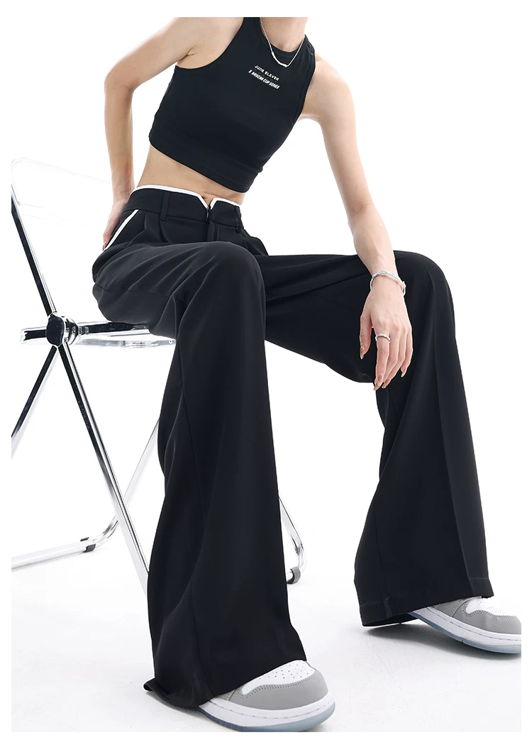 - KEN STUDIO quần tây ống rộng mới mùa hè dành cho nữ với thiết kế màu sắc tương phản, quần dài dáng rộng, phong cách giản dị