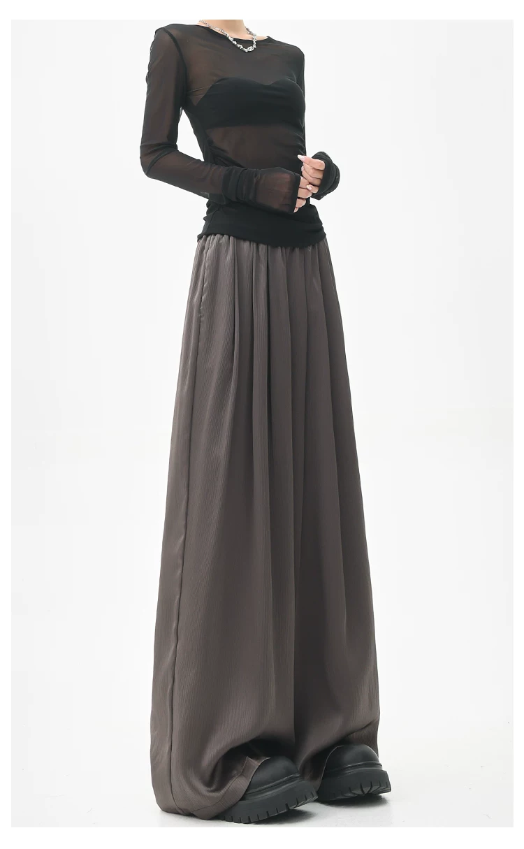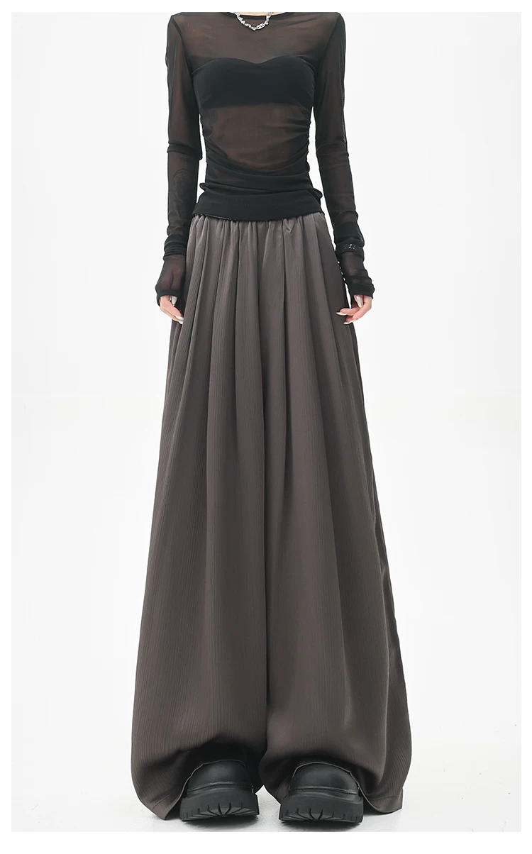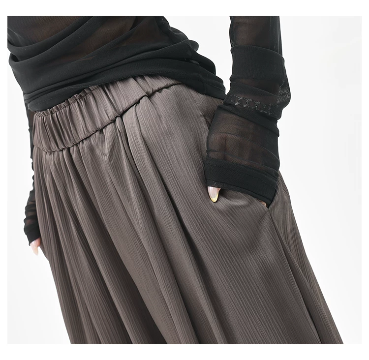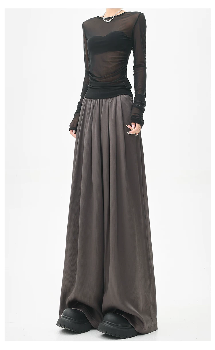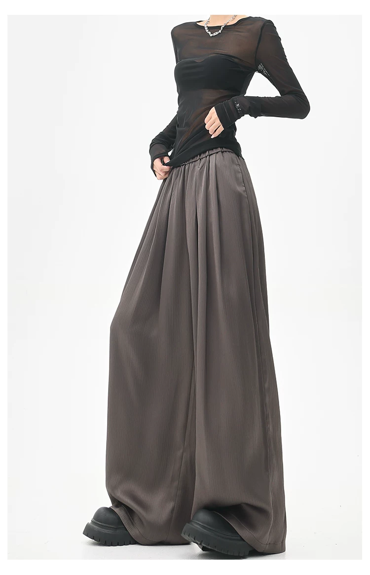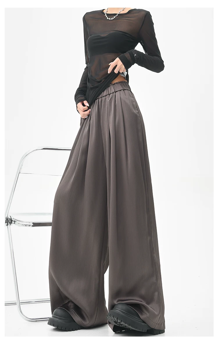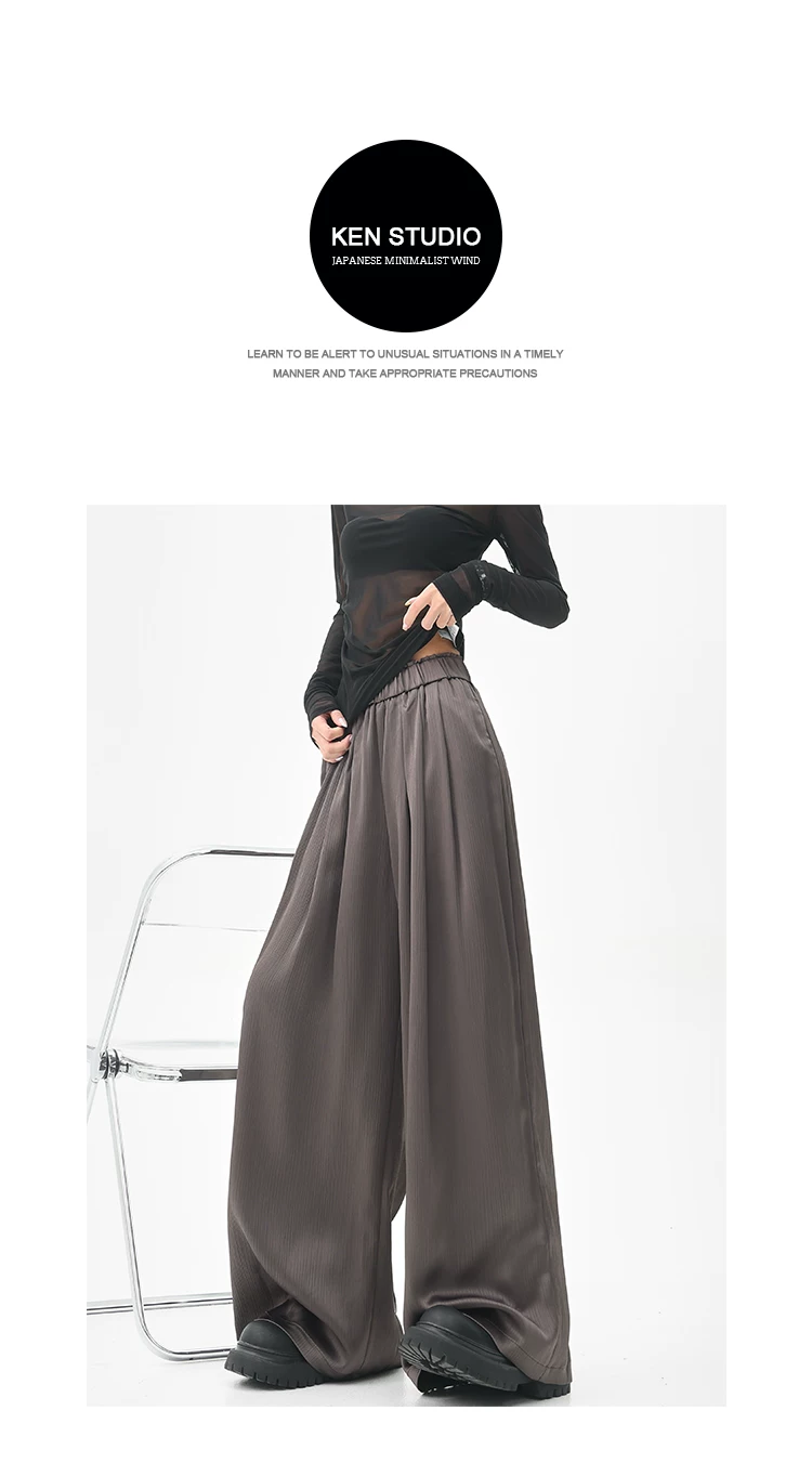 - KEN STUDIO quần tây ống rộng xếp ly màu kaki mới mùa hè dành cho nữ, quần cạp cao, dáng rộng, quần rộng và tôn dáng