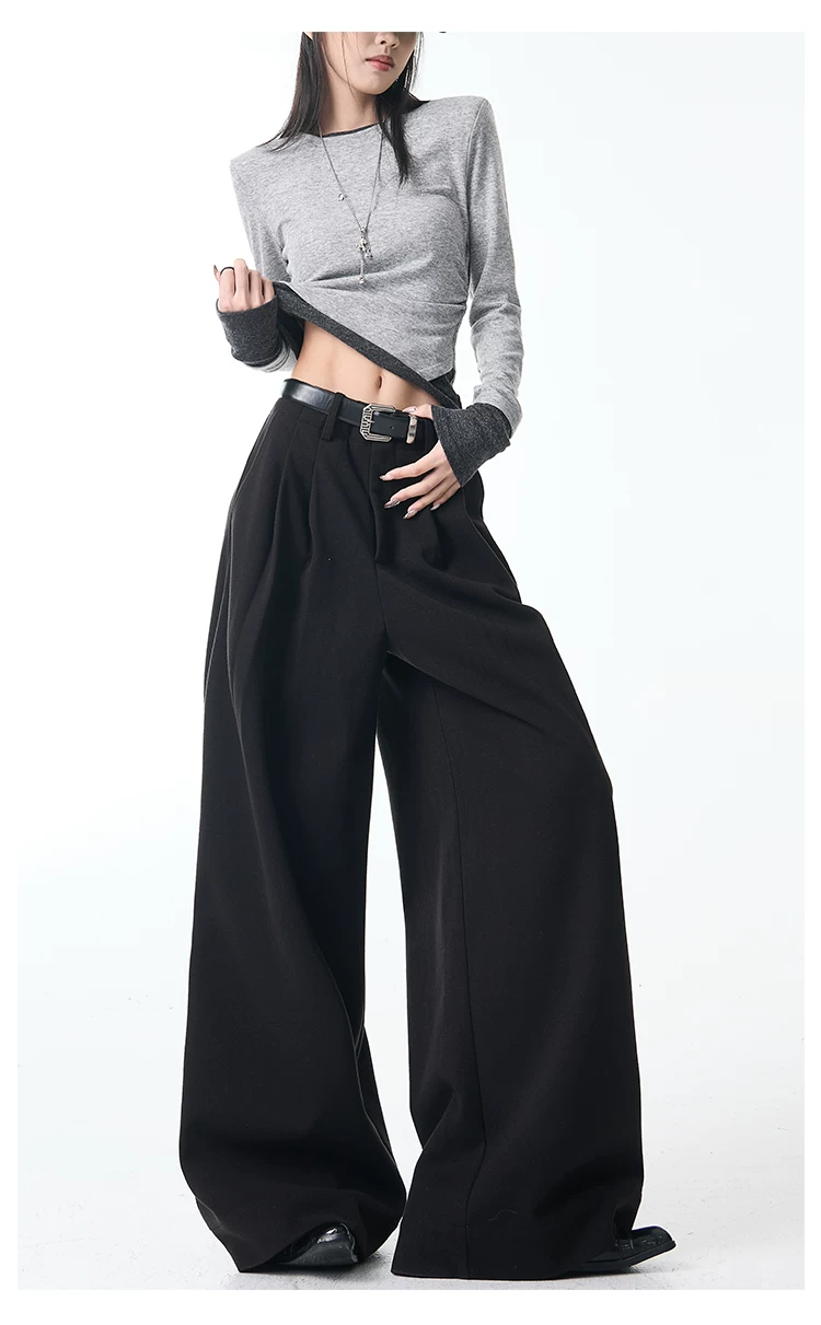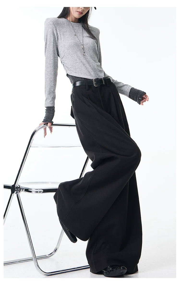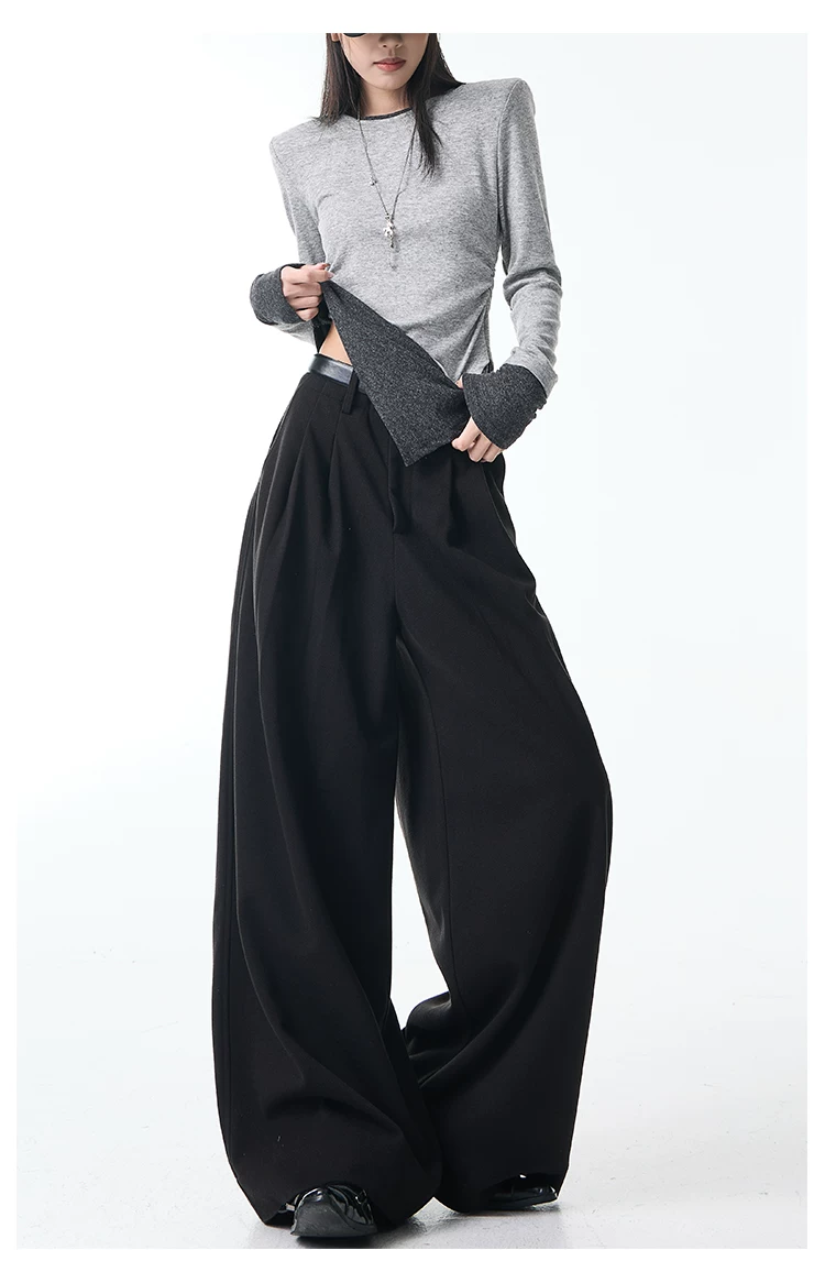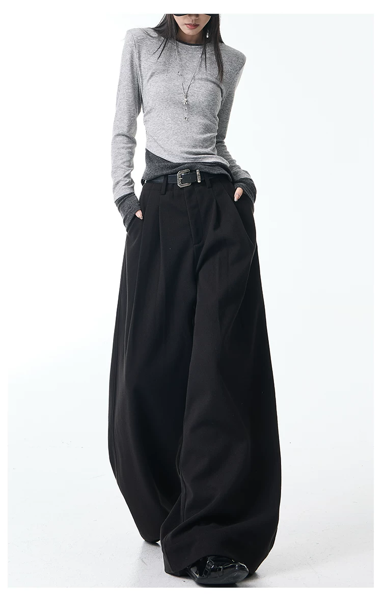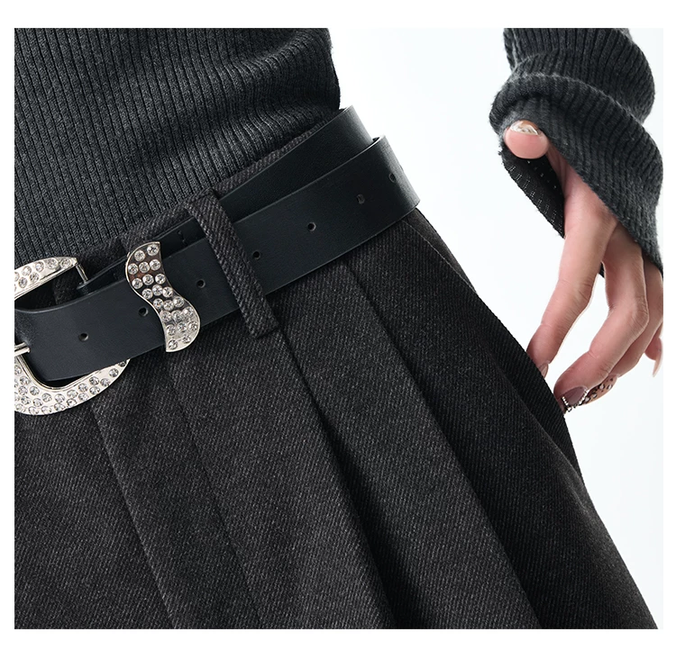 - KEN STUDIO Quần tây xếp ly len dày màu xám thu đông mới dành cho nữ, quần cạp cao, dáng rộng và suôn mềm