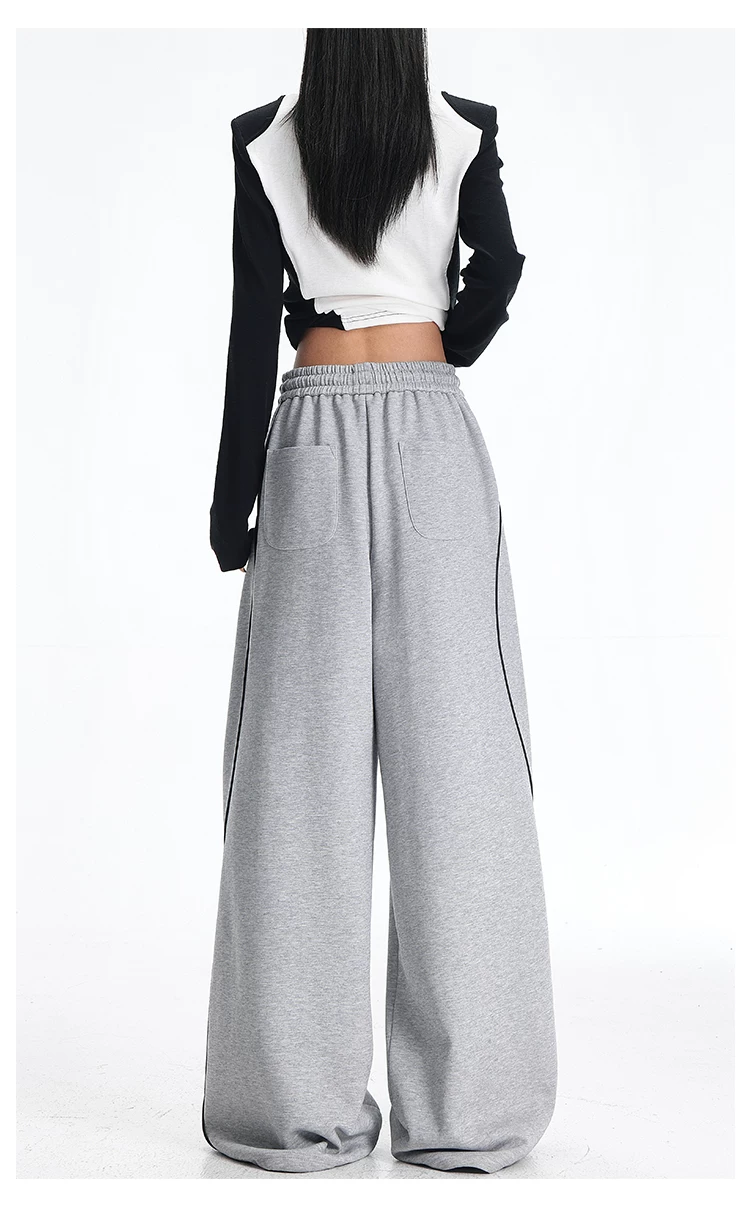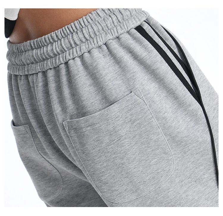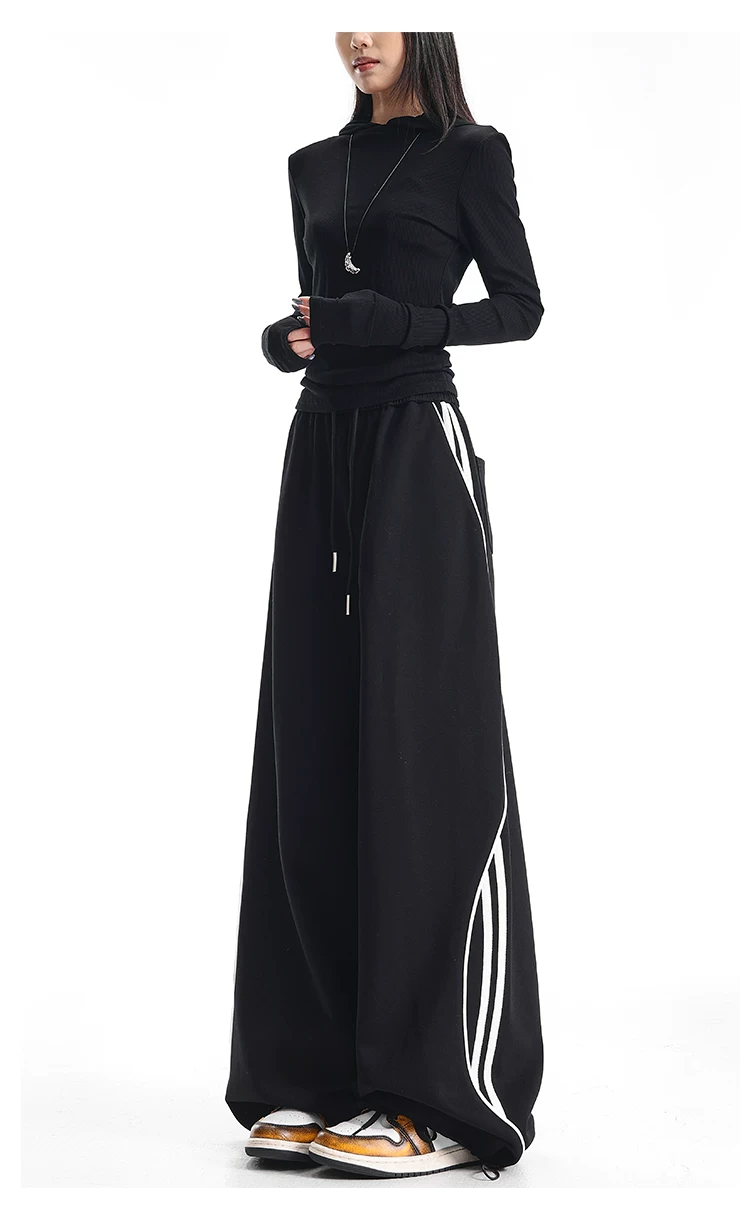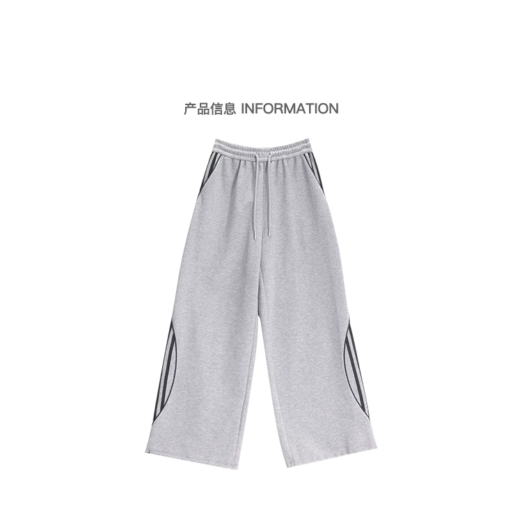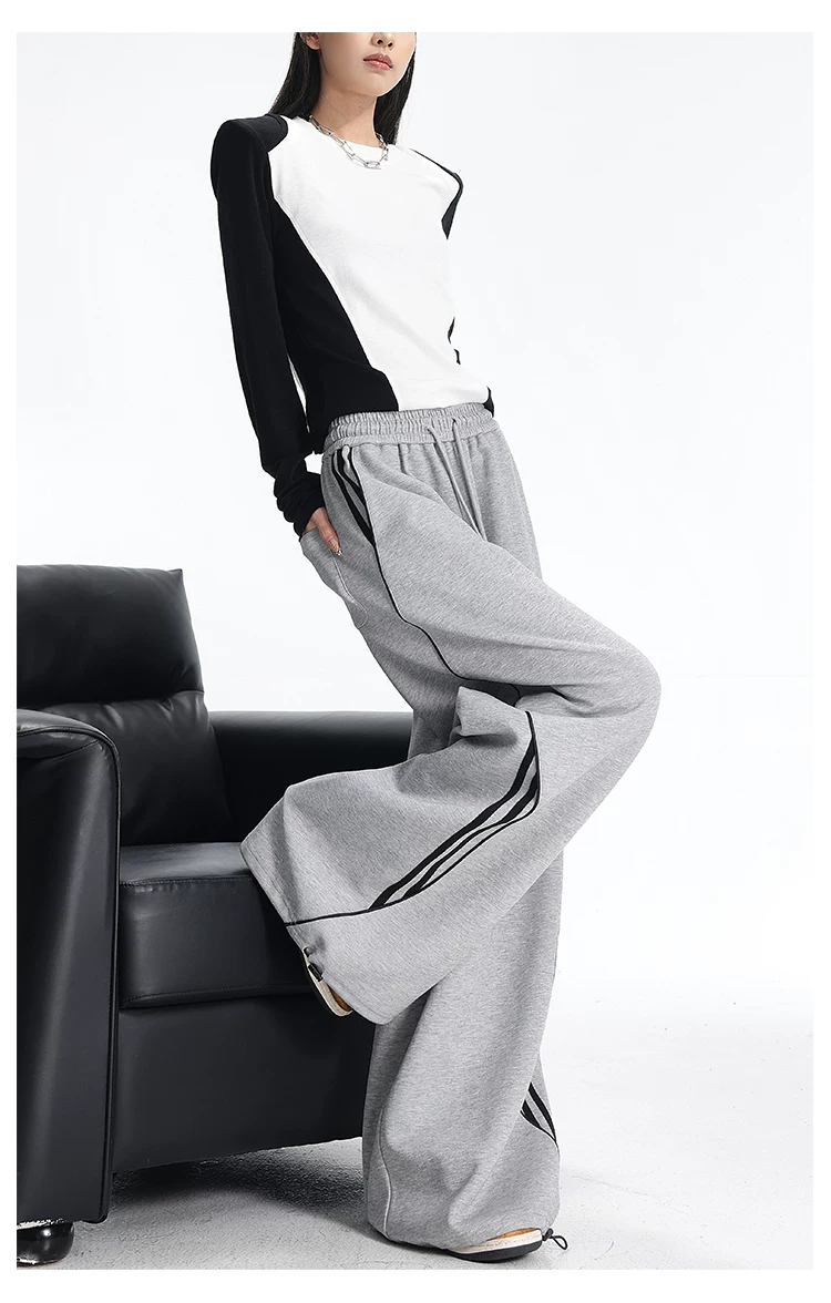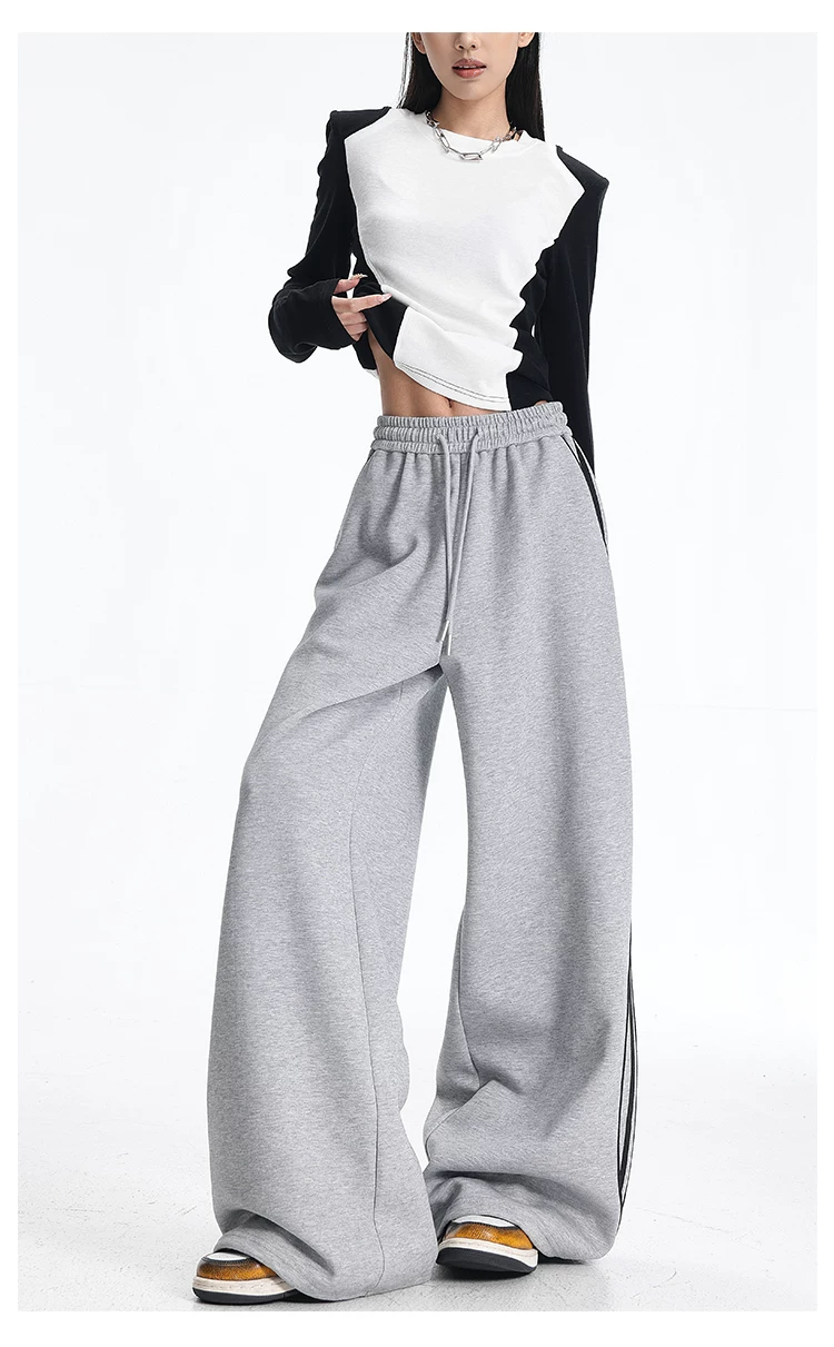 - KEN STUDIO quần thể thao ba sọc cổ điển mới của Mỹ mùa thu đông dành cho nữ, quần dáng rộng giảm béo thông thường