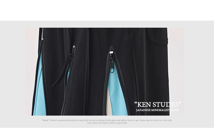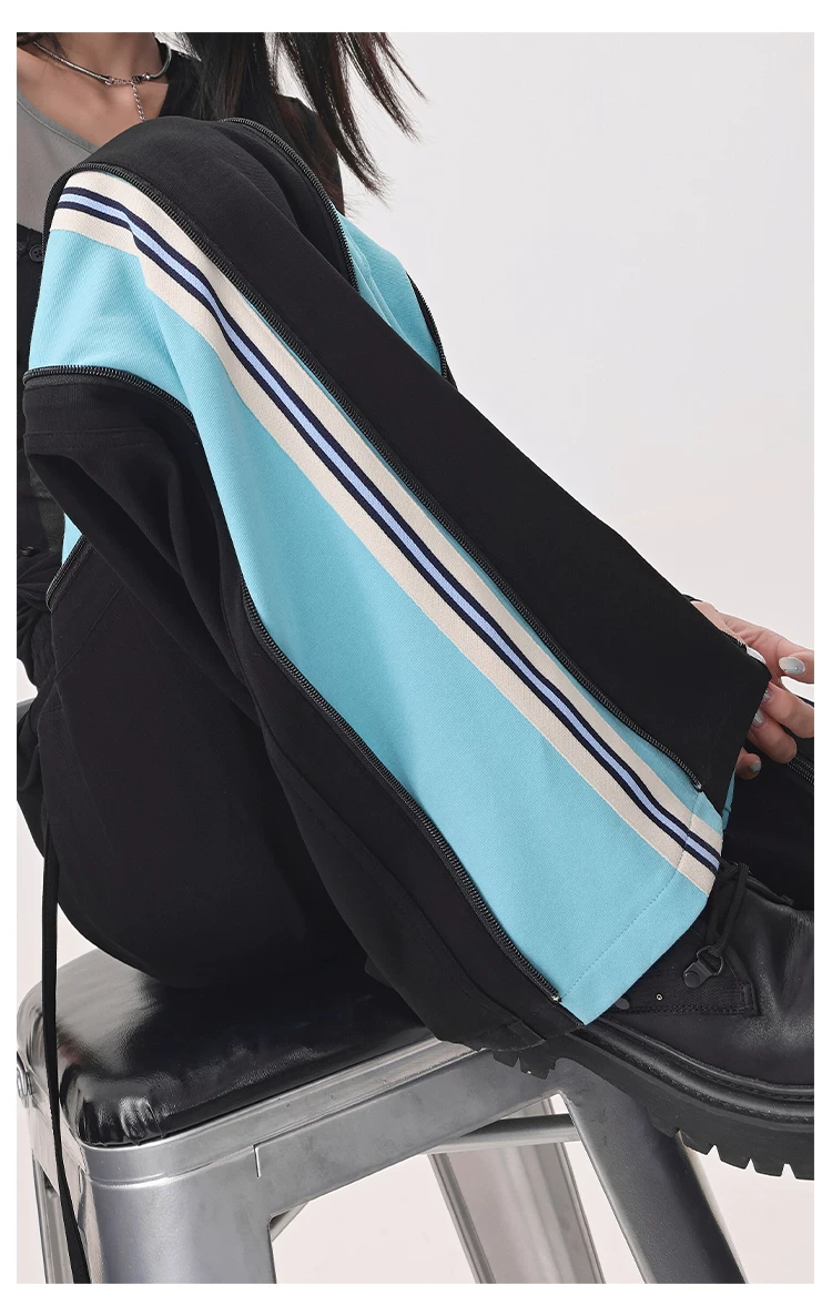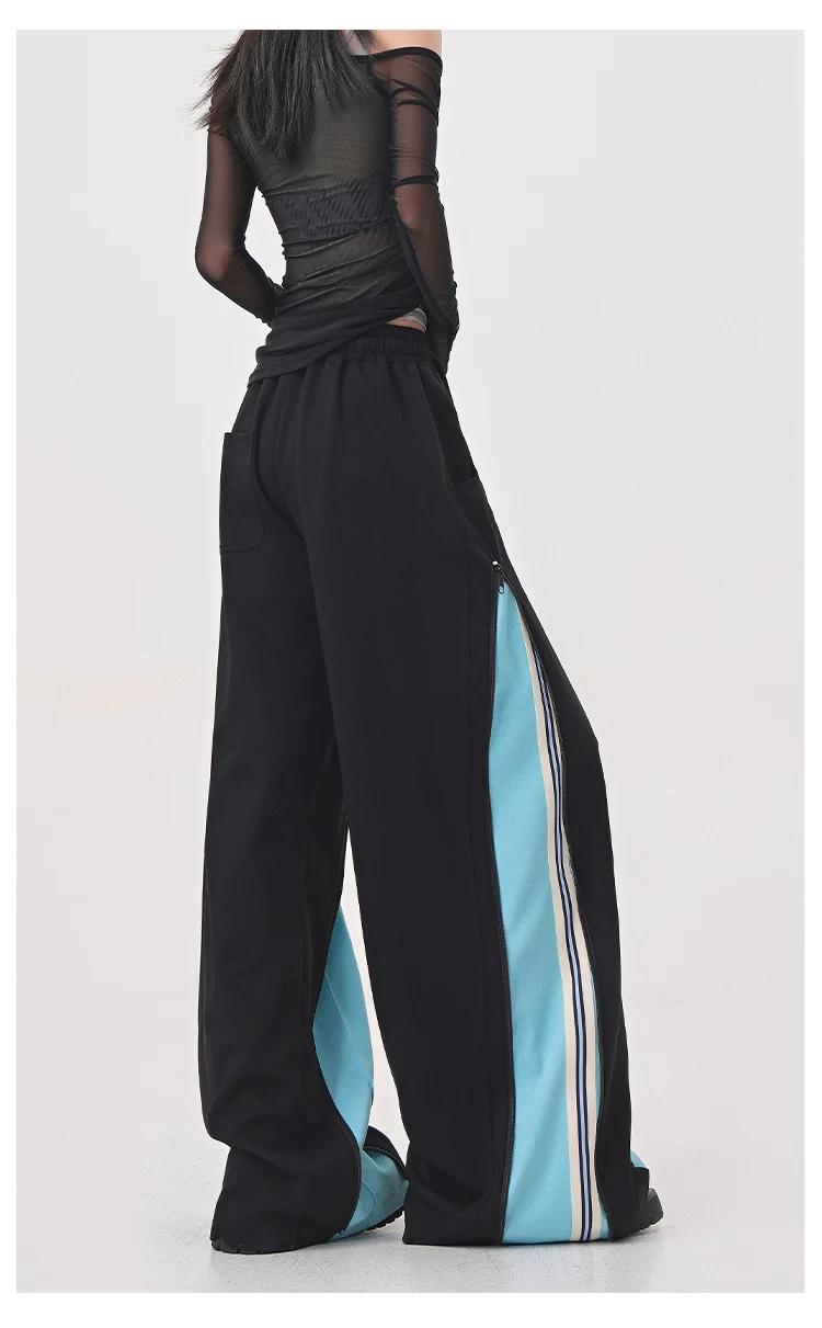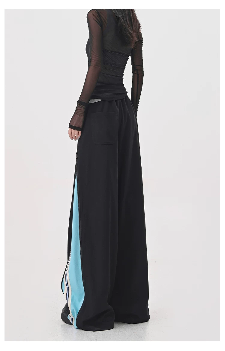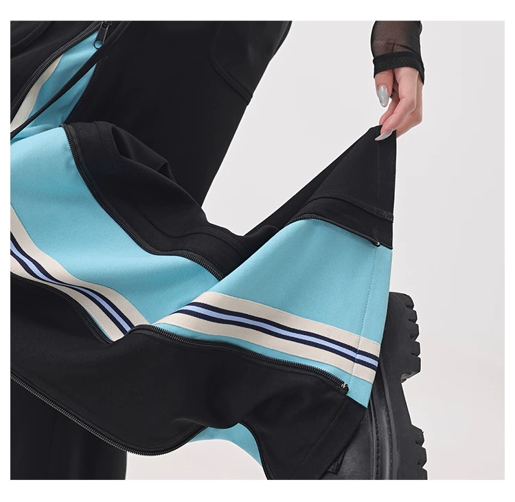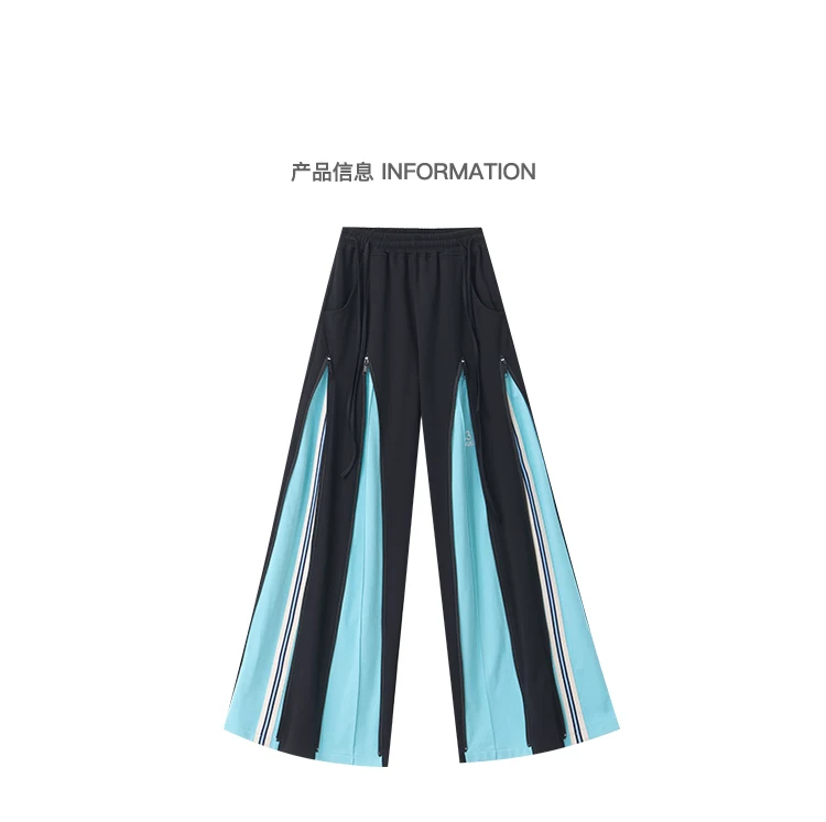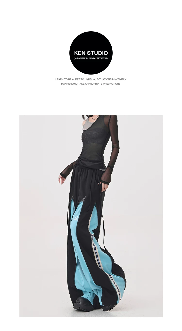 KEN STUDIO quần thể thao chắp vá màu xanh cổ điển dành cho nữ quần dài ống rộng khiêu vũ đường phố nhạc jazz