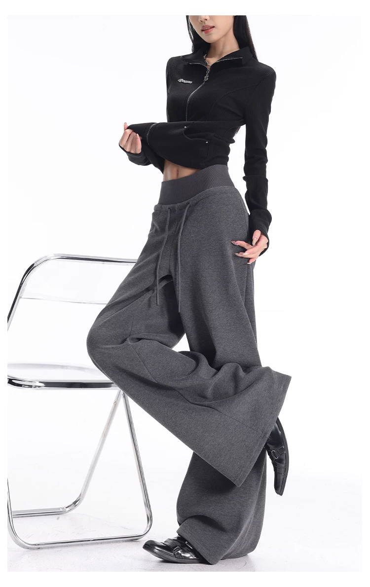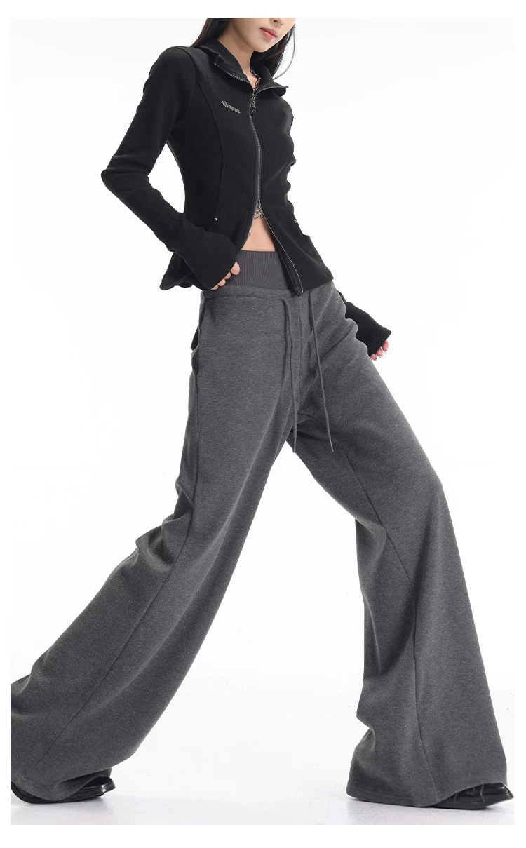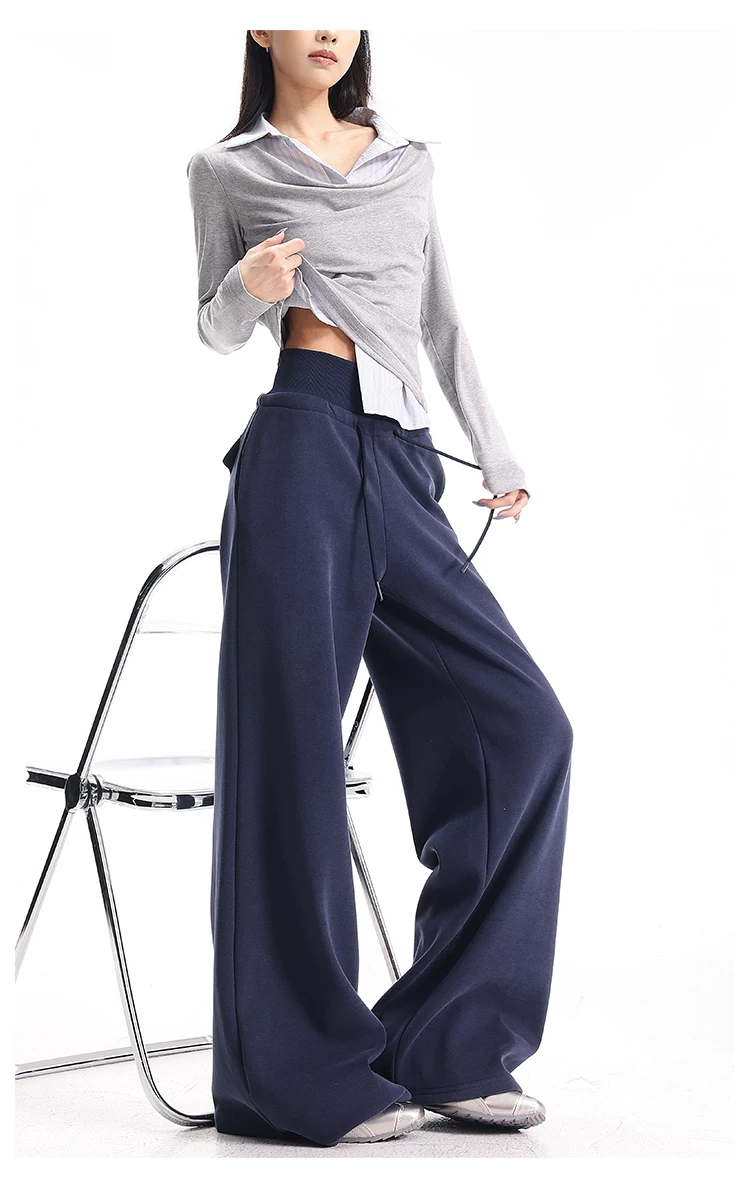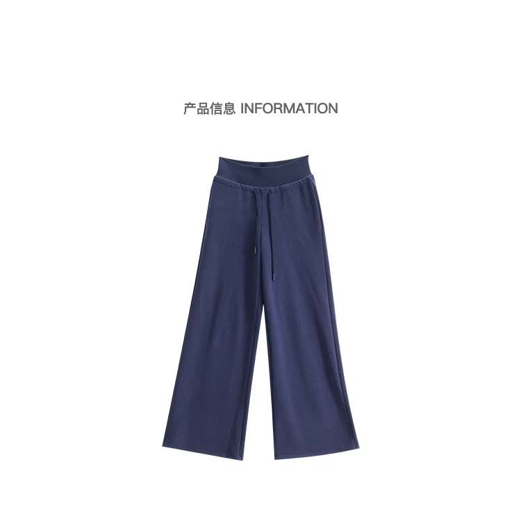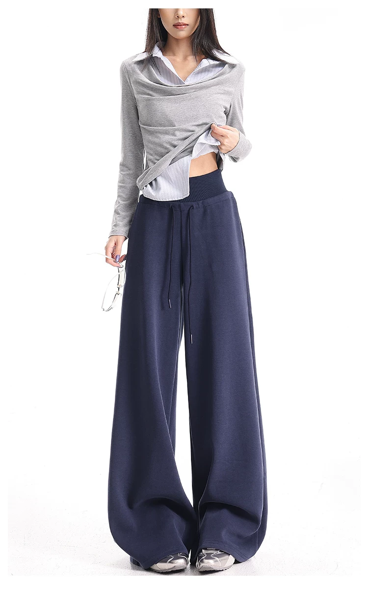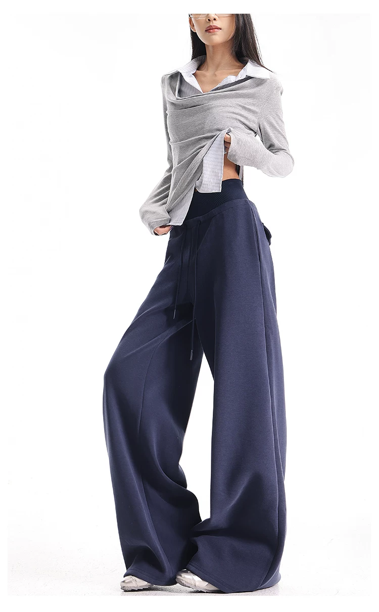 - KEN STUDIO Quần thể thao dáng rộng màu xanh lam phong cách Mỹ mới dành cho nữ, có lót lông cừu, dày dặn, quần thể thao ống rộng