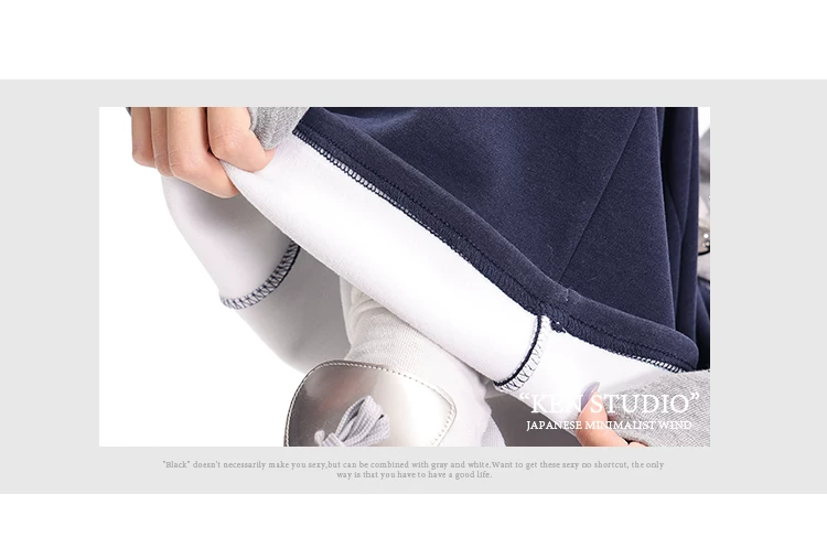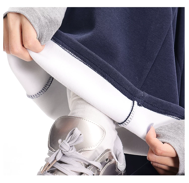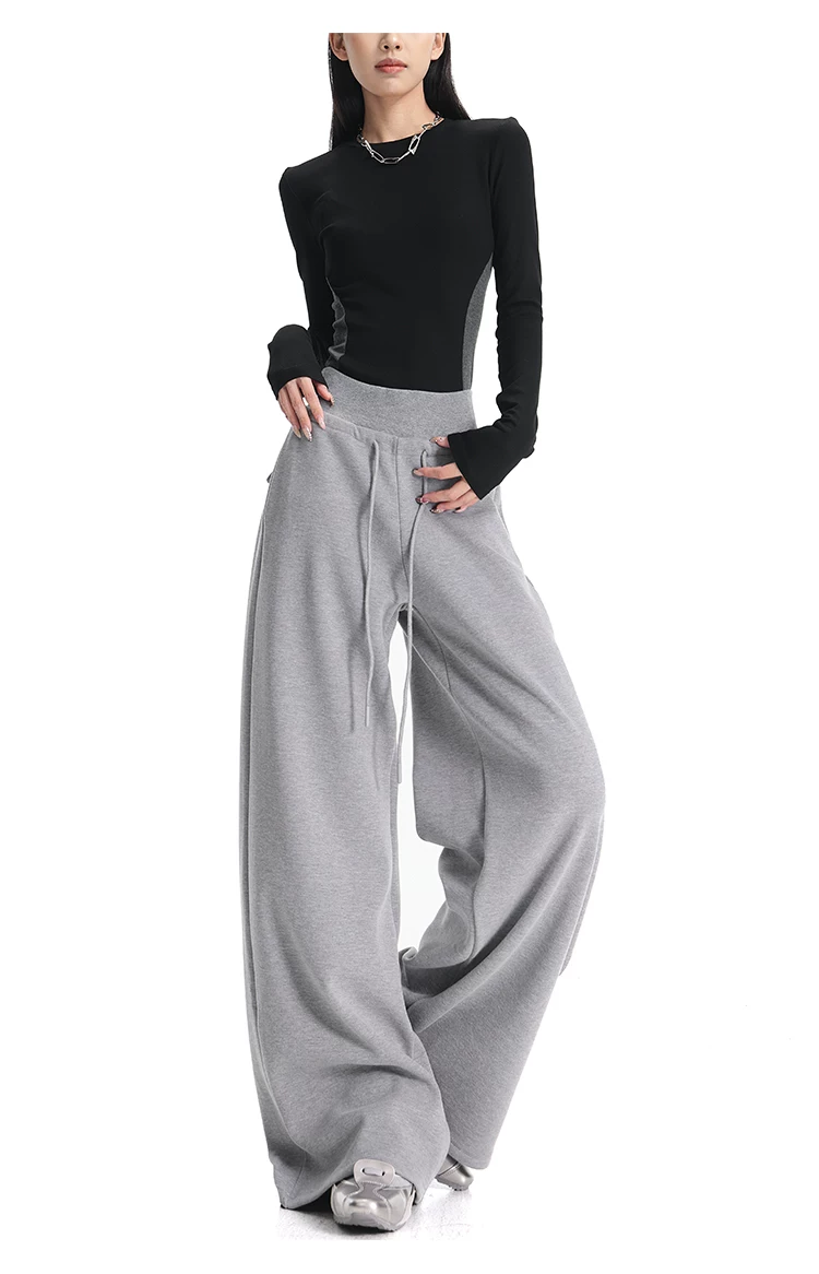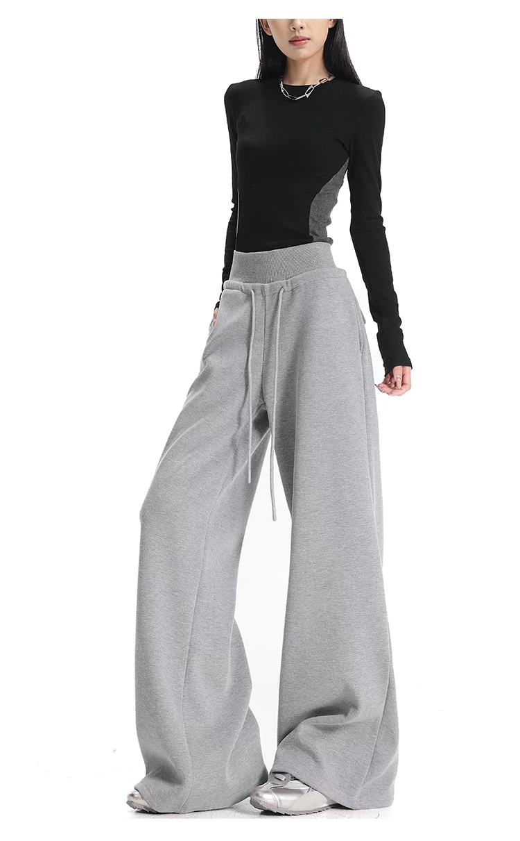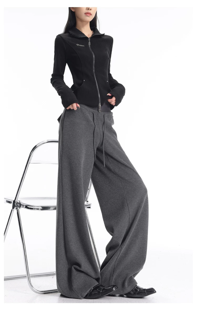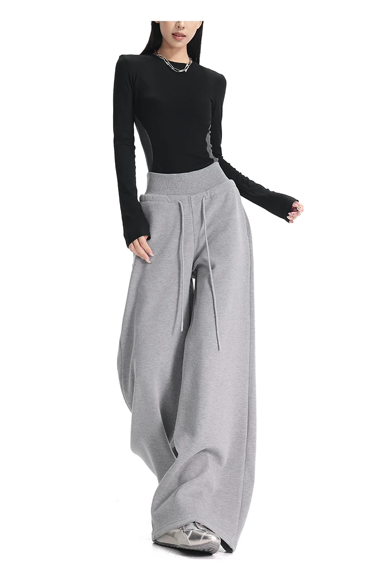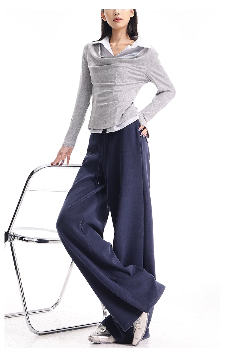 - KEN STUDIO Quần thể thao dáng rộng màu xanh lam phong cách Mỹ mới dành cho nữ, có lót lông cừu, dày dặn, quần thể thao ống rộng