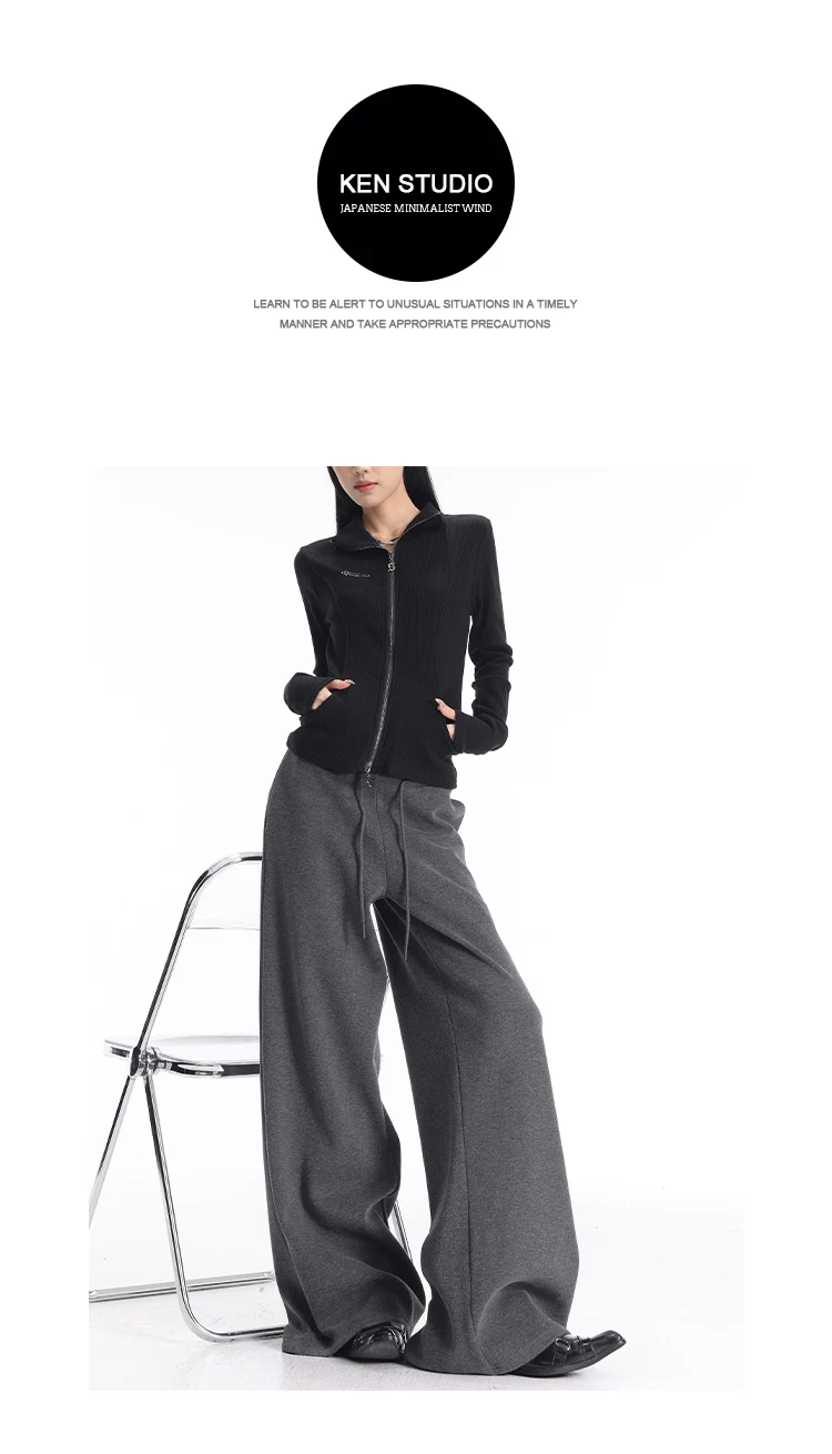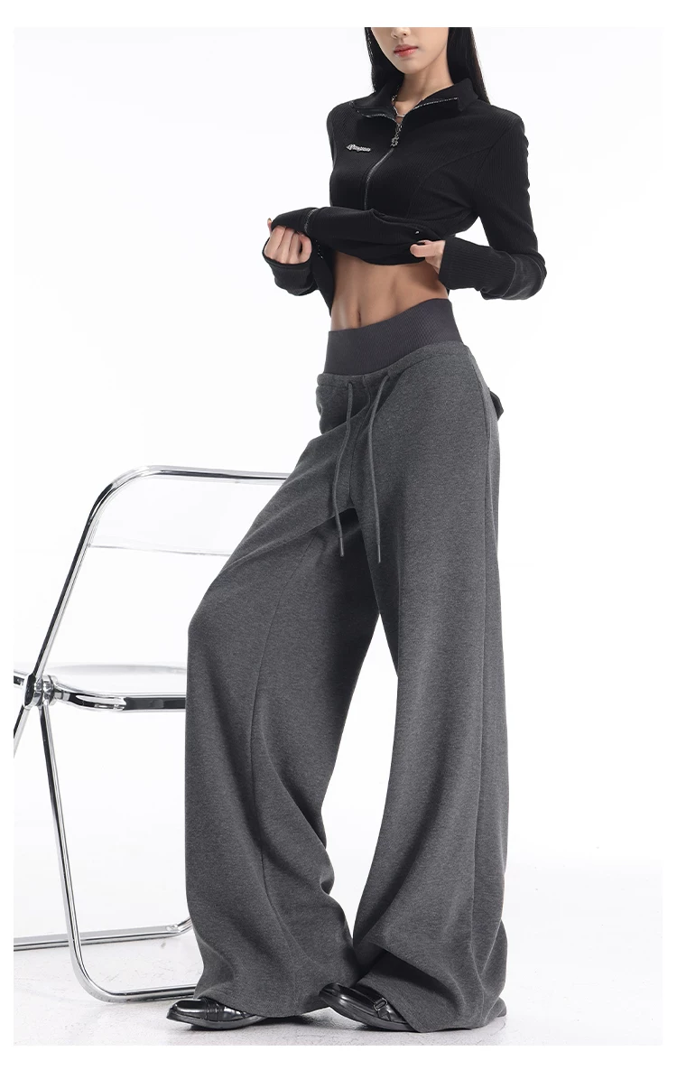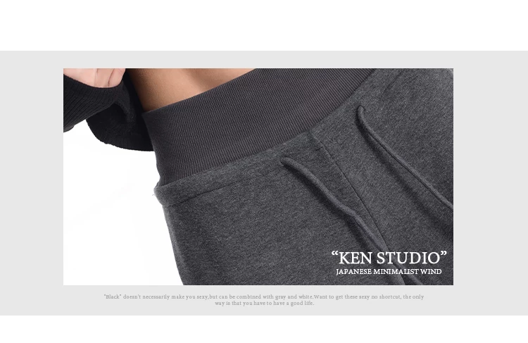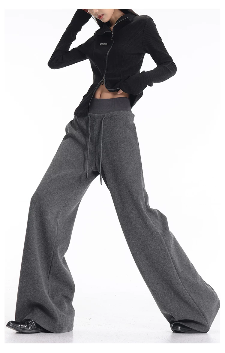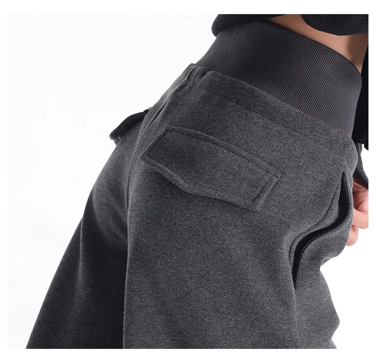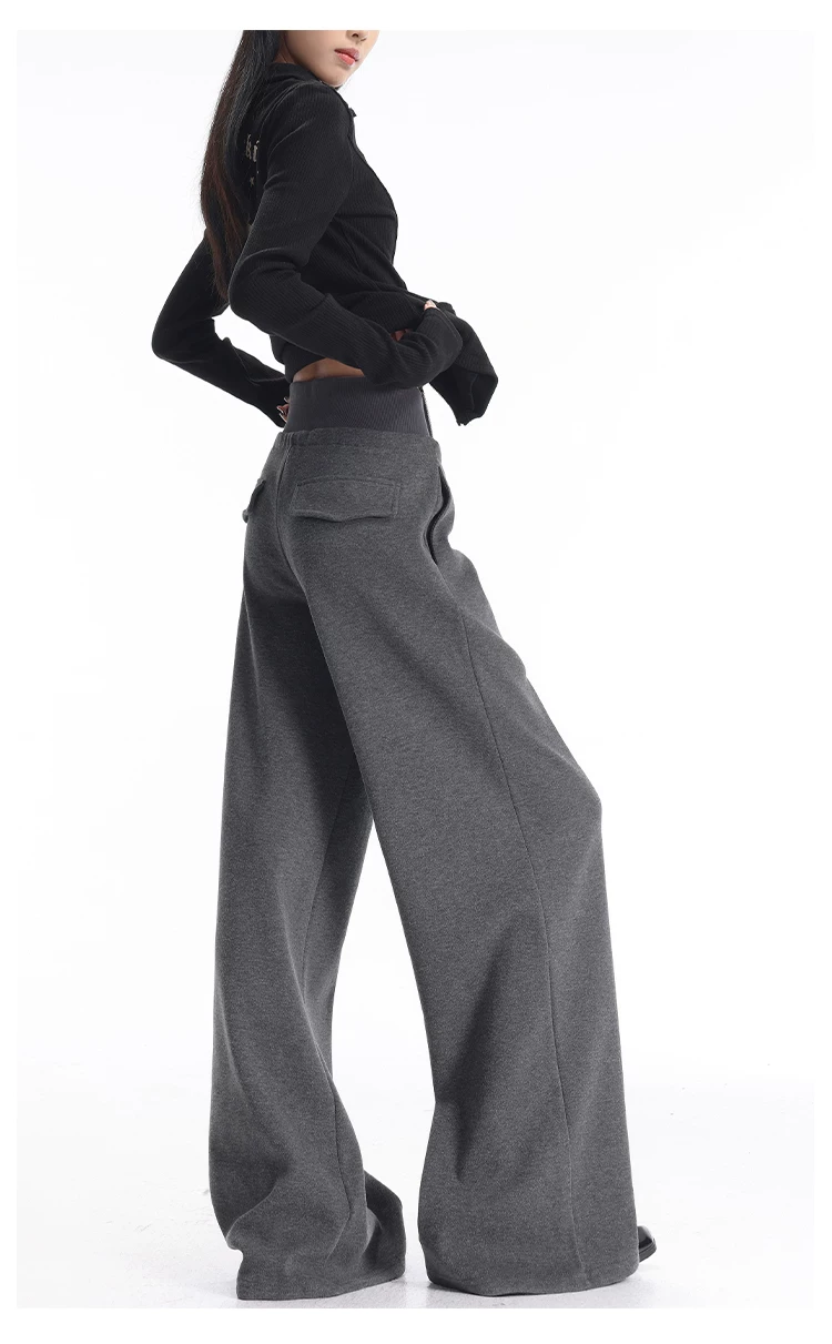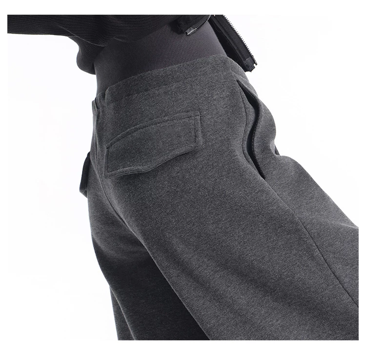 - KEN STUDIO quần thể thao dày lót lông cừu màu xám thu đông mới dành cho nữ, quần cạp cao, dáng rộng, quần ống rộng kiểu gạo nếp