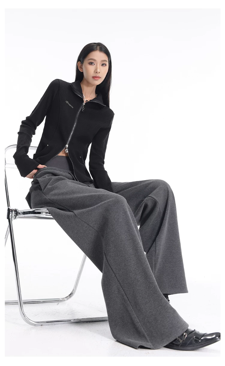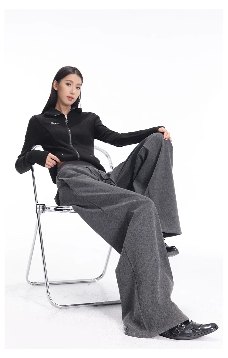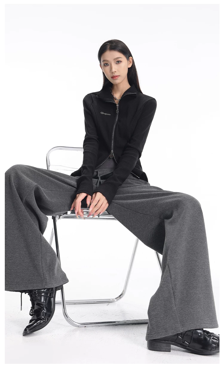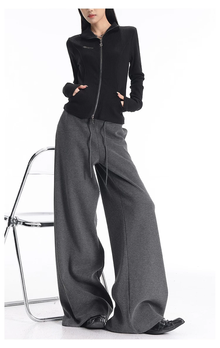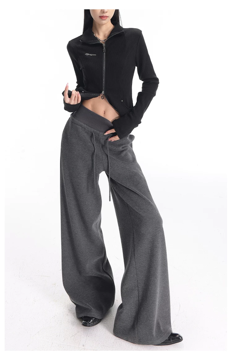 - KEN STUDIO quần thể thao dày lót lông cừu màu xám thu đông mới dành cho nữ, quần cạp cao, dáng rộng, quần ống rộng kiểu gạo nếp