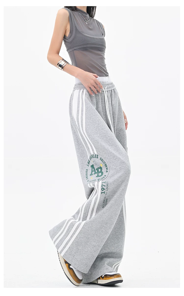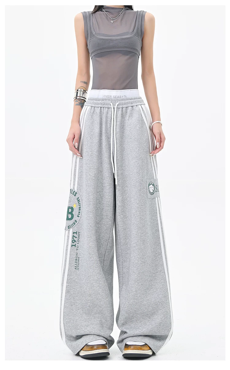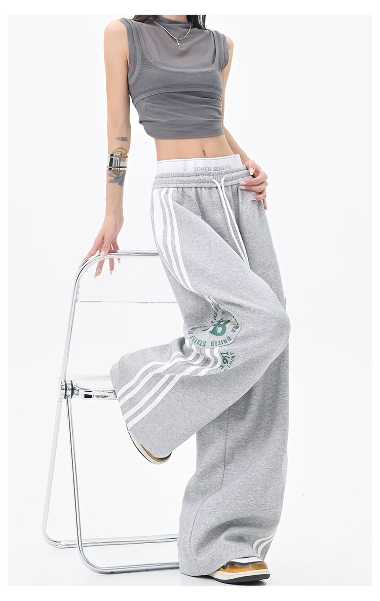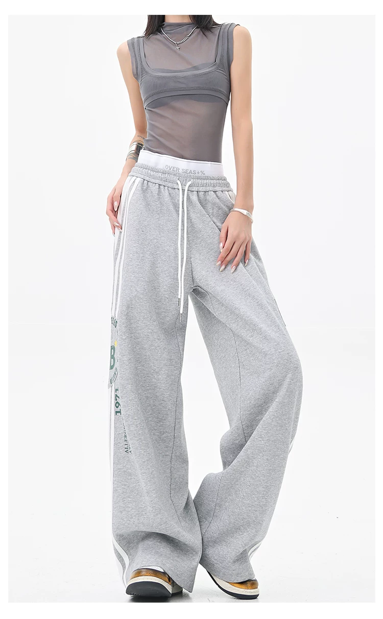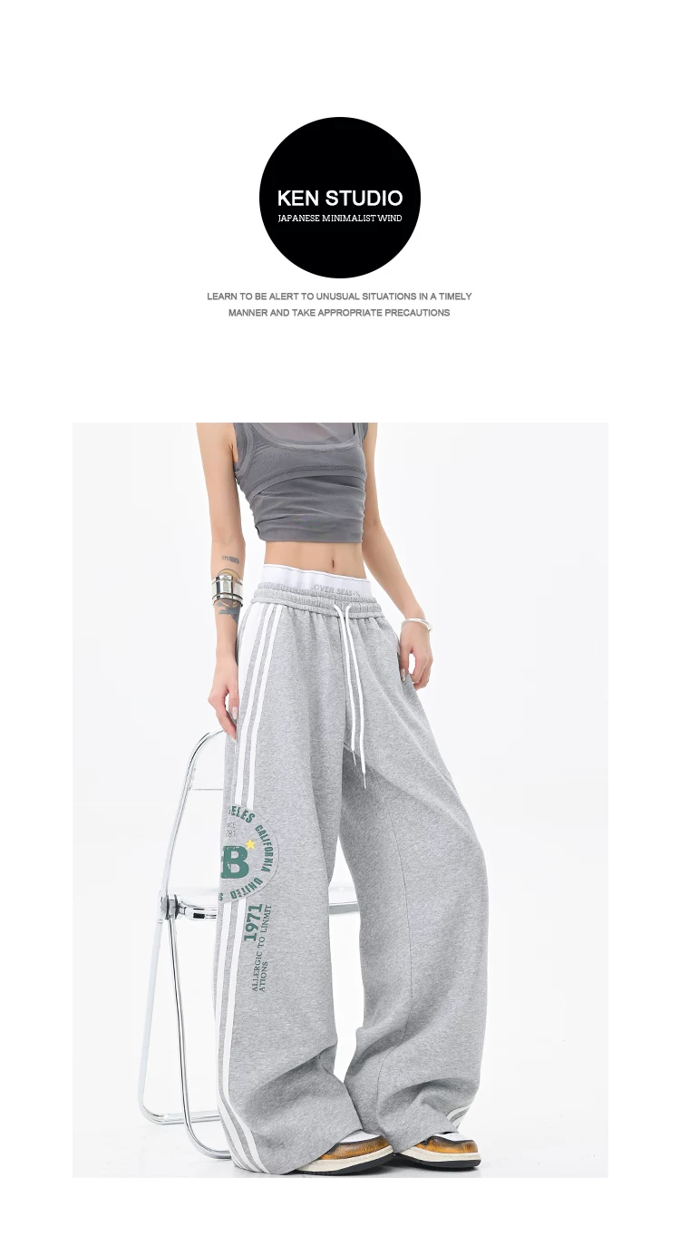 - KEN STUDIO Quần thể thao in chữ phong cách retro kiểu Mỹ dành cho nữ quần thể thao ống rộng dáng rộng đa năng