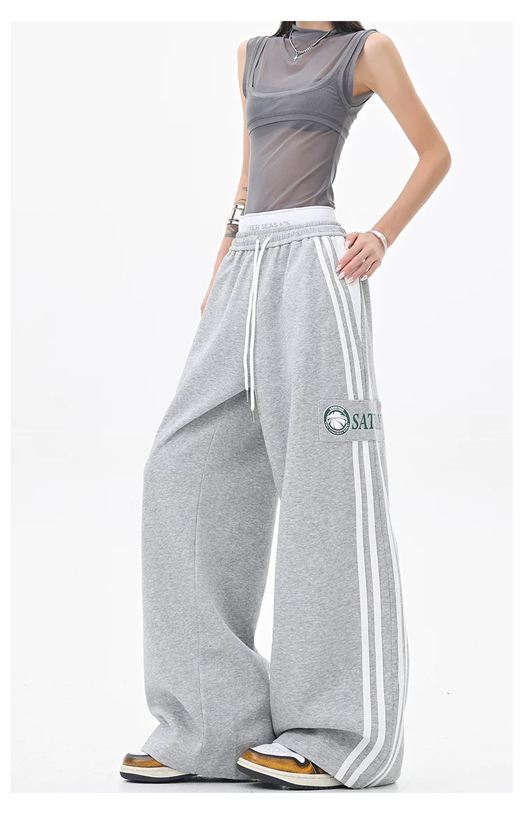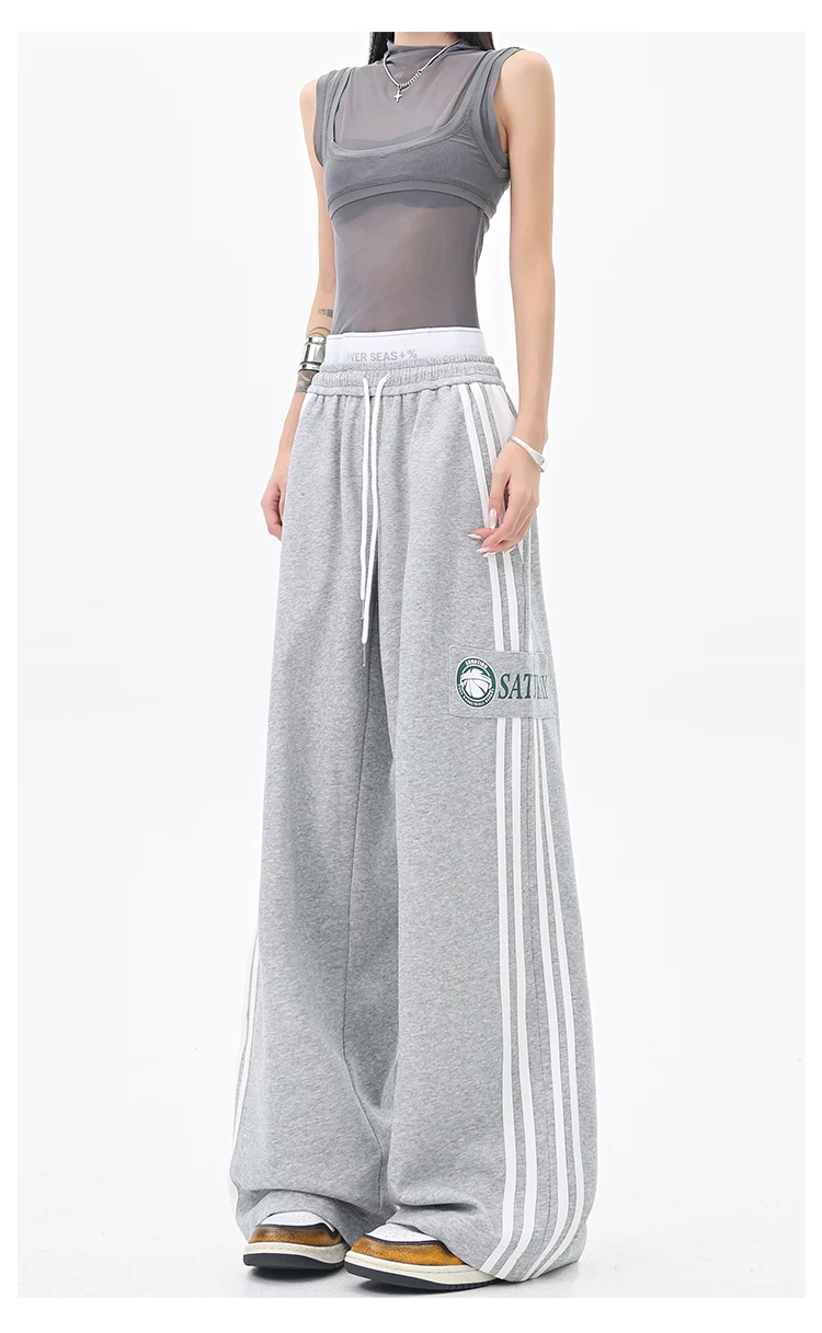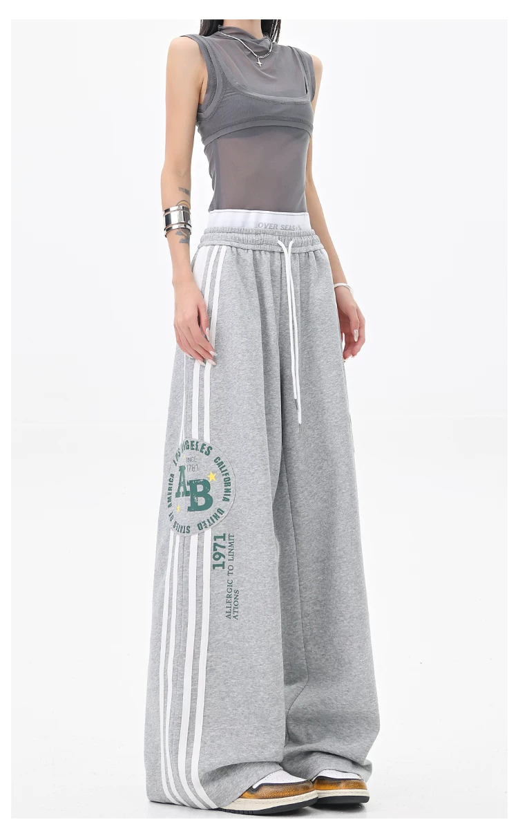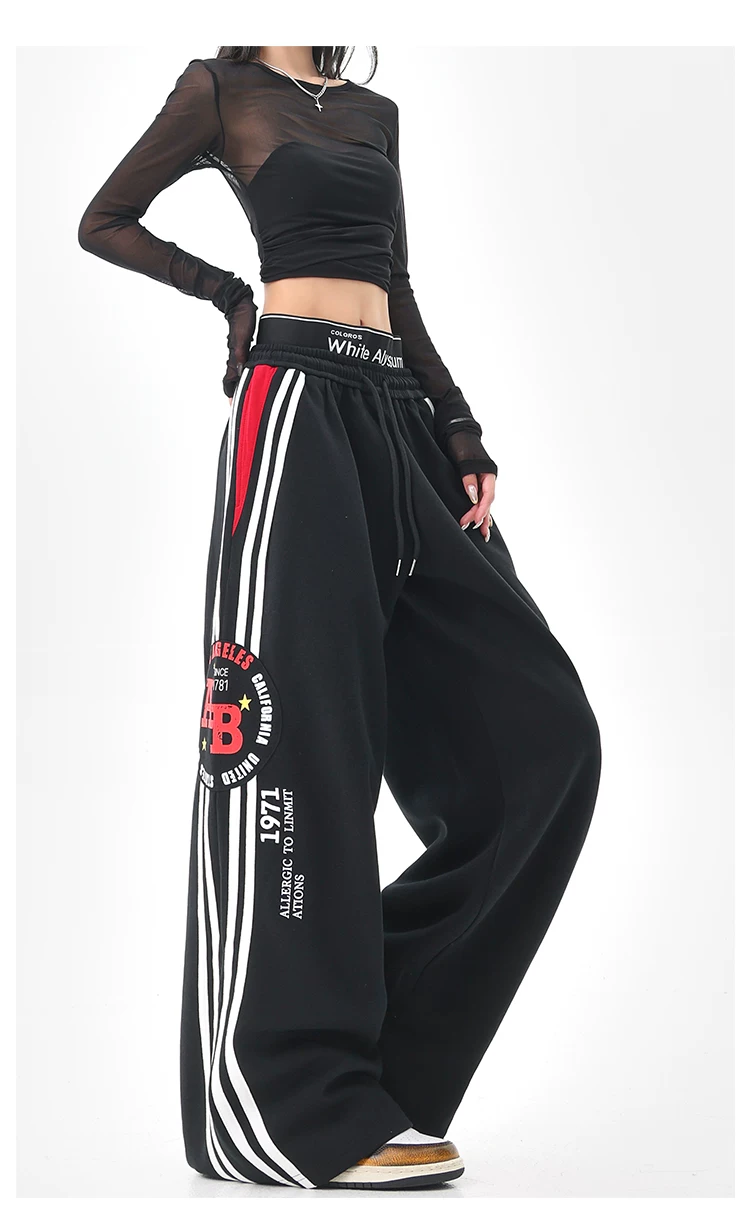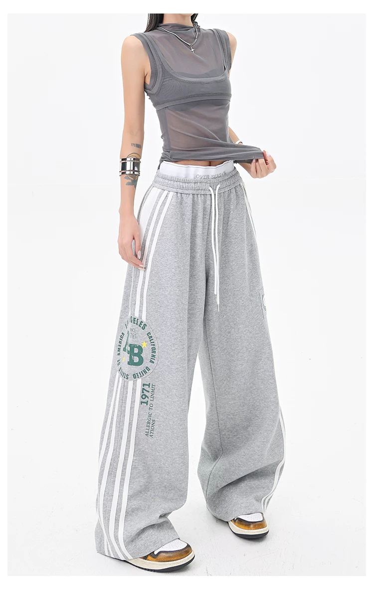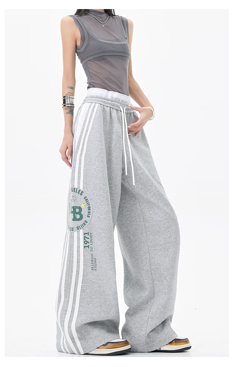 - KEN STUDIO Quần thể thao in chữ phong cách retro kiểu Mỹ dành cho nữ quần thể thao ống rộng dáng rộng đa năng