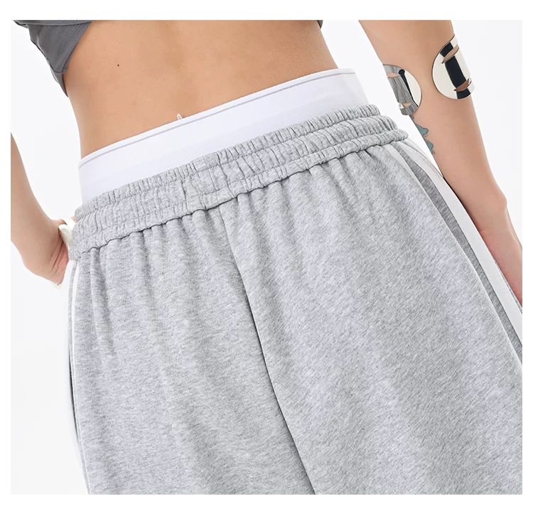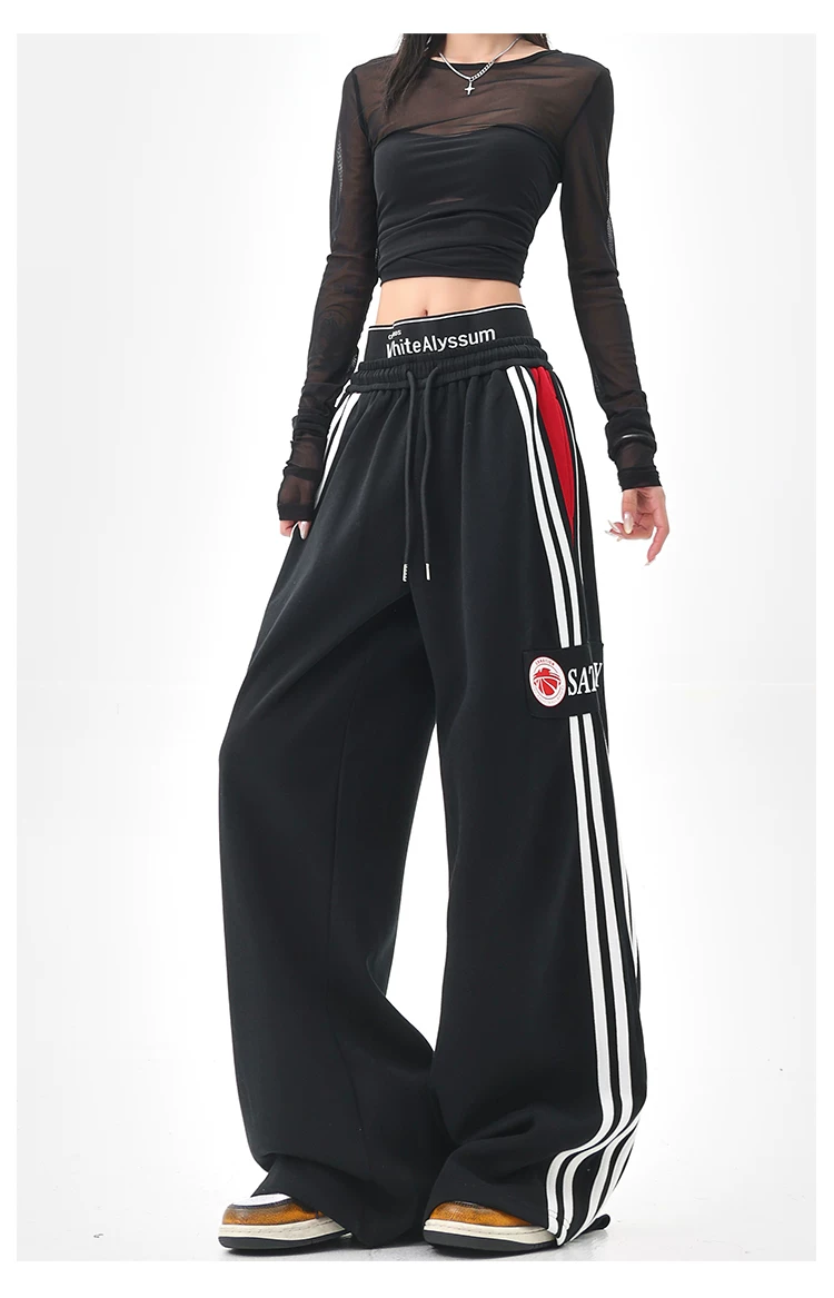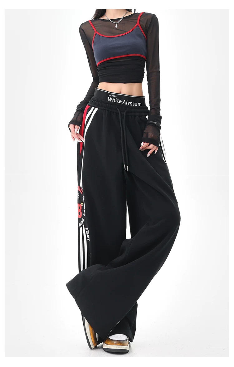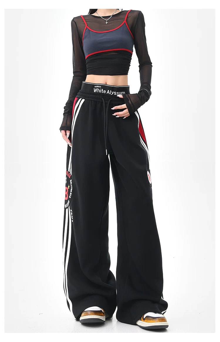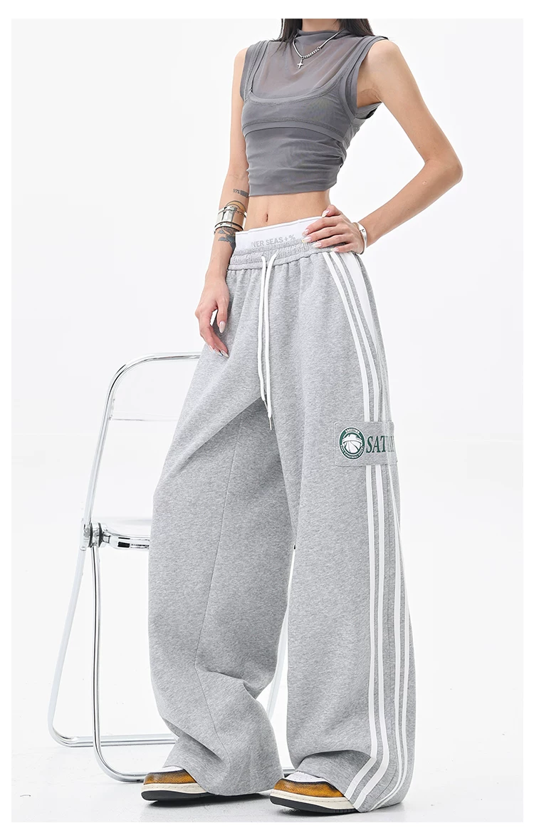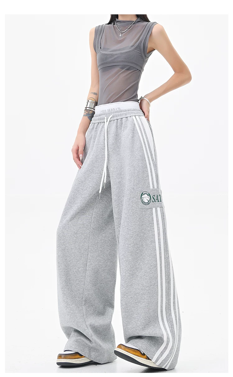 - KEN STUDIO Quần thể thao in chữ phong cách retro kiểu Mỹ dành cho nữ quần thể thao ống rộng dáng rộng đa năng
