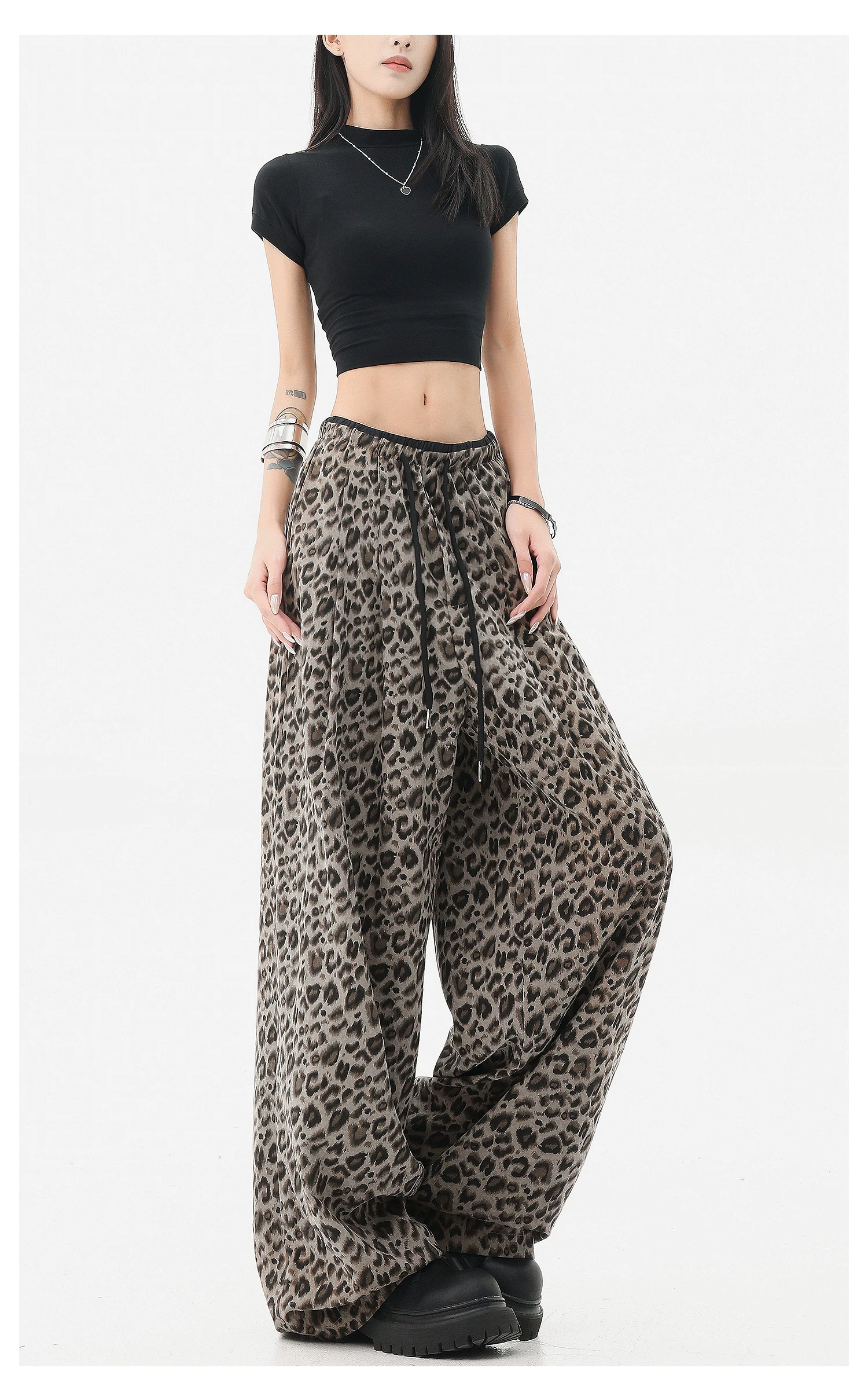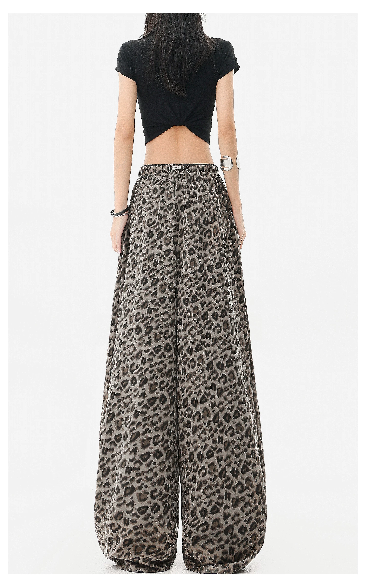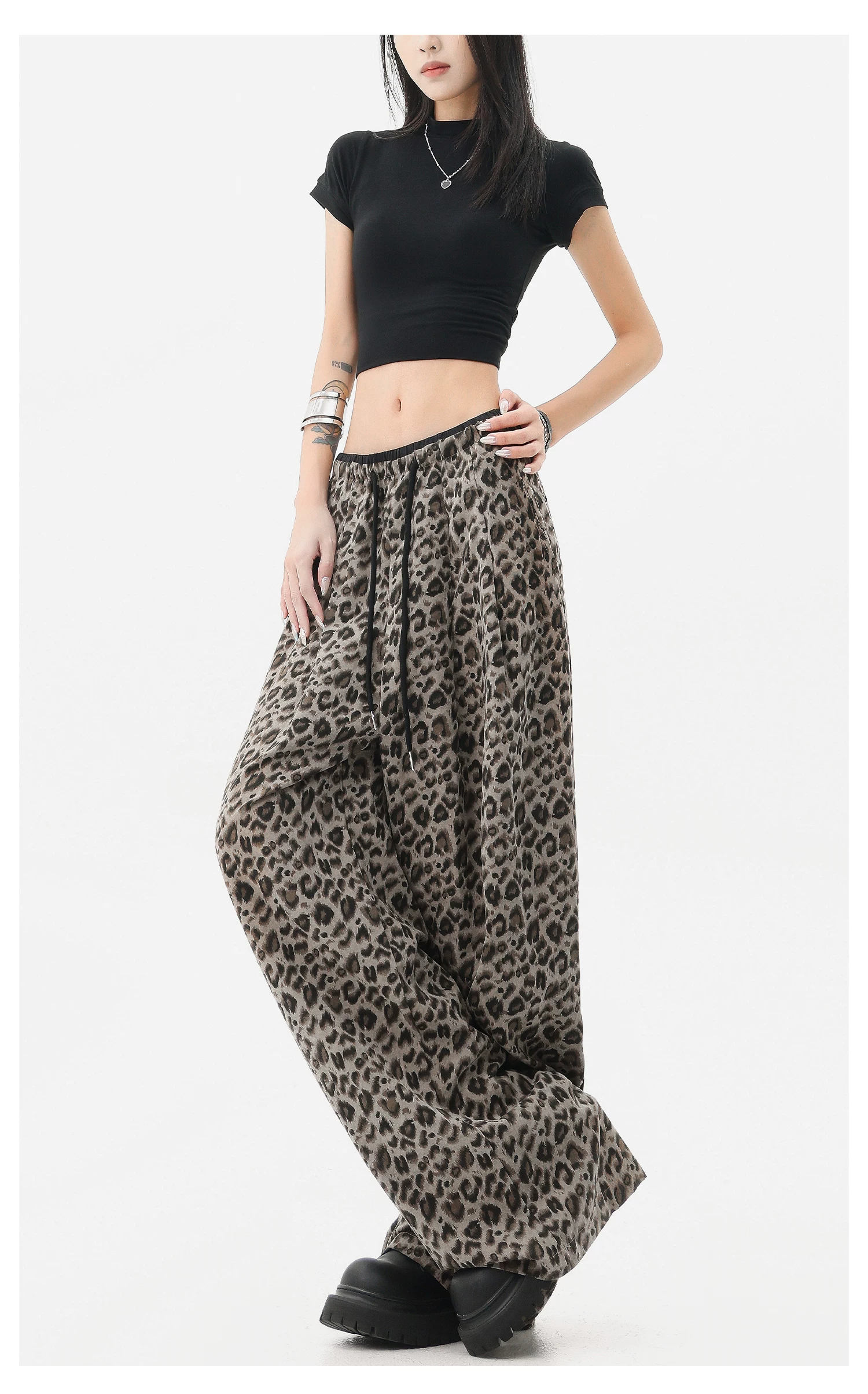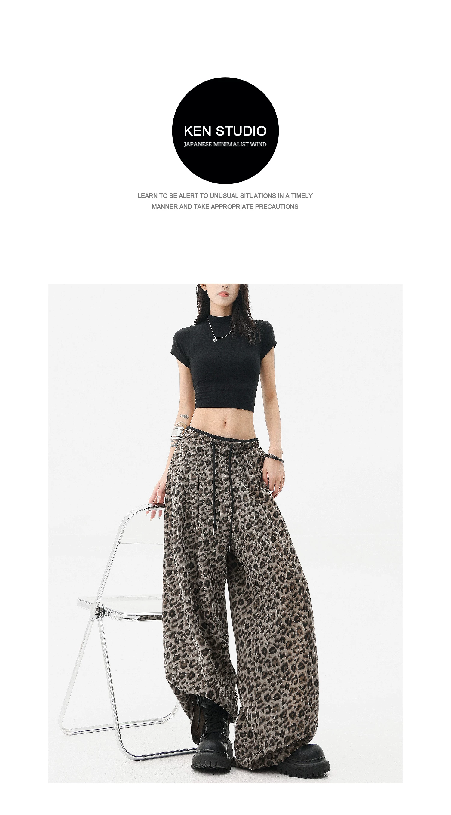 - KEN STUDIO quần thường ngày in họa tiết da báo theo phong cách retro Mỹ dành cho nữ, quần cạp cao, dáng rộng, quần ống rộng giúp giảm béo.