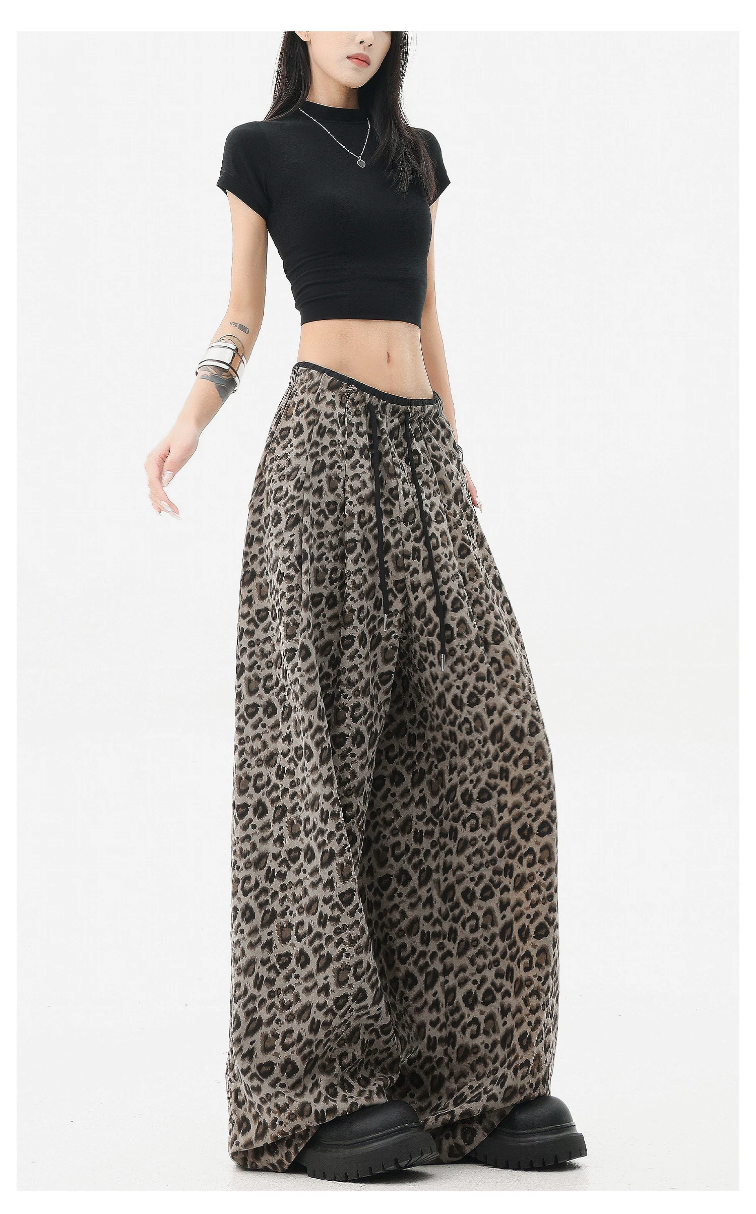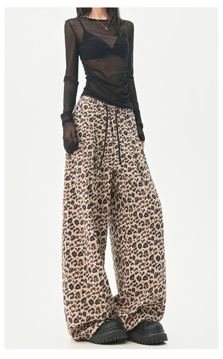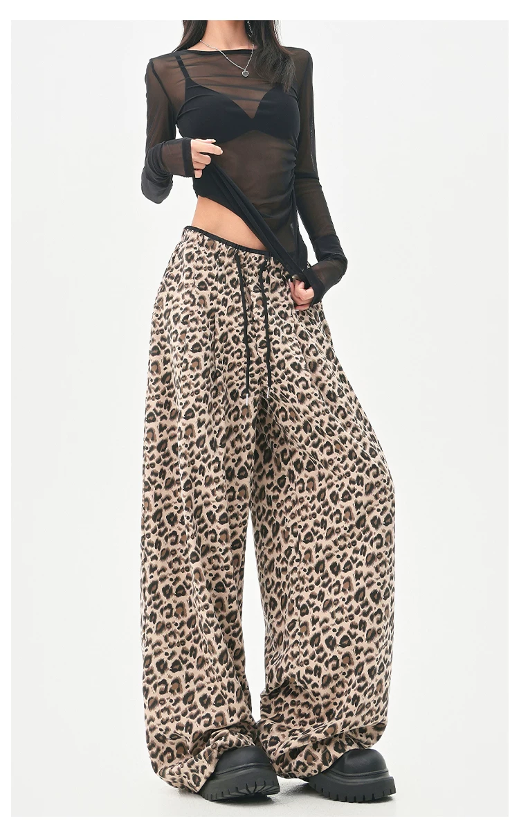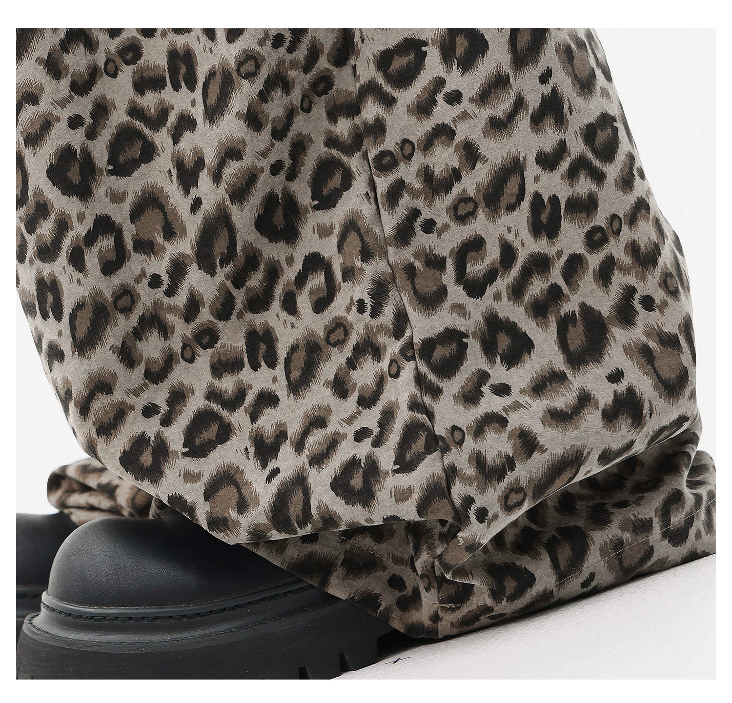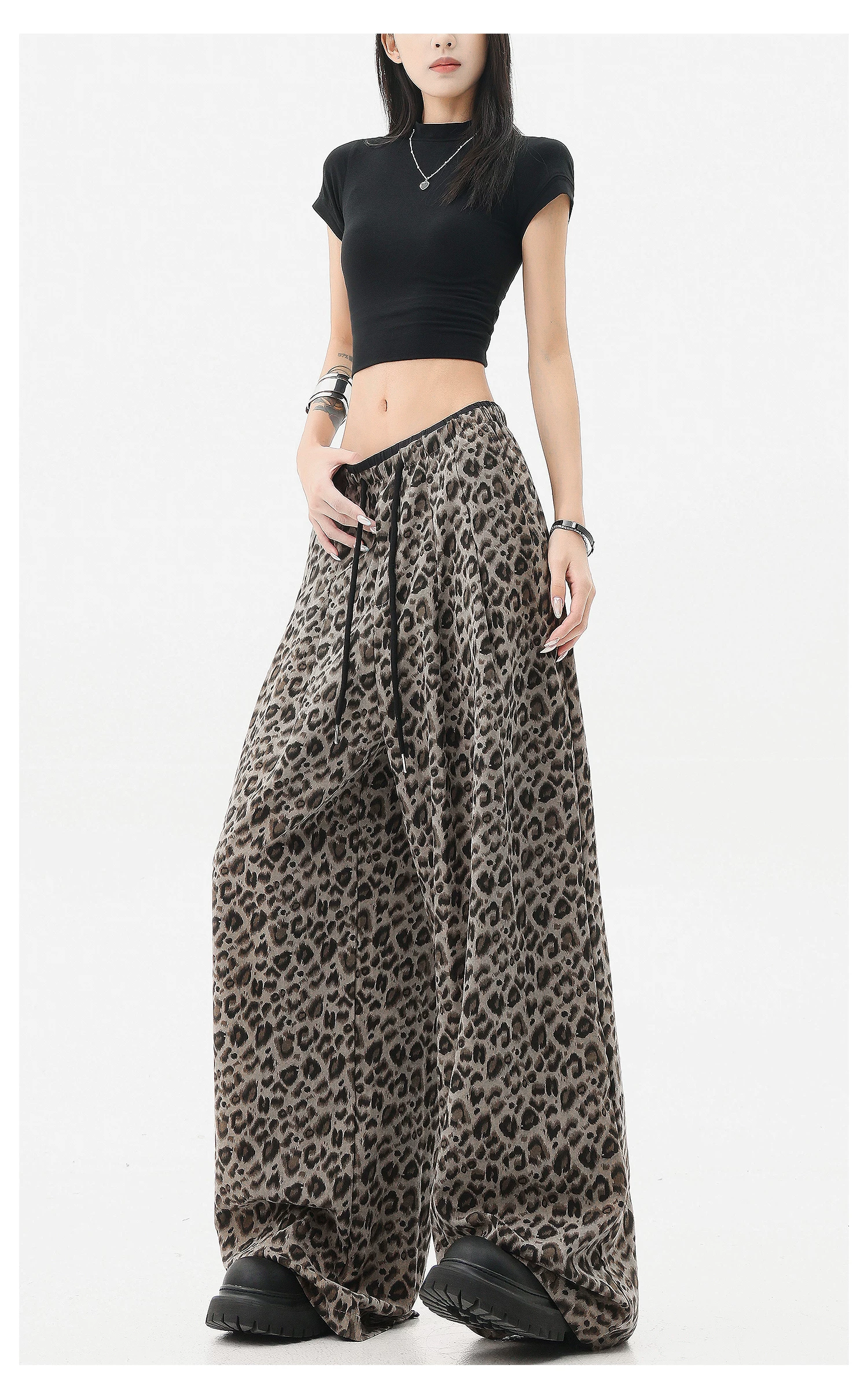 - KEN STUDIO quần thường ngày in họa tiết da báo theo phong cách retro Mỹ dành cho nữ, quần cạp cao, dáng rộng, quần ống rộng giúp giảm béo.
