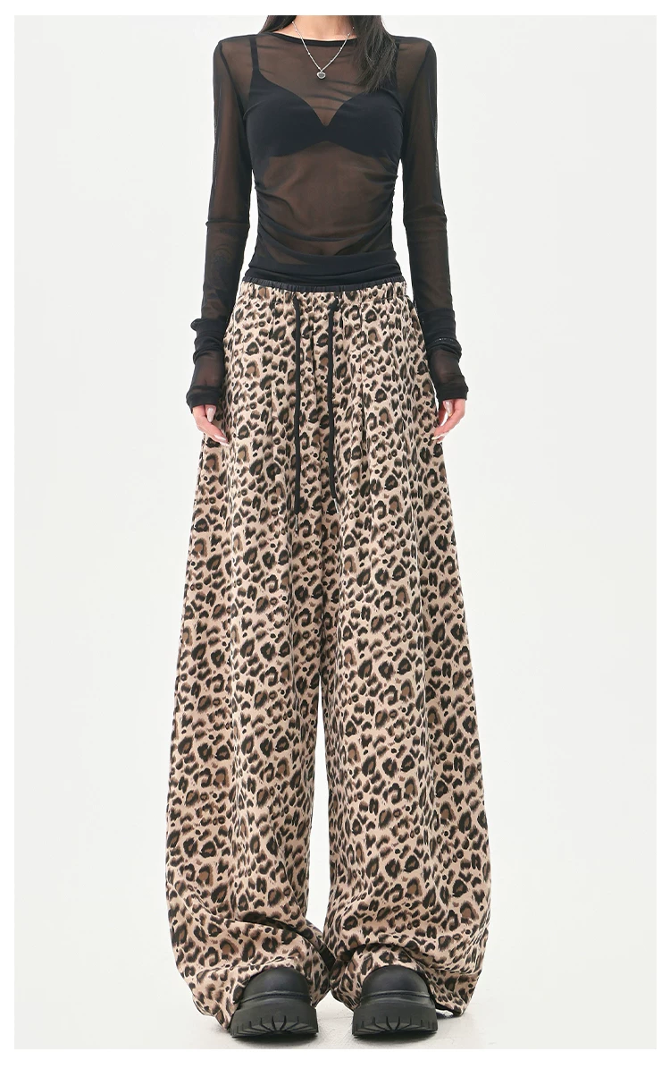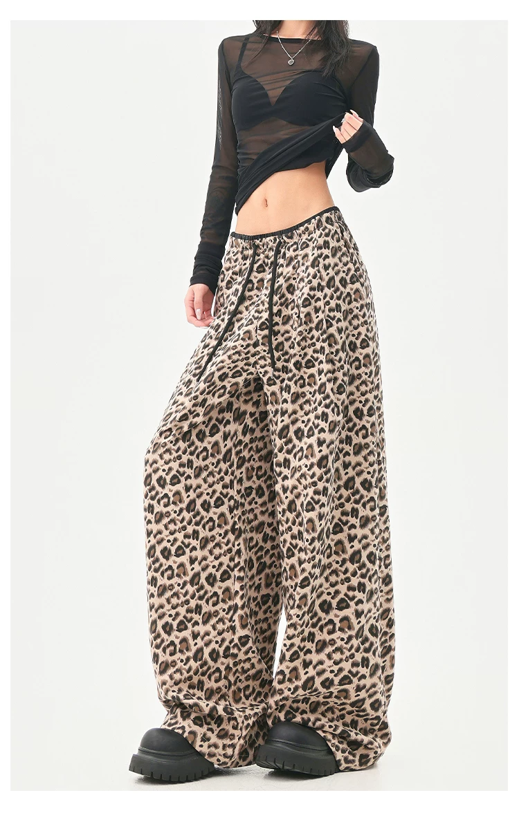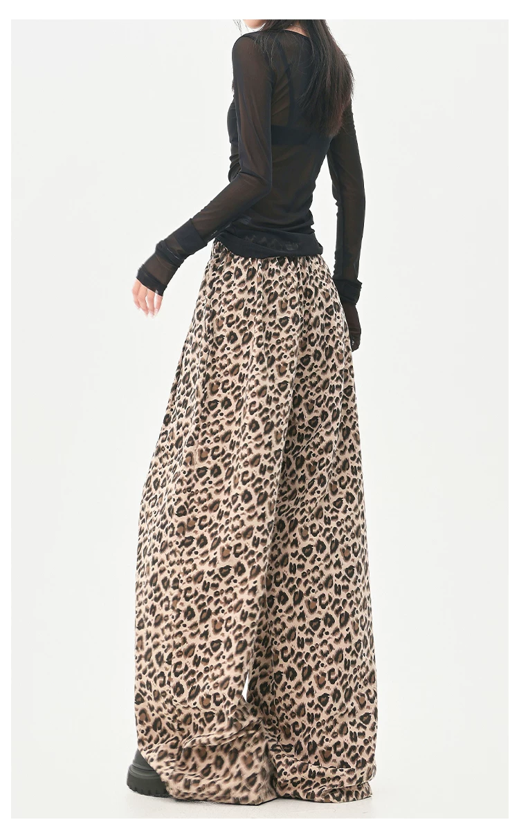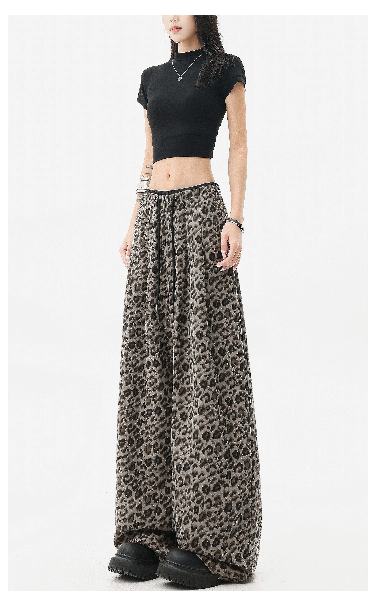 - KEN STUDIO quần thường ngày in họa tiết da báo theo phong cách retro Mỹ dành cho nữ, quần cạp cao, dáng rộng, quần ống rộng giúp giảm béo.