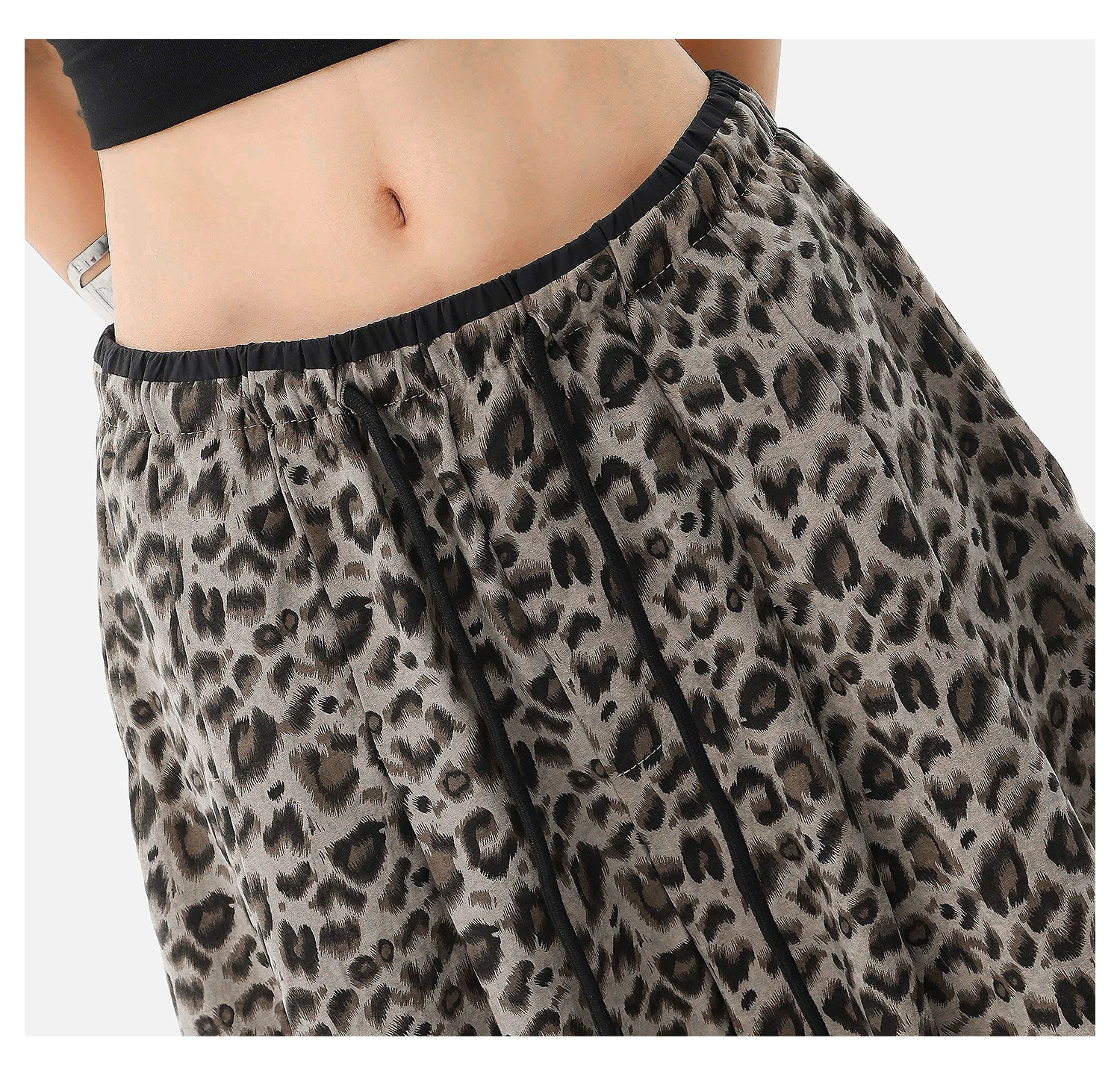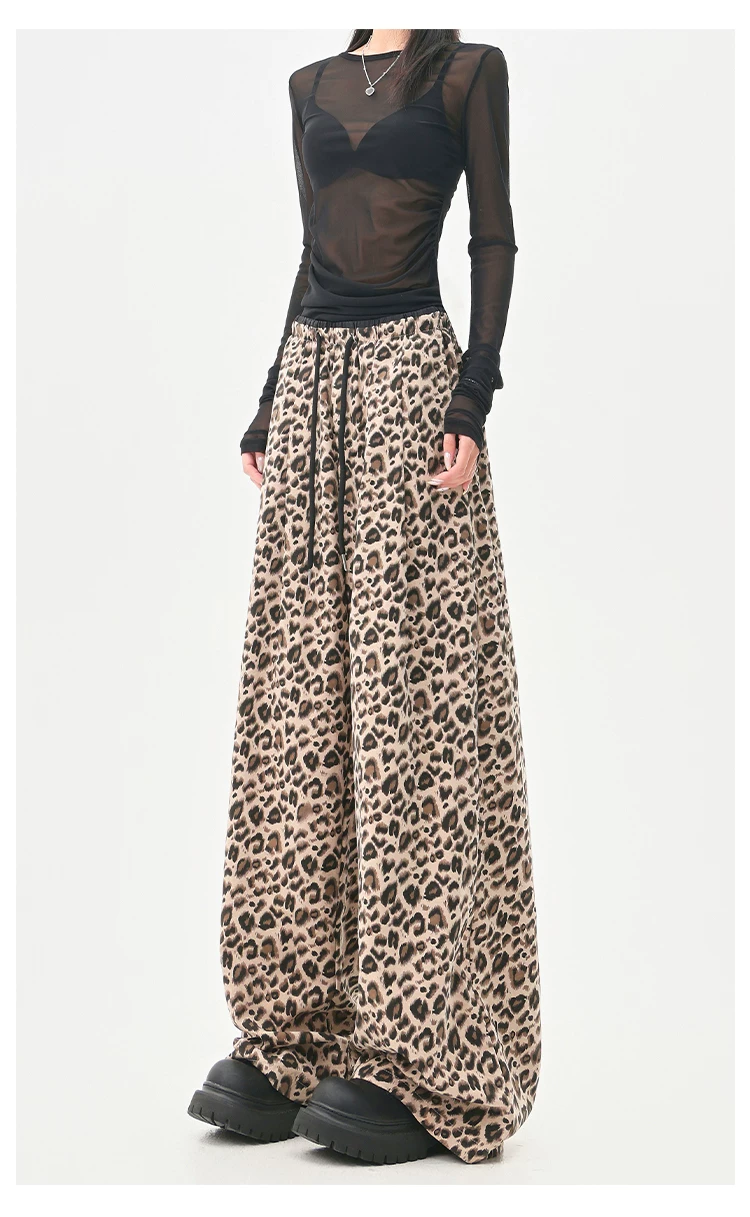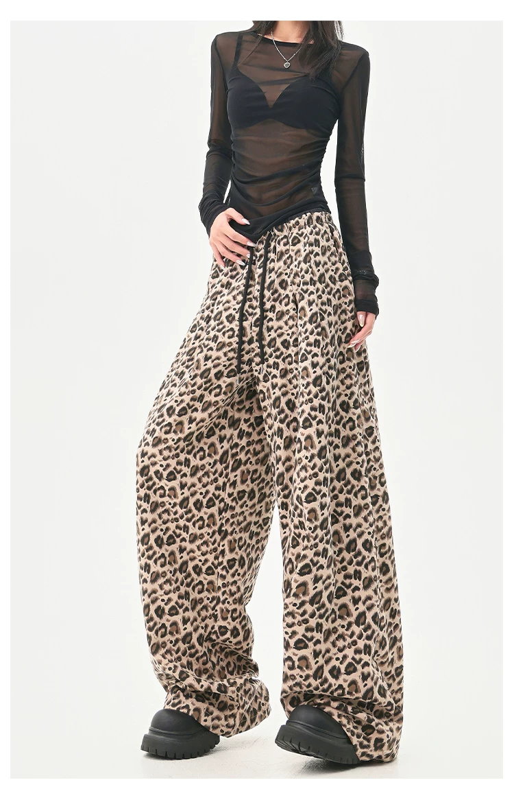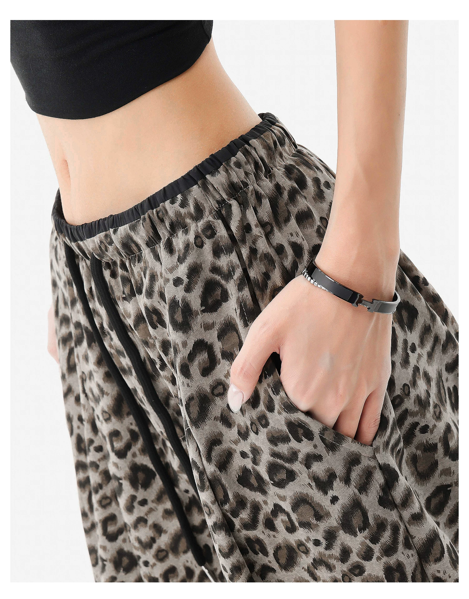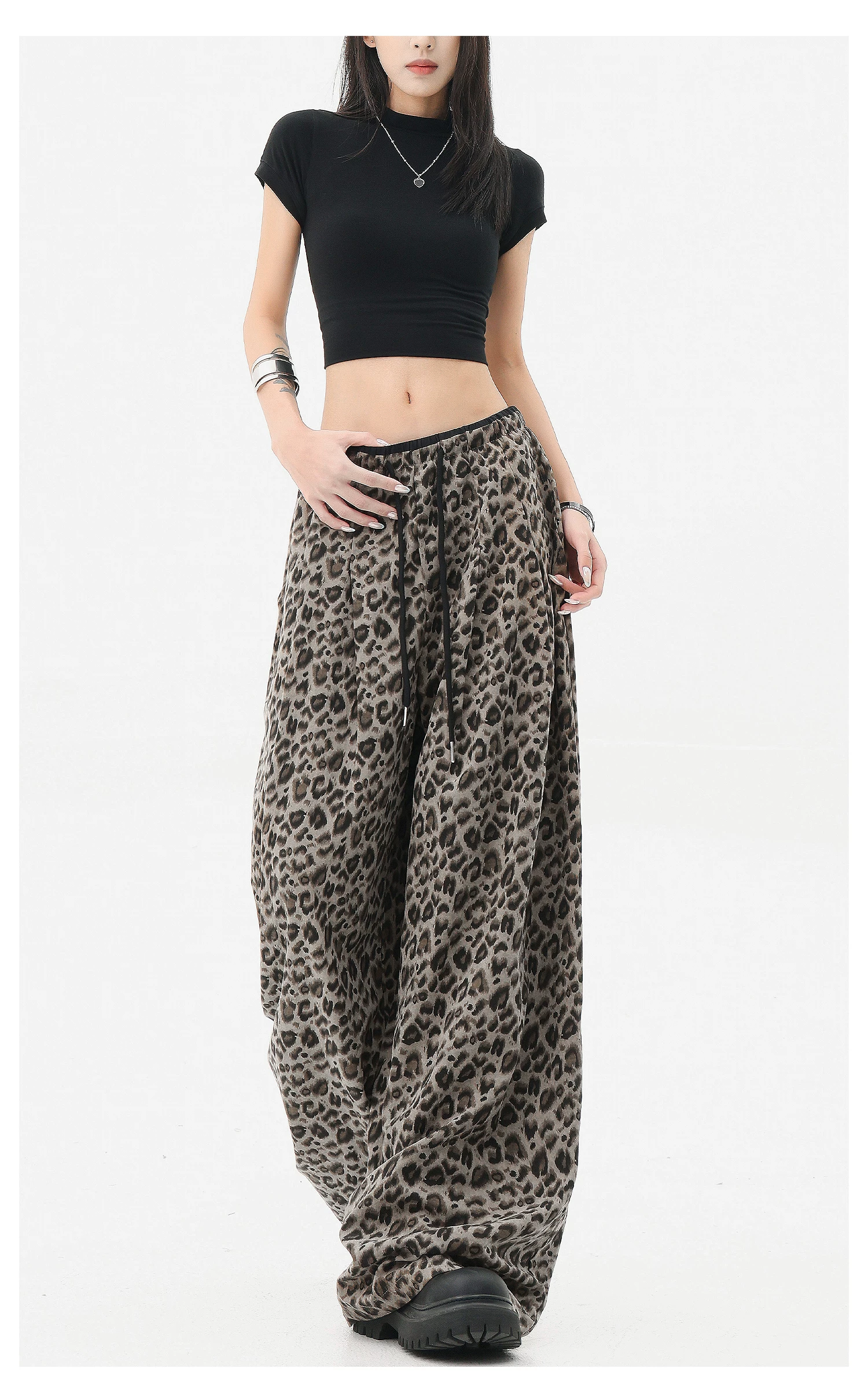 - KEN STUDIO quần thường ngày in họa tiết da báo theo phong cách retro Mỹ dành cho nữ, quần cạp cao, dáng rộng, quần ống rộng giúp giảm béo.
