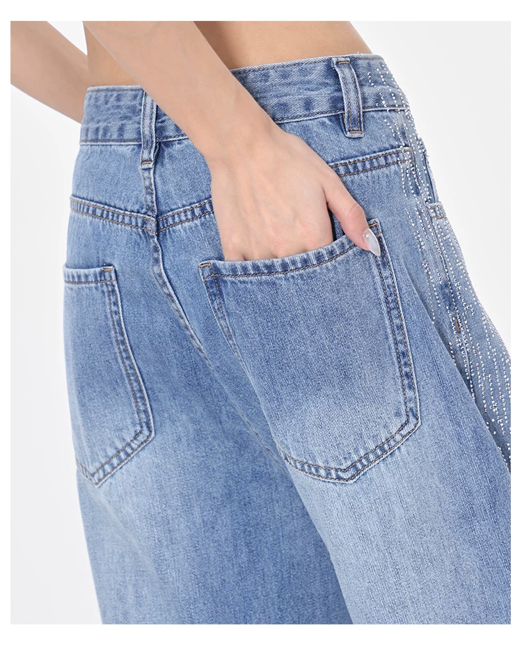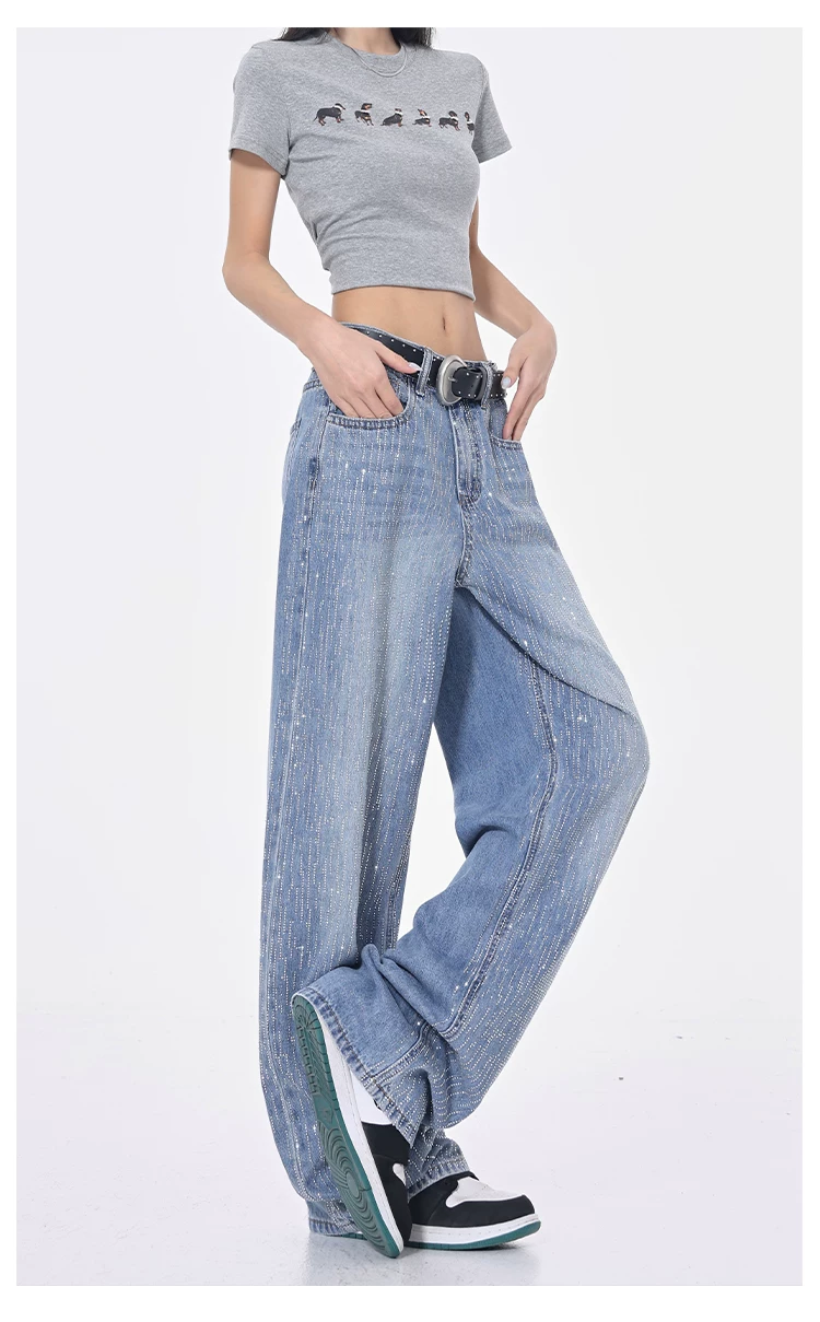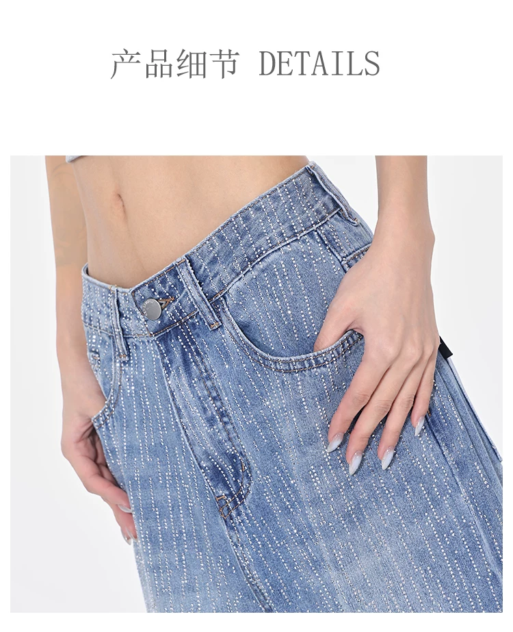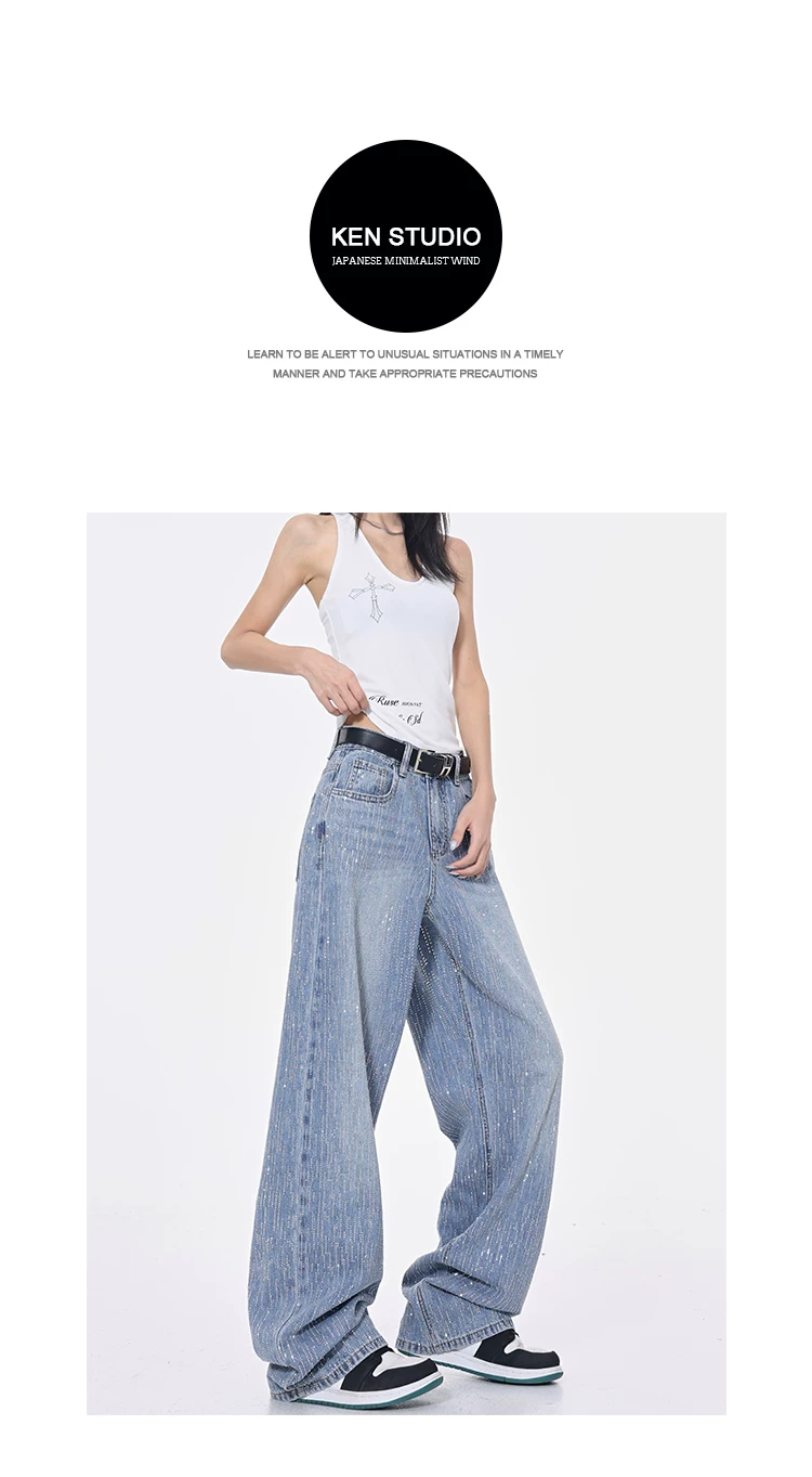 - KEN STUDIO thiết kế đá nóng quần jean denim lấp lánh dành cho nữ, quần ống rộng dáng thẳng giảm béo mùa hè mới