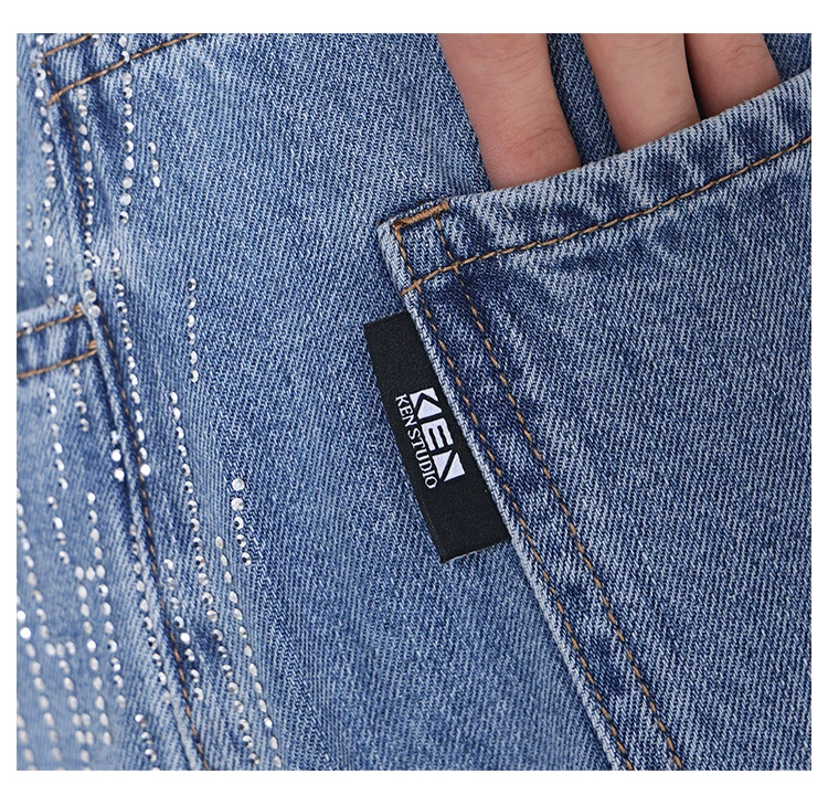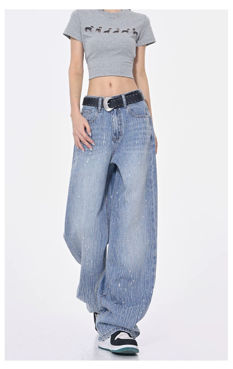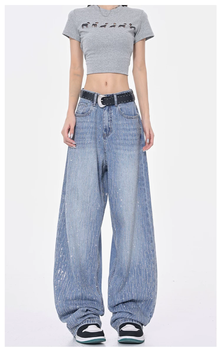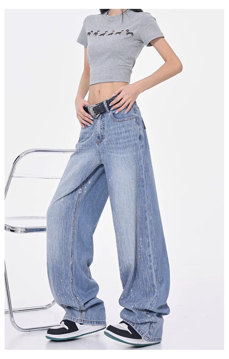 - KEN STUDIO thiết kế đá nóng quần jean denim lấp lánh dành cho nữ, quần ống rộng dáng thẳng giảm béo mùa hè mới