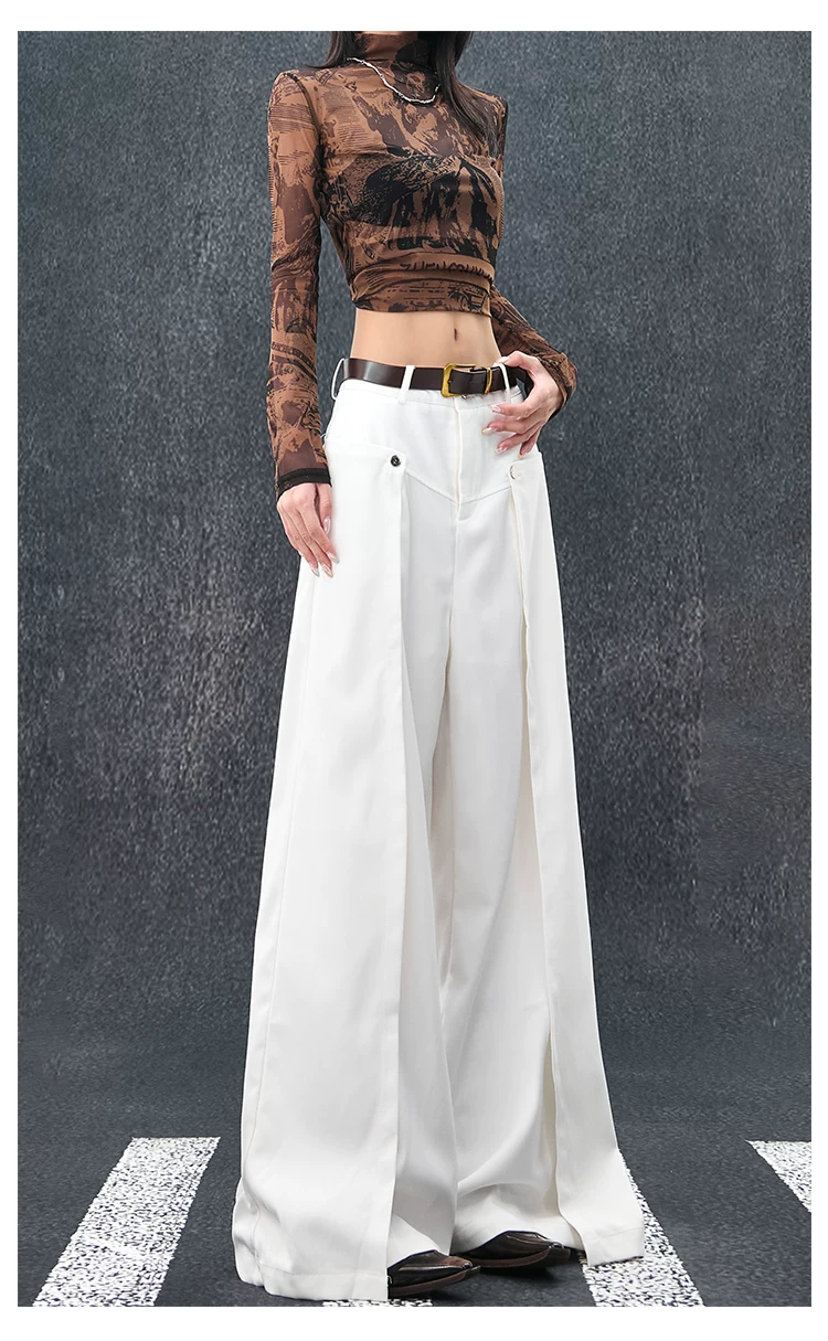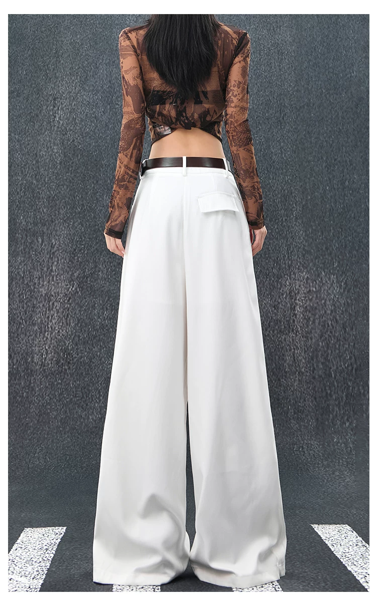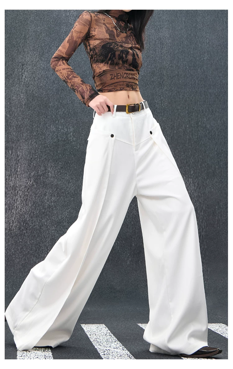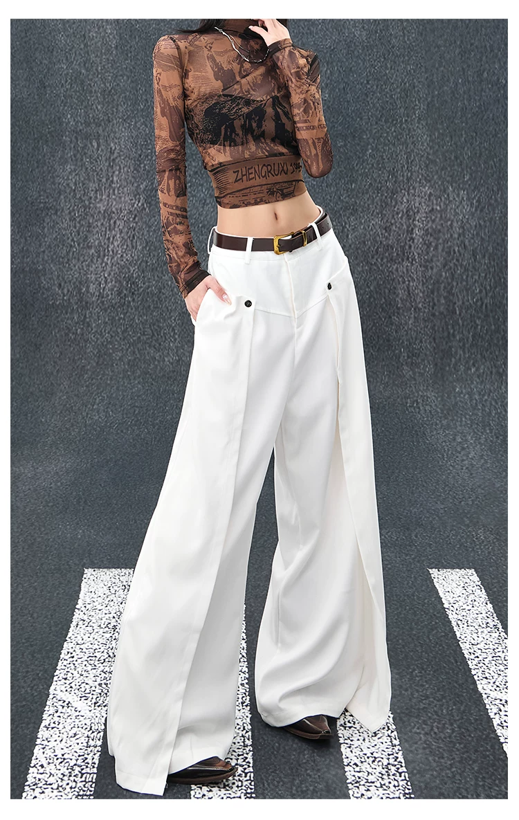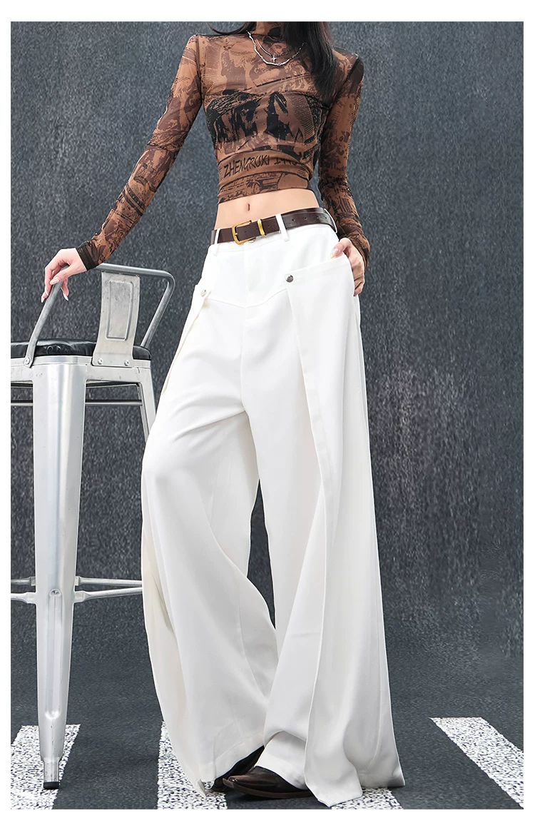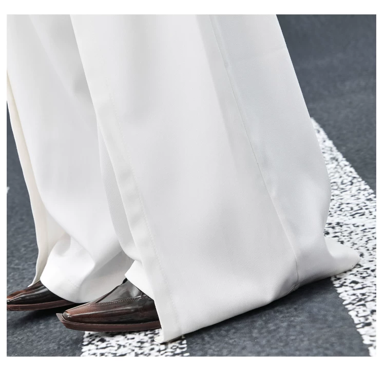 - KEN STUDIO thiết kế mới mùa hè và mùa thu quần âu ống rộng màu trắng dành cho nữ, quần cạp cao, thon gọn, mềm mại, quần dài đến sàn