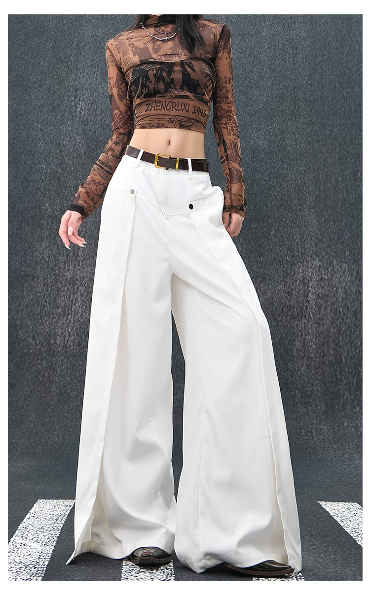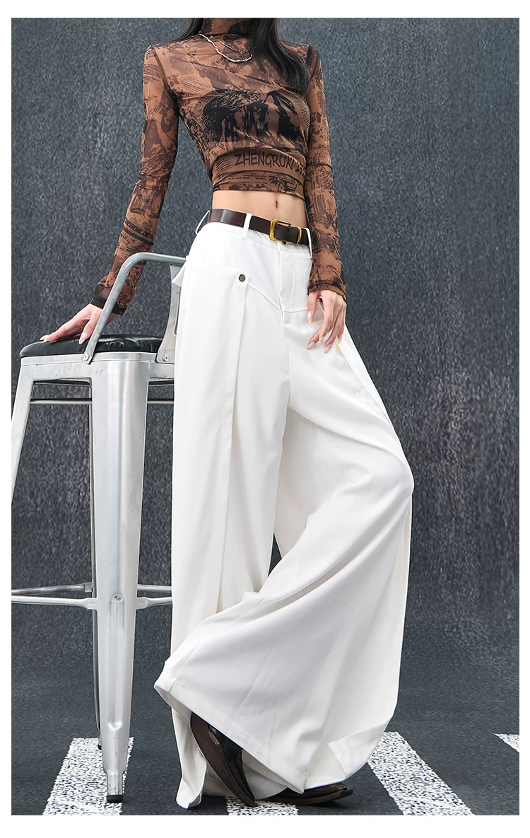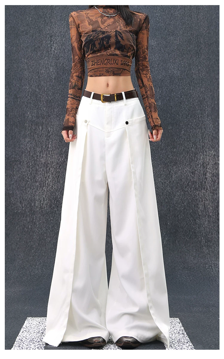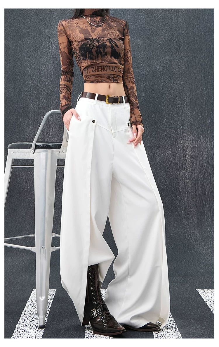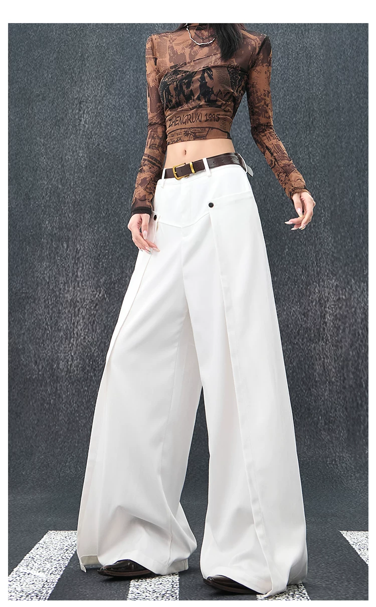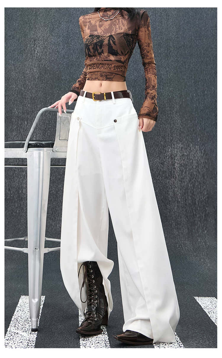 - KEN STUDIO thiết kế mới mùa hè và mùa thu quần âu ống rộng màu trắng dành cho nữ, quần cạp cao, thon gọn, mềm mại, quần dài đến sàn