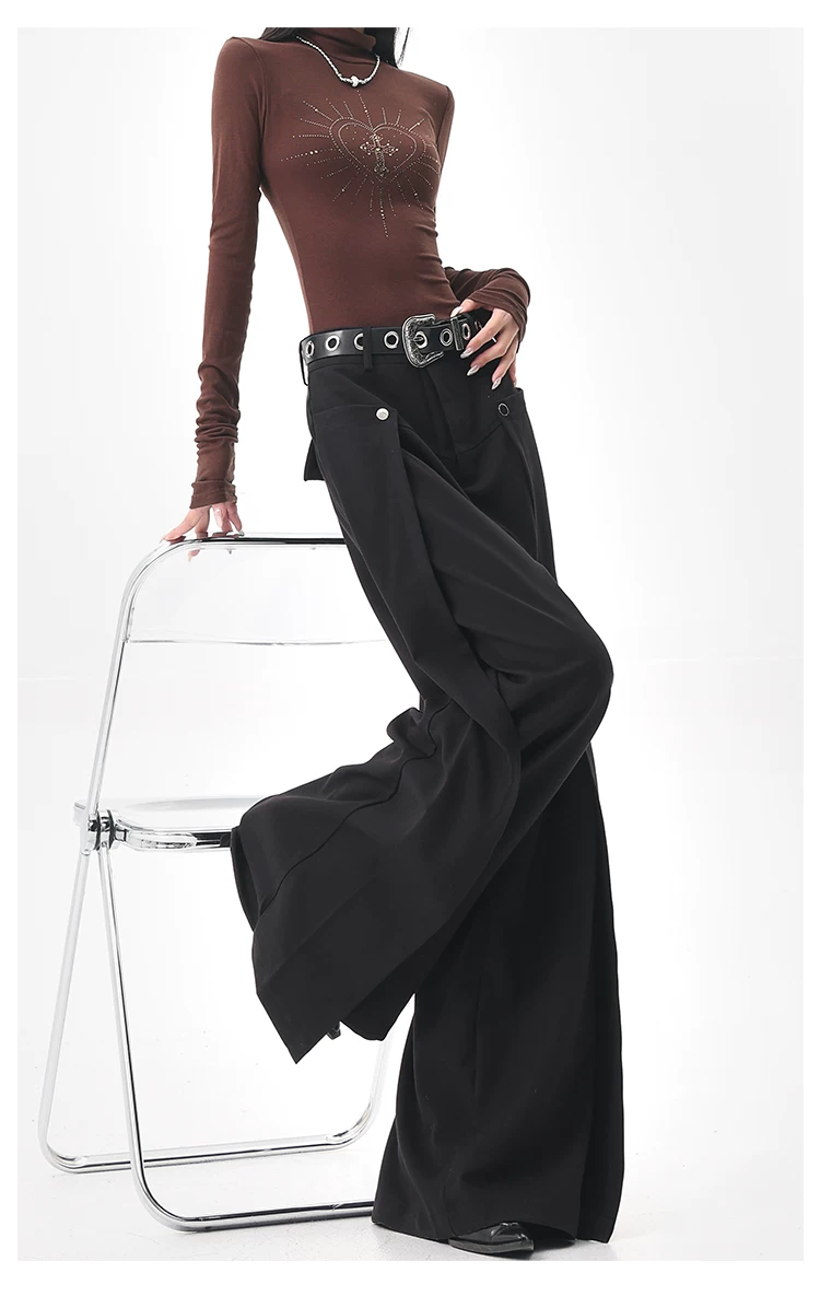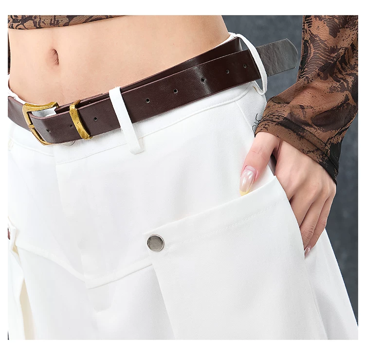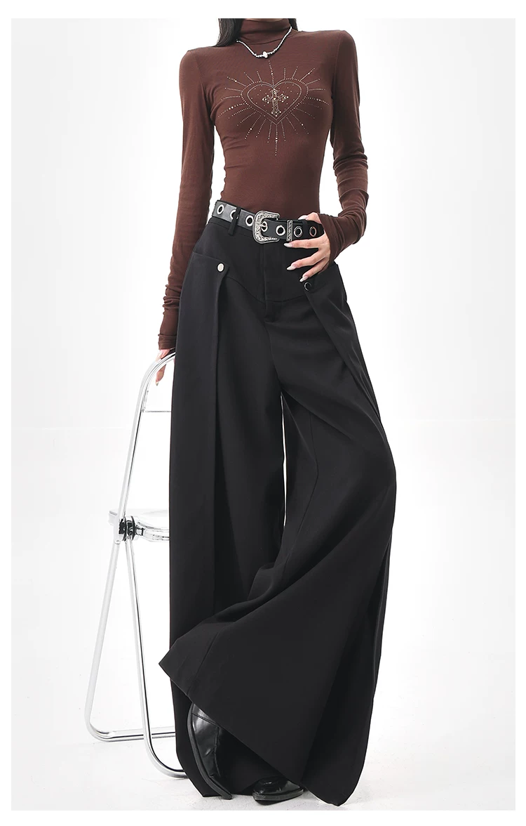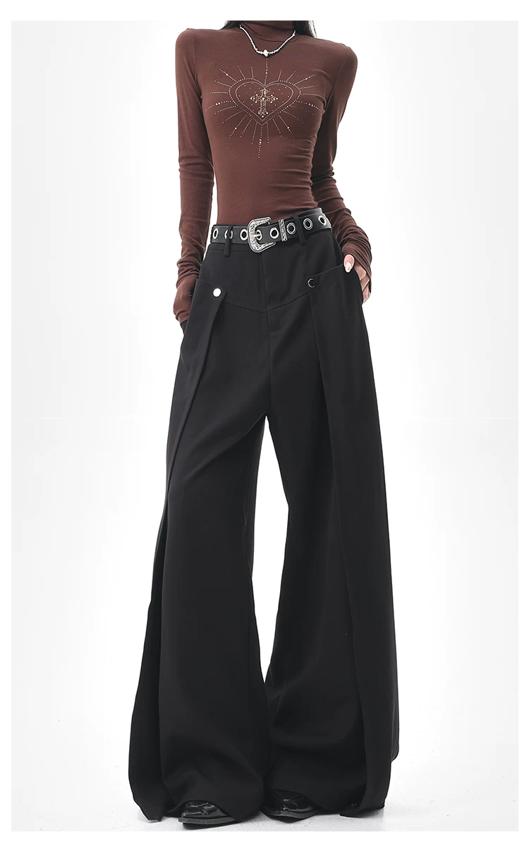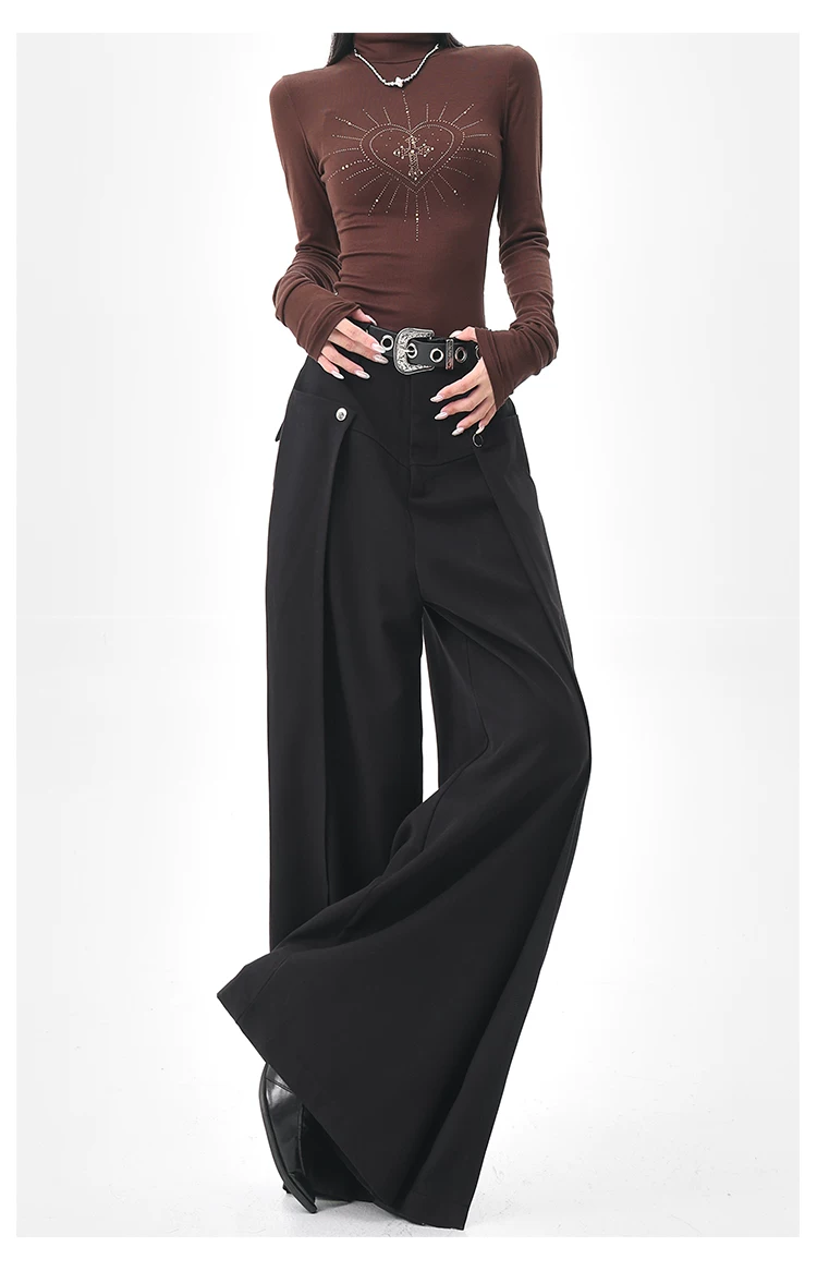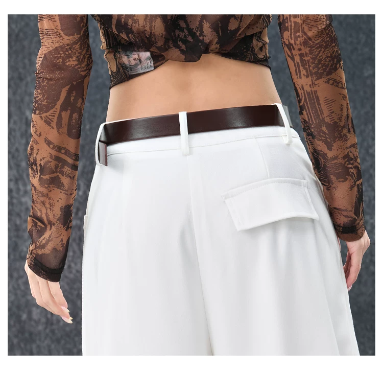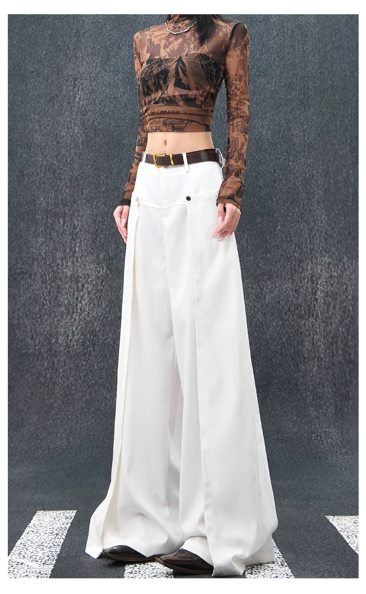 - KEN STUDIO thiết kế mới mùa hè và mùa thu quần âu ống rộng màu trắng dành cho nữ, quần cạp cao, thon gọn, mềm mại, quần dài đến sàn