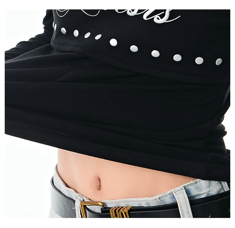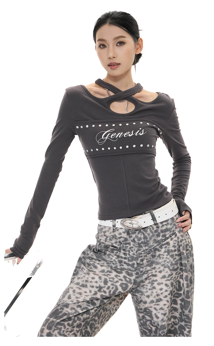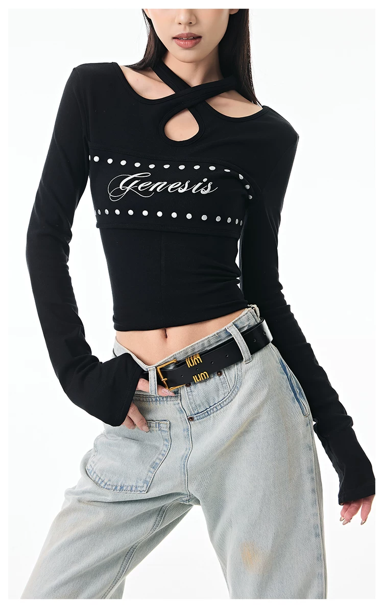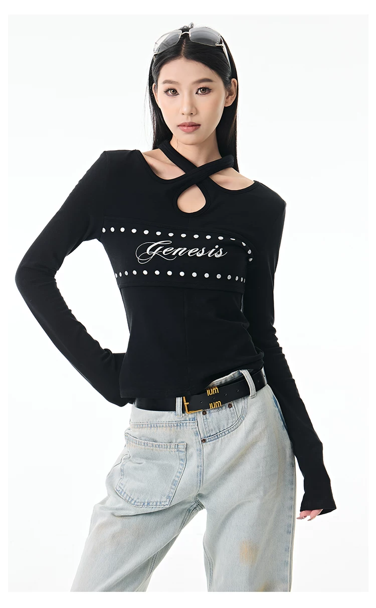 - KEN STUDIO Thu Đông Mới Hot Girl Phong Cách Đen Dây Cổ Áo Dài Tay Nữ Slim Fit Đế Áo Sơ Mi Hàng Đầu