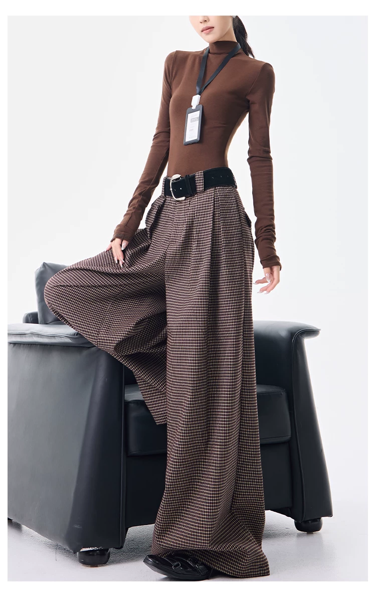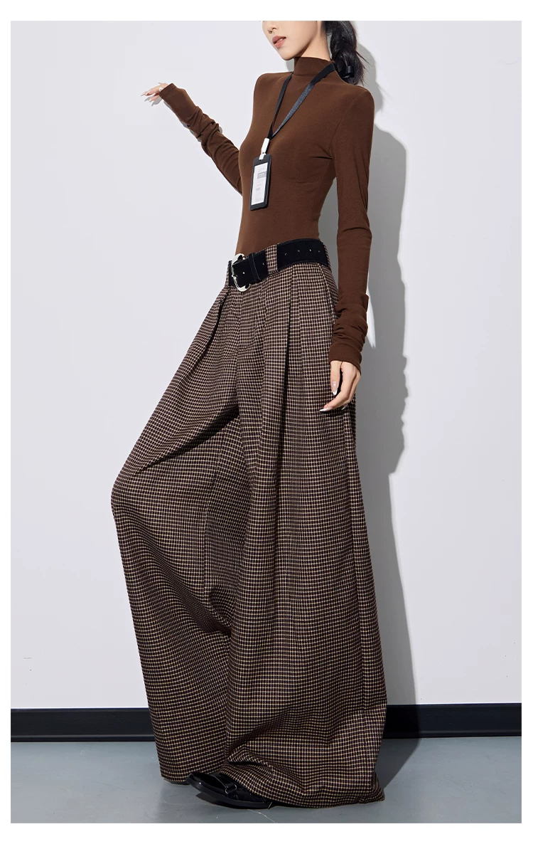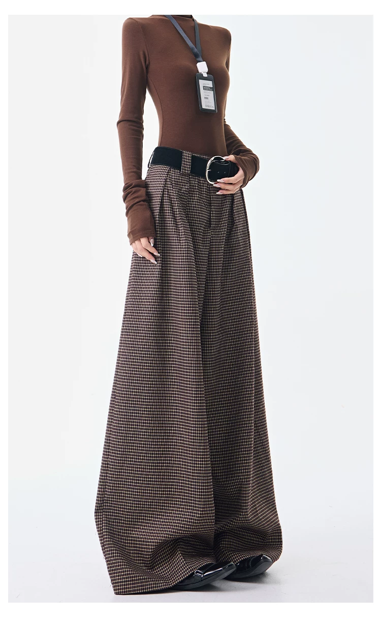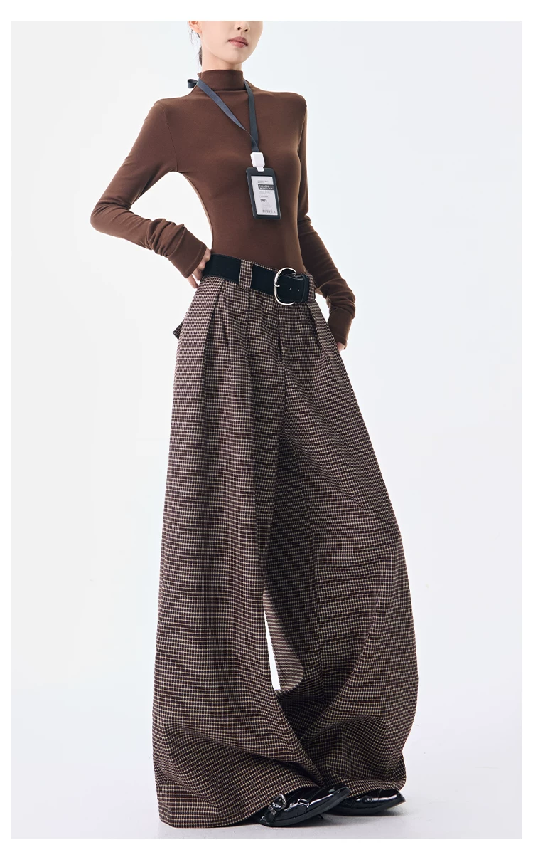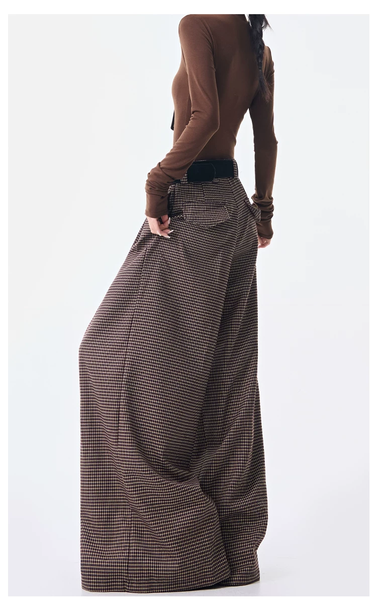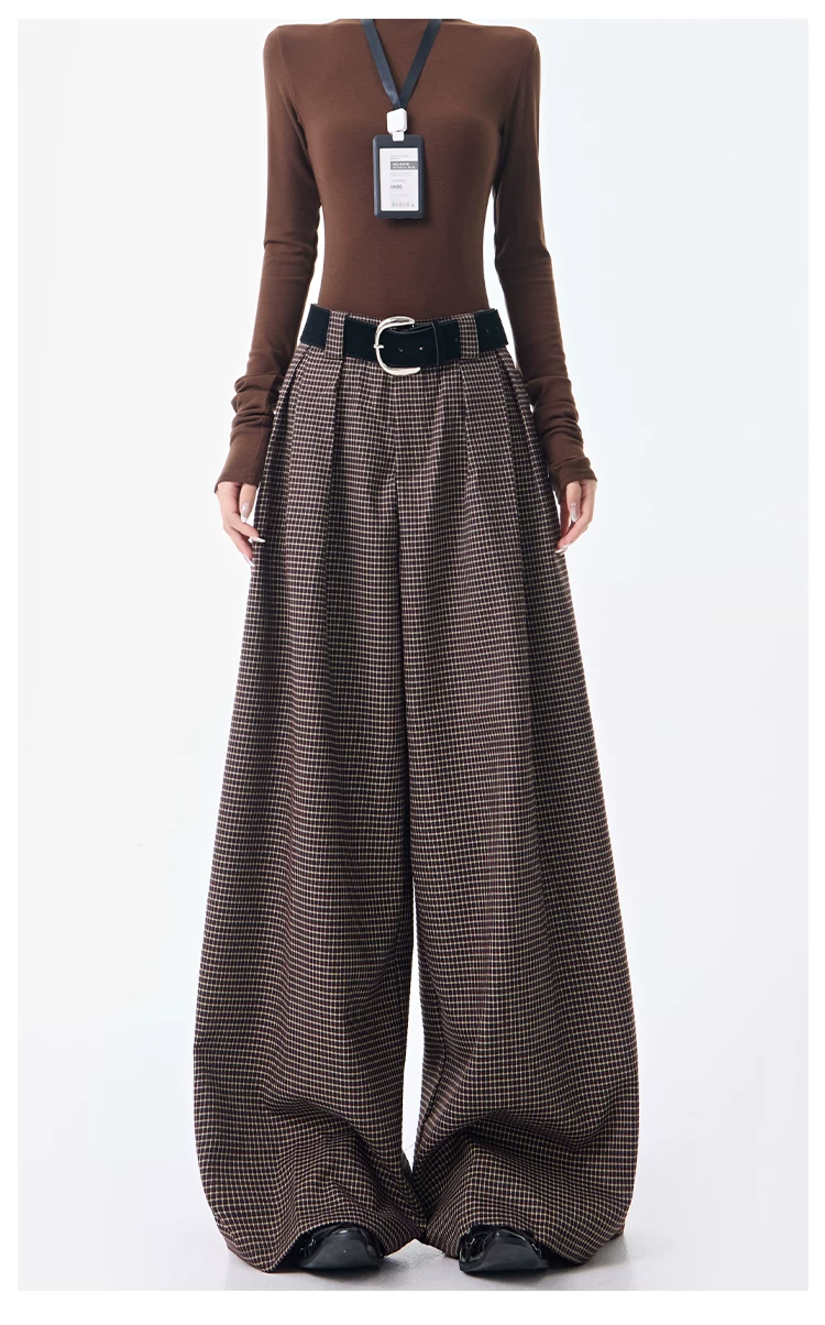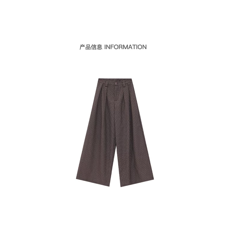- KEN STUDIO Thu Đông Mới Phong Cách Vintage Quần Kẻ Sọc Nữ Phong Cách Old Money Thiết Kế Quần Ống Rộng Dáng Rộng