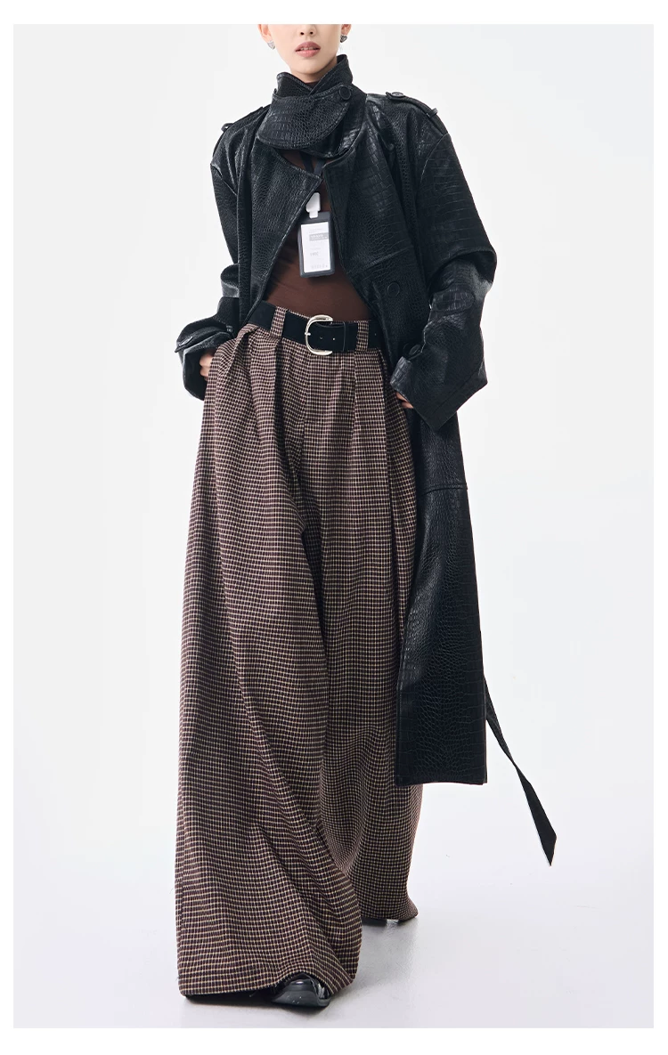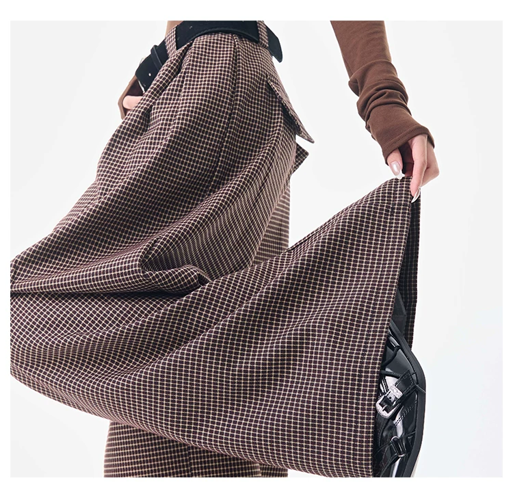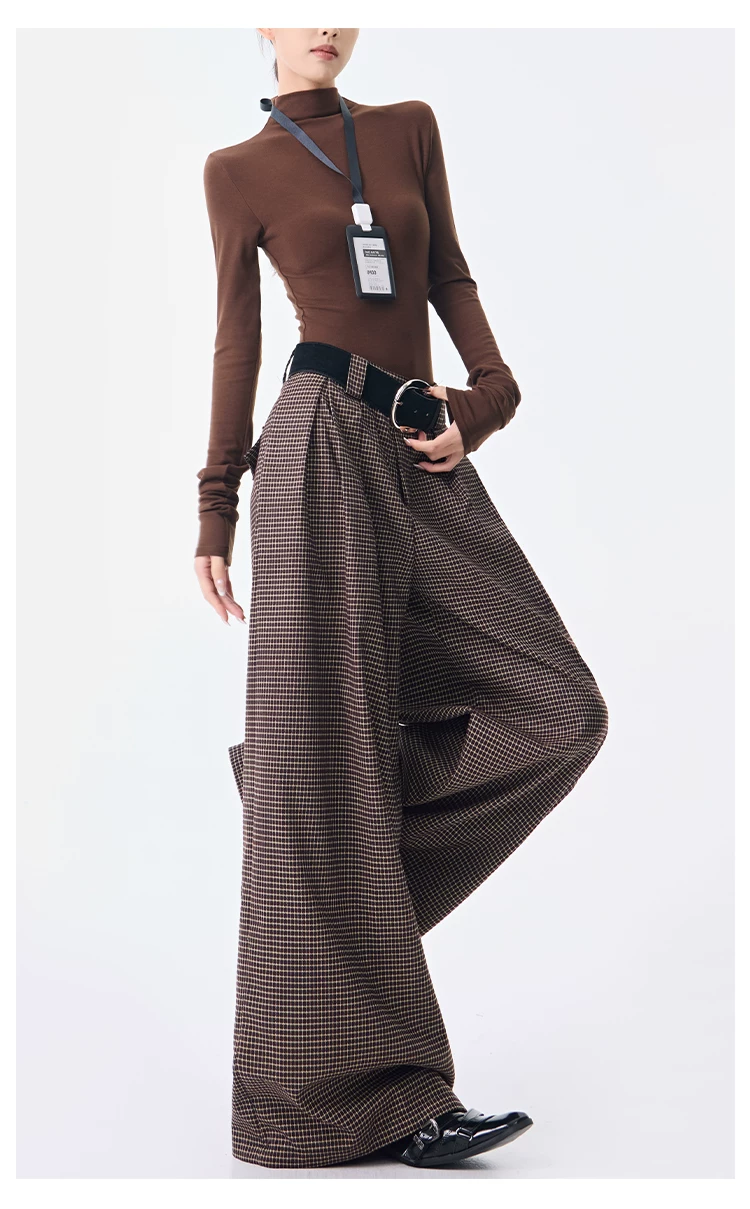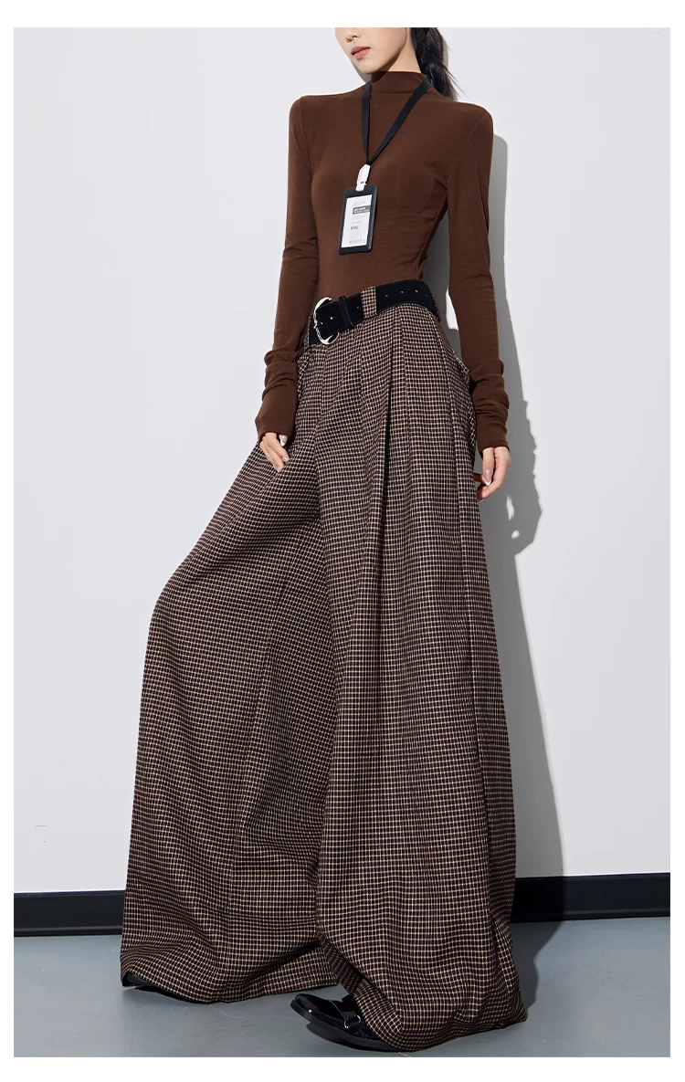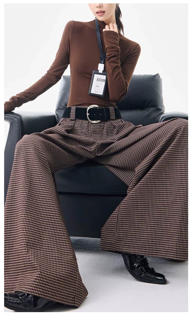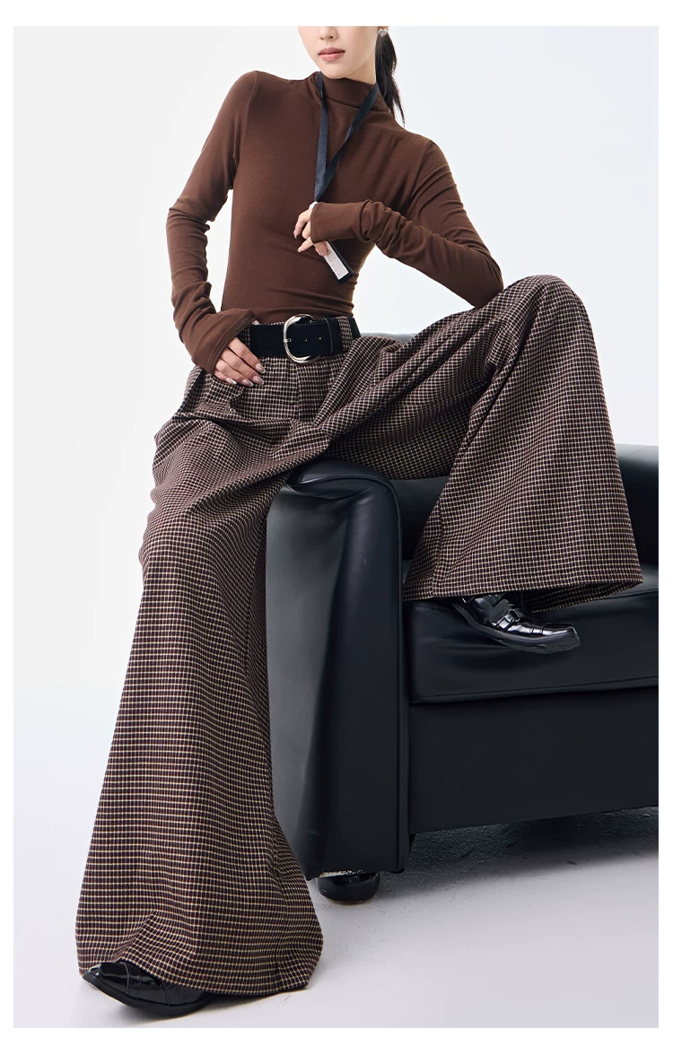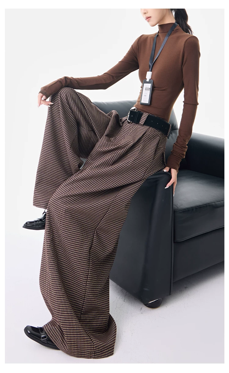 - KEN STUDIO Thu Đông Mới Phong Cách Vintage Quần Kẻ Sọc Nữ Phong Cách Old Money Thiết Kế Quần Ống Rộng Dáng Rộng