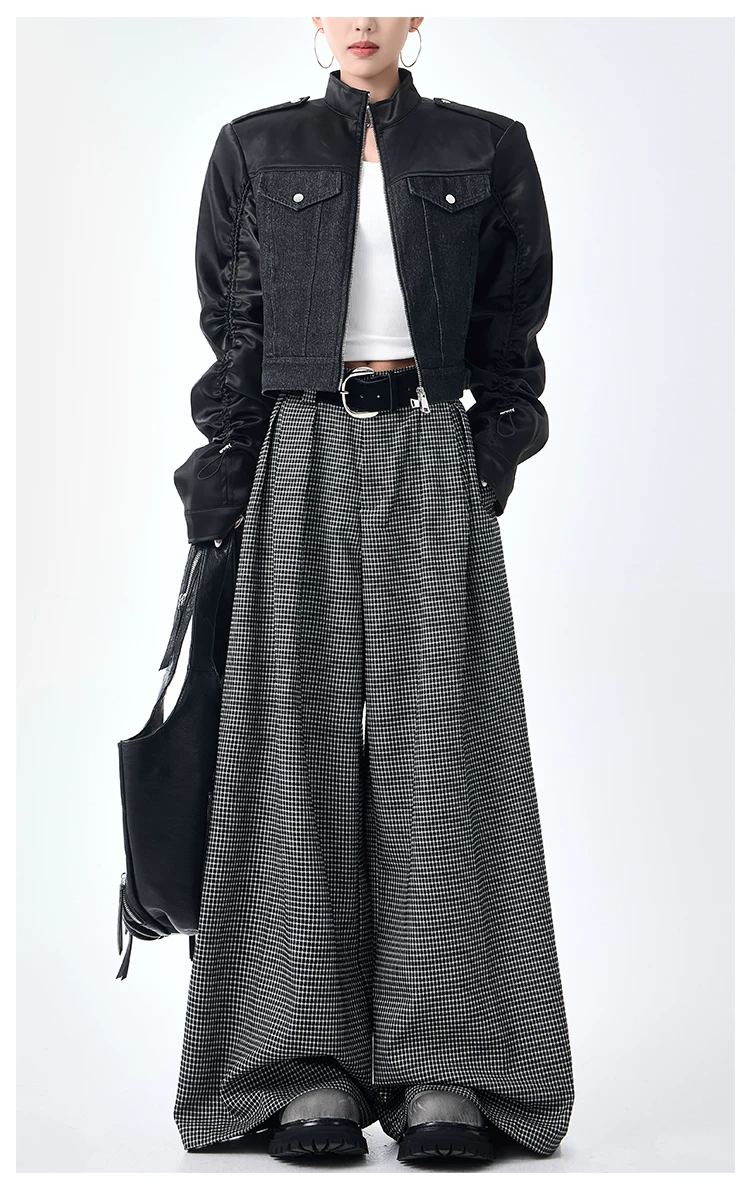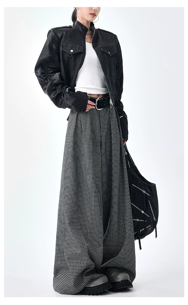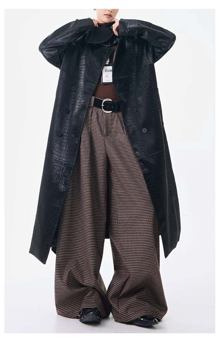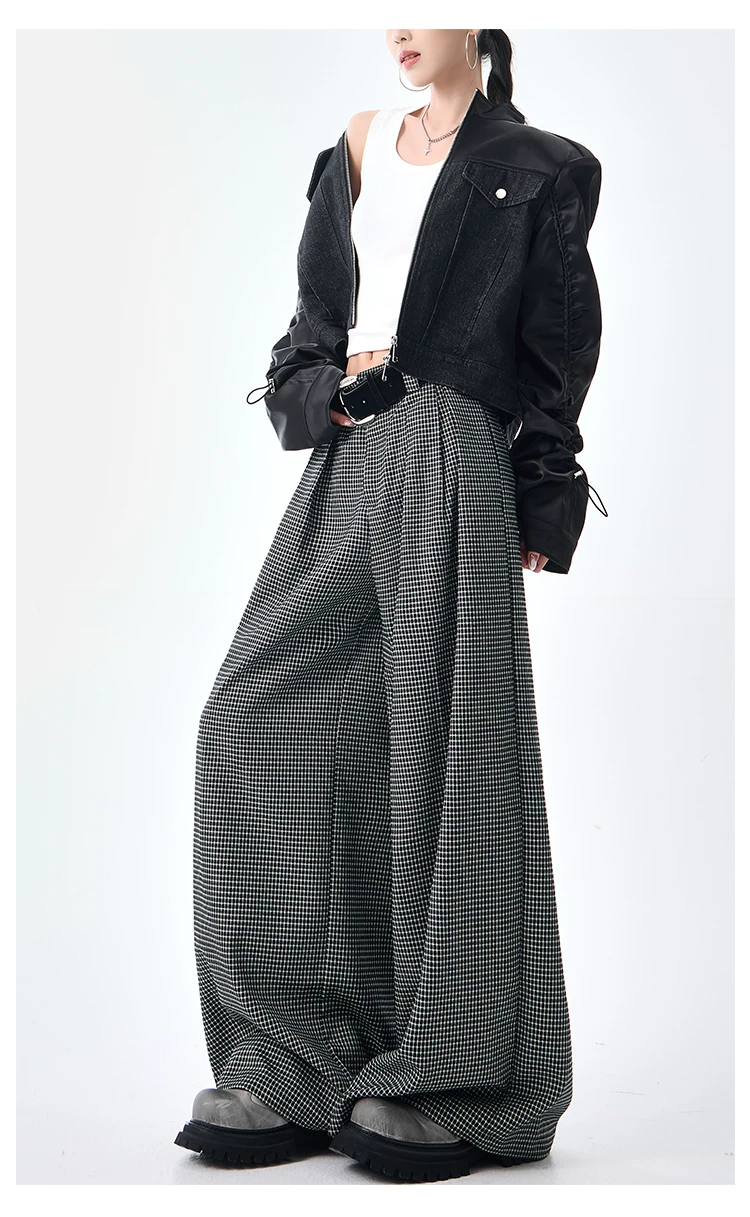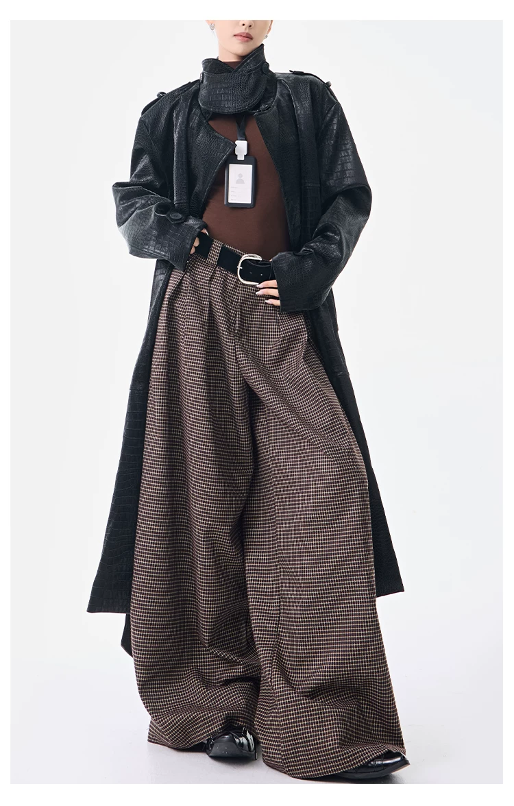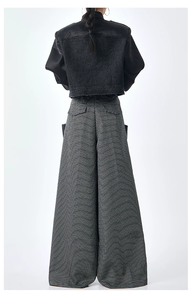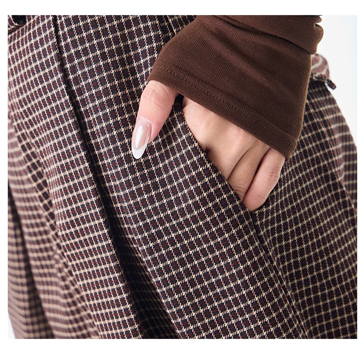 - KEN STUDIO Thu Đông Mới Phong Cách Vintage Quần Kẻ Sọc Nữ Phong Cách Old Money Thiết Kế Quần Ống Rộng Dáng Rộng