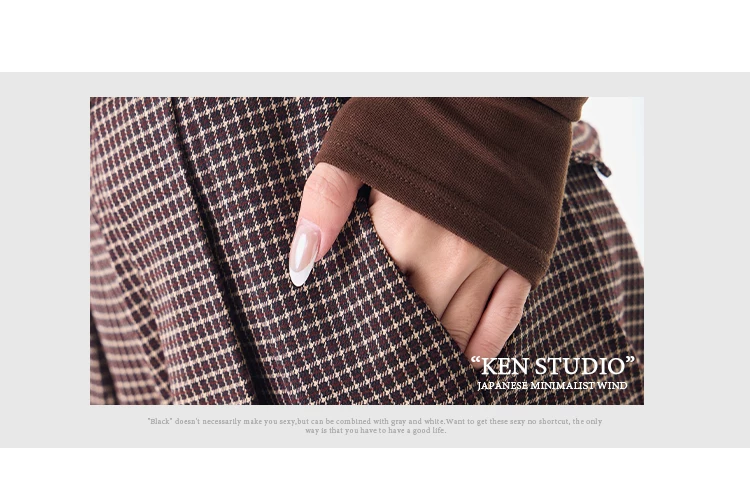 KEN STUDIO Thu Đông Mới Phong Cách Vintage Quần Kẻ Sọc Nữ Phong Cách Old Money Thiết Kế Quần Ống Rộng Dáng Rộng