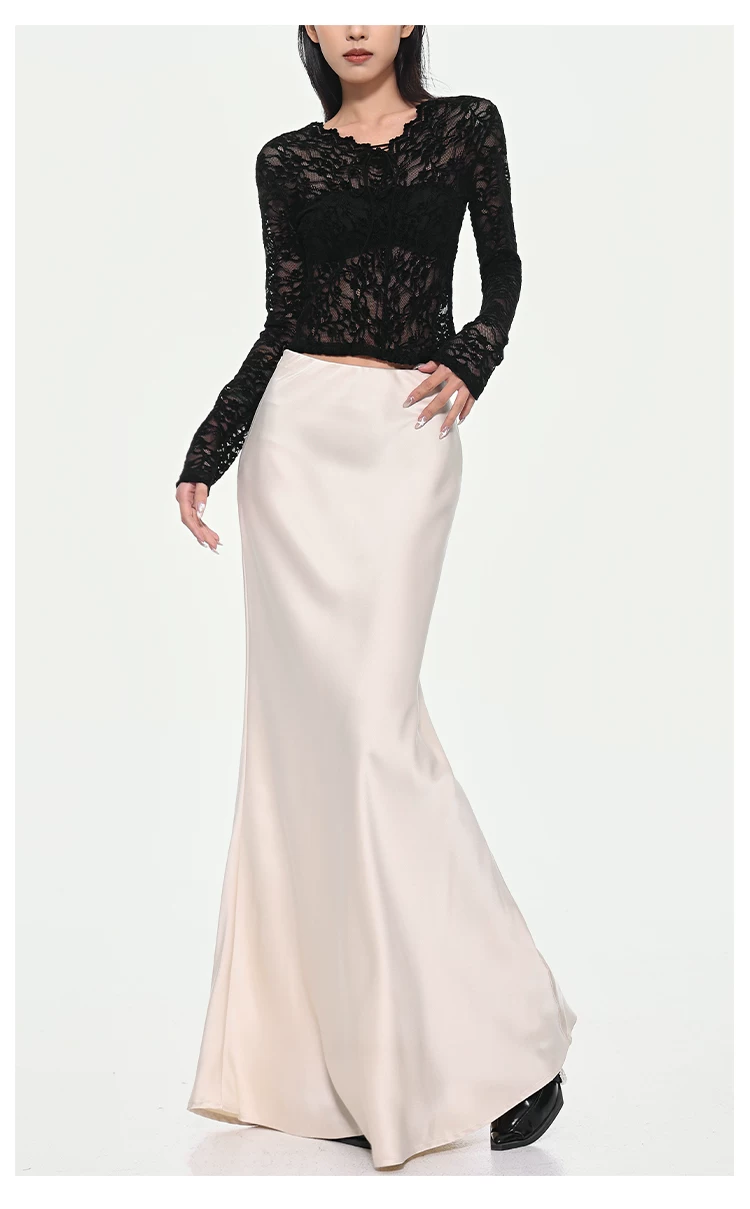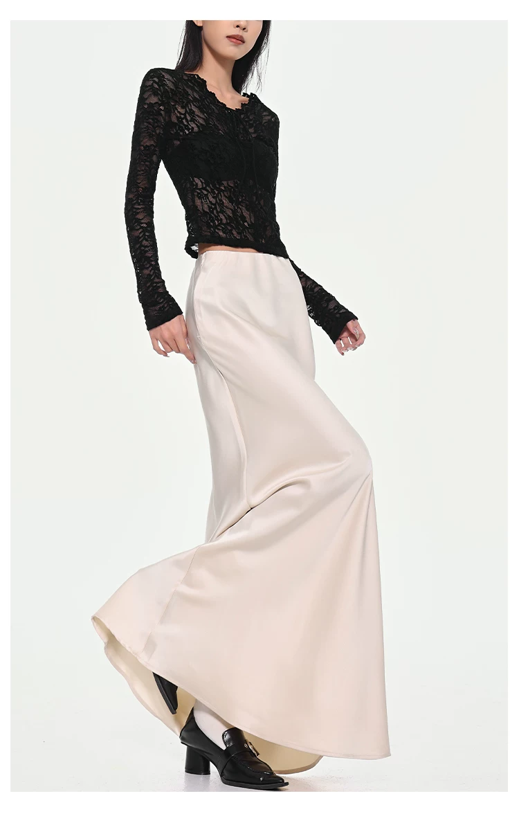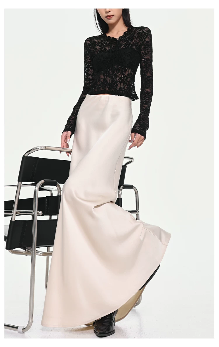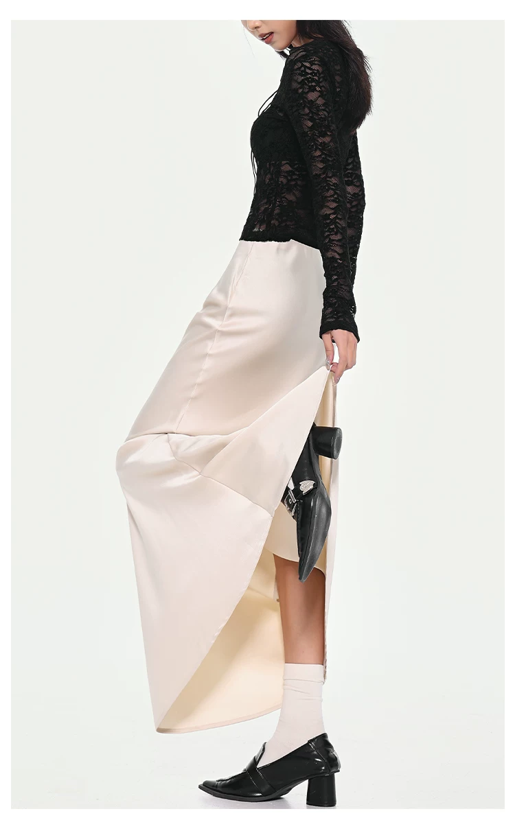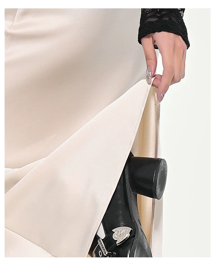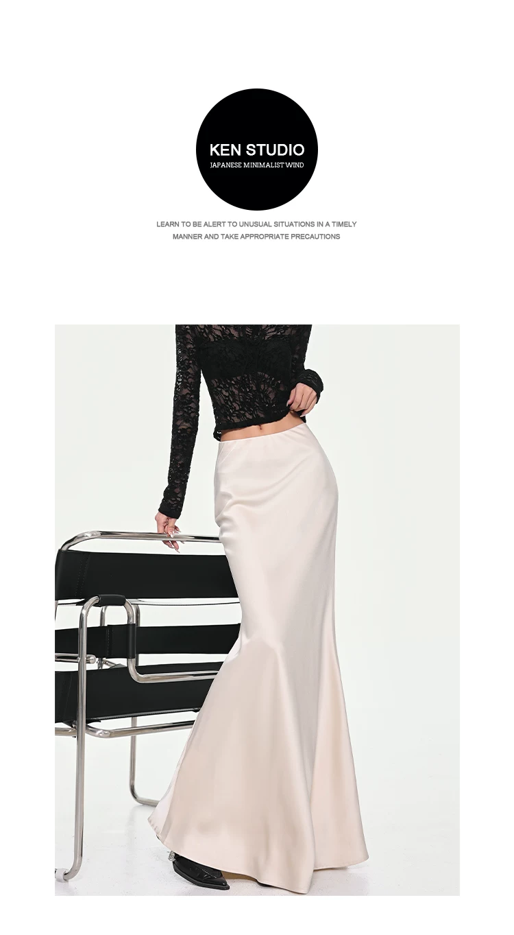 - KEN STUDIO váy đuôi cá xếp nếp bằng vải satin dành cho nữ mùa xuân hè váy ôm dáng cao cấp mới xếp nếp