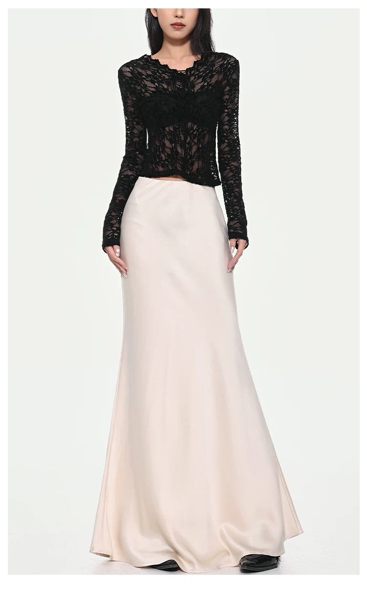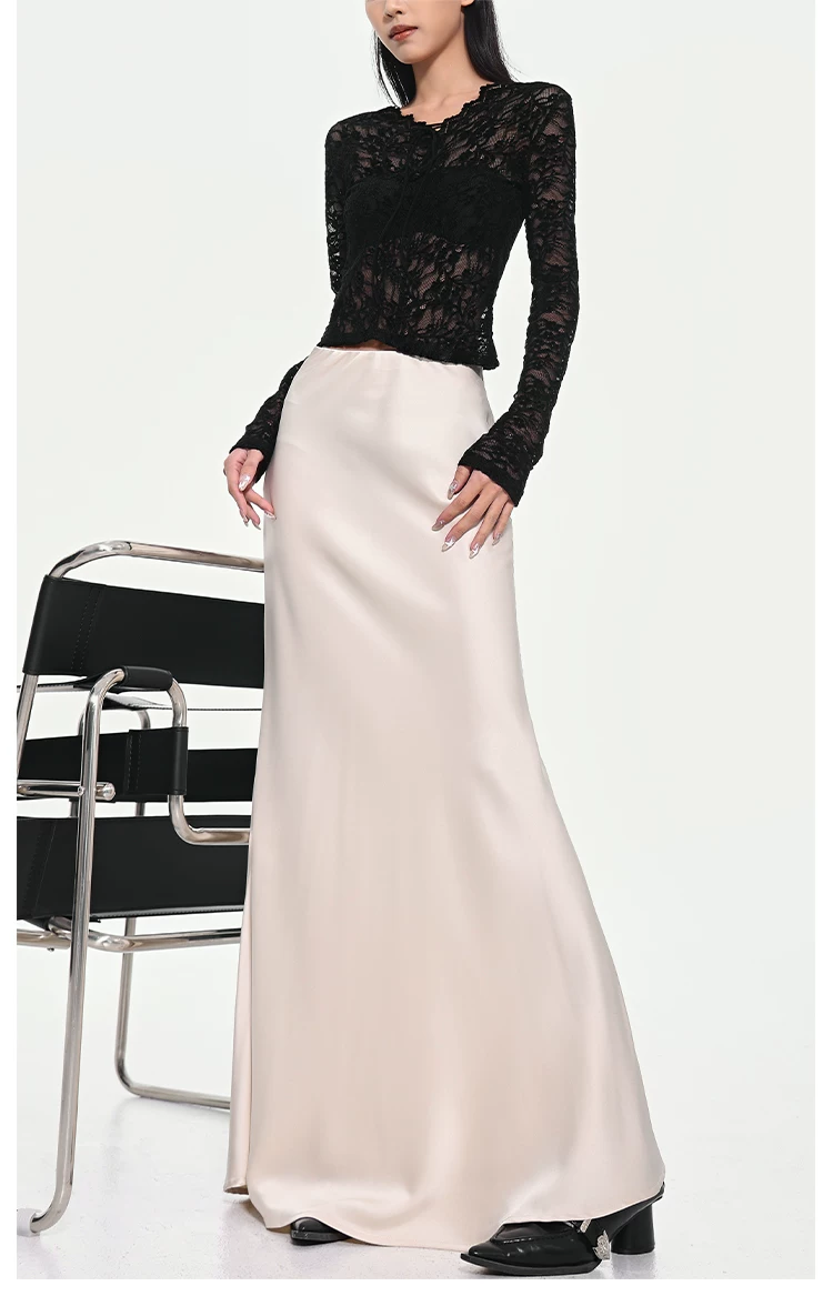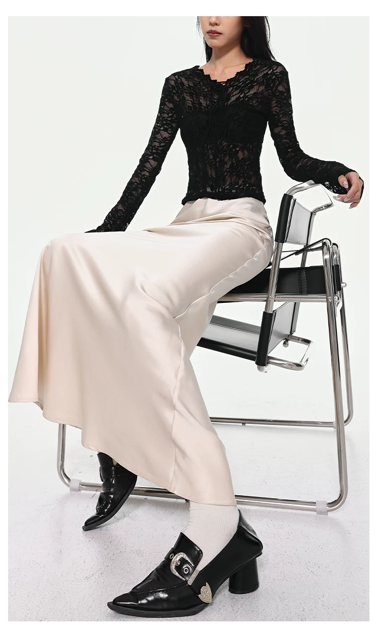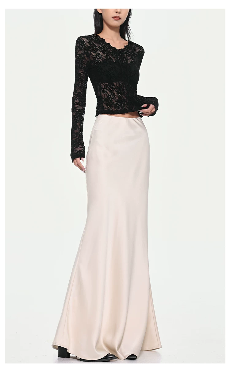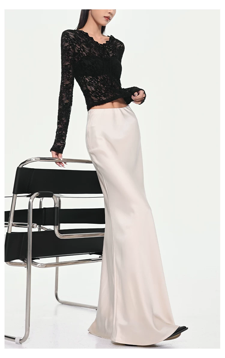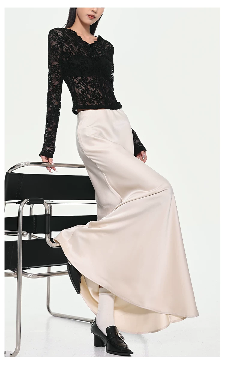 - KEN STUDIO váy đuôi cá xếp nếp bằng vải satin dành cho nữ mùa xuân hè váy ôm dáng cao cấp mới xếp nếp