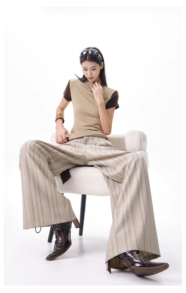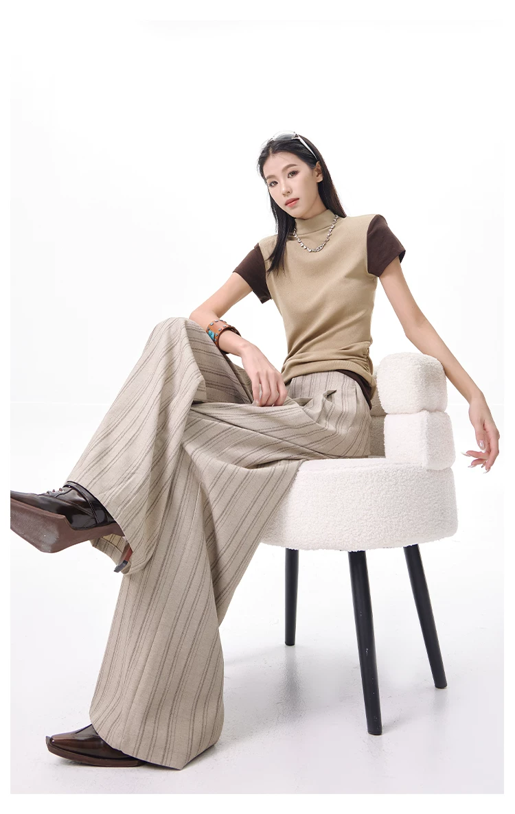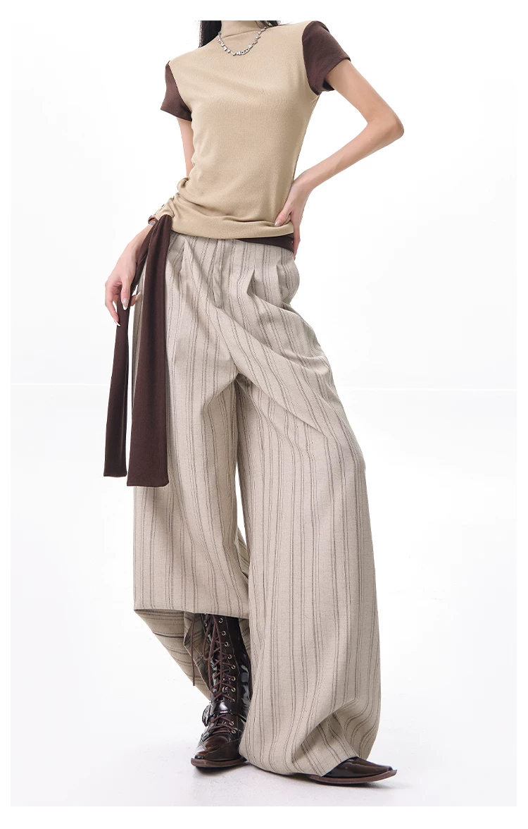 KEN STUDIO Xuân Thu Màu Mới Quần Sọc Phù Hợp Với Nữ Cao Cấp Rời Drap Giảm Béo Quần Ống Rộng