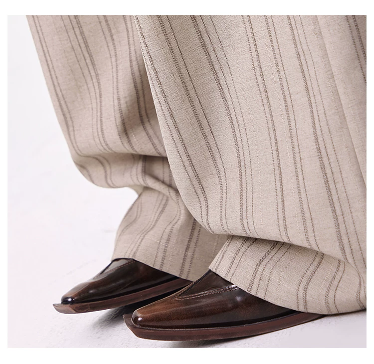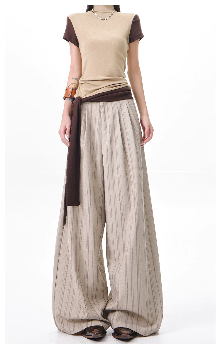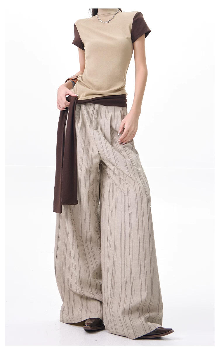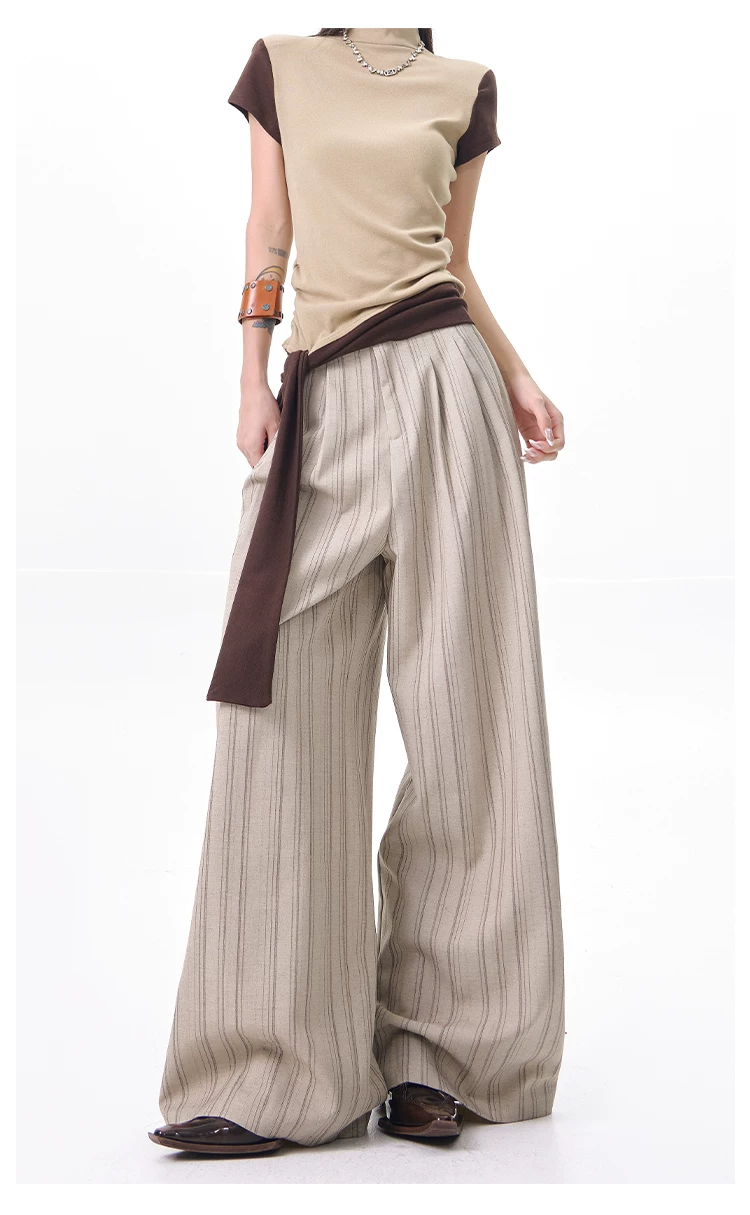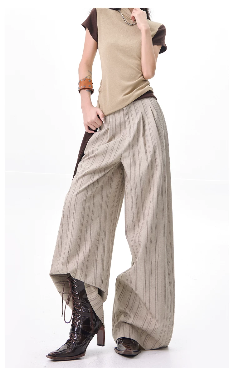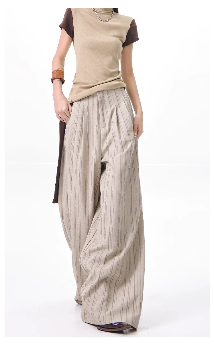 - KEN STUDIO Xuân Thu Màu Mới Quần Sọc Phù Hợp Với Nữ Cao Cấp Rời Drap Giảm Béo Quần Ống Rộng