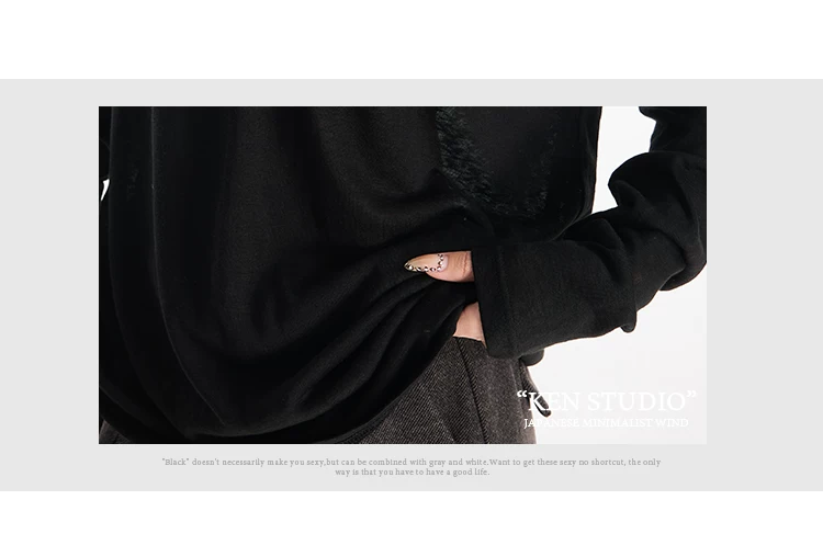 KEN STUDIO Xuân Thu Mới Màu Đen Cổ Henry Áo thun dài tay hơi lộn trộn Áo thun nữ dáng ôm vừa vặn Áo sơ mi cơ bản