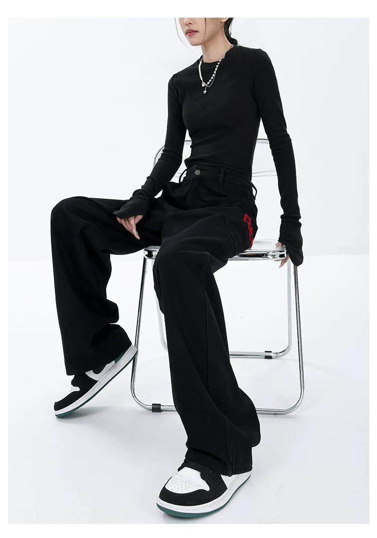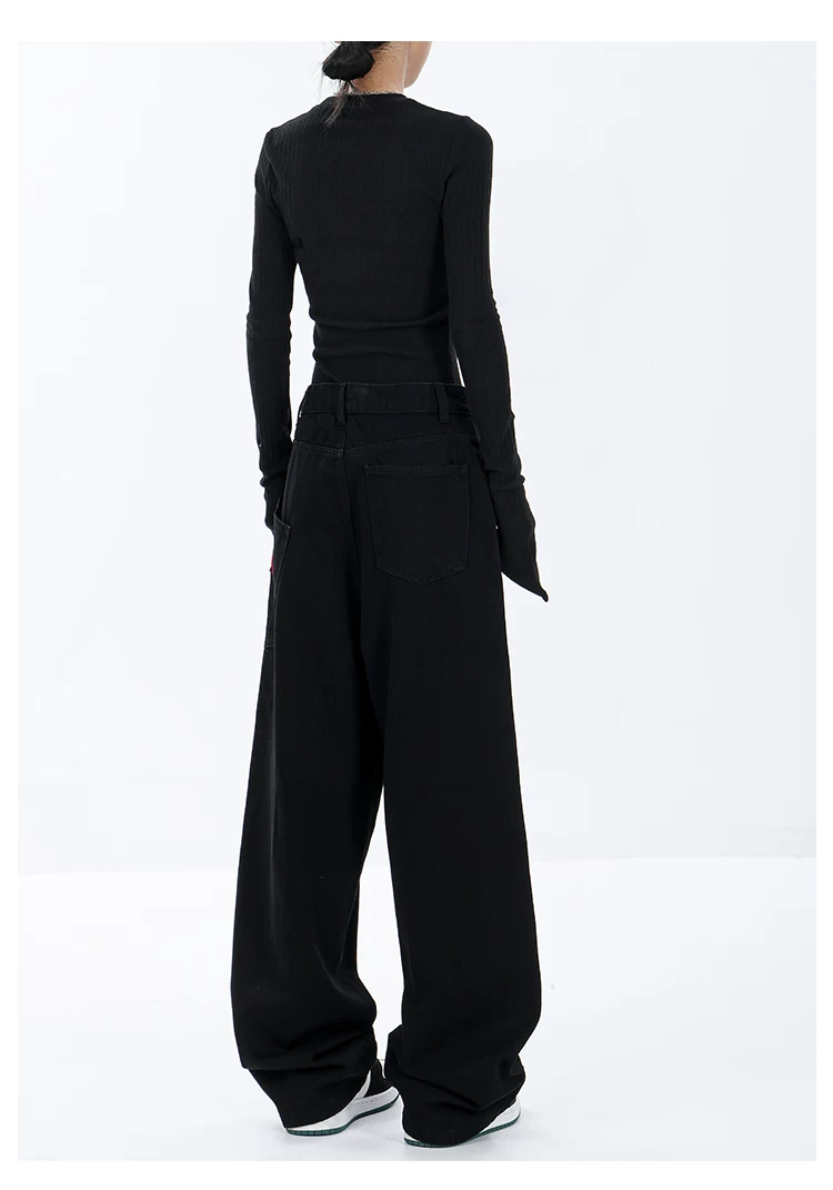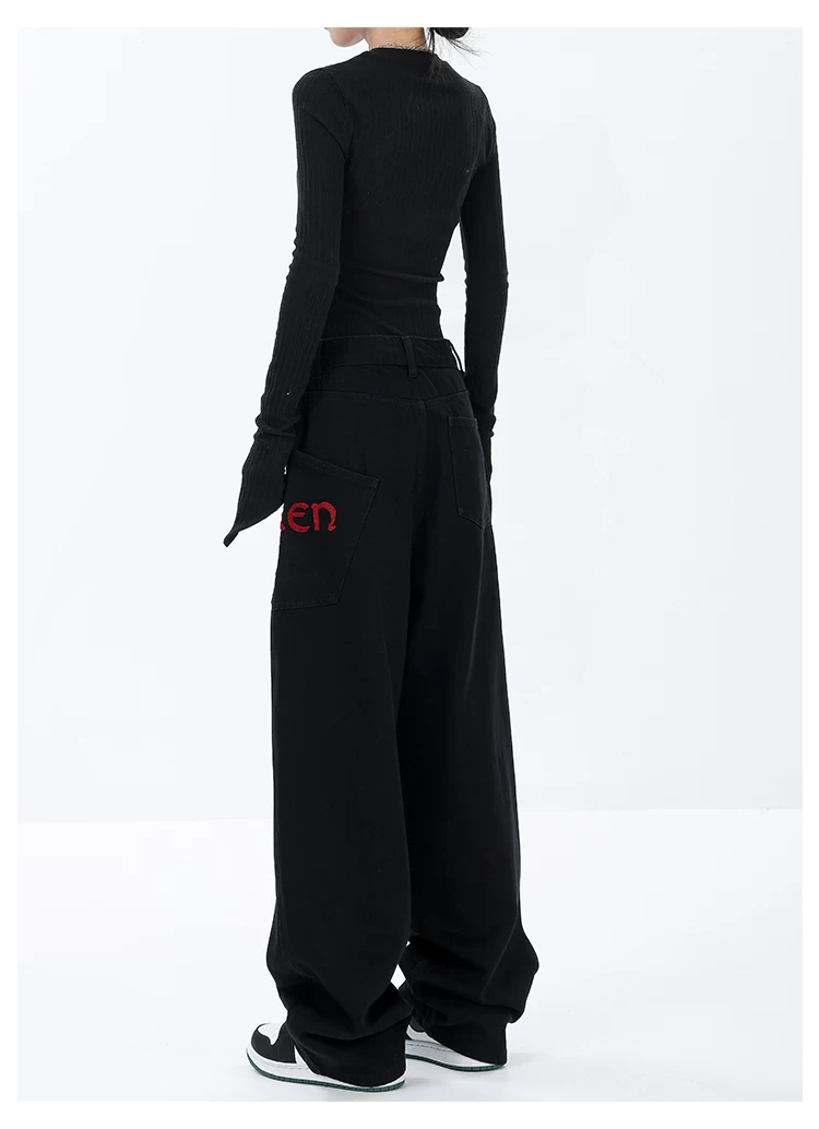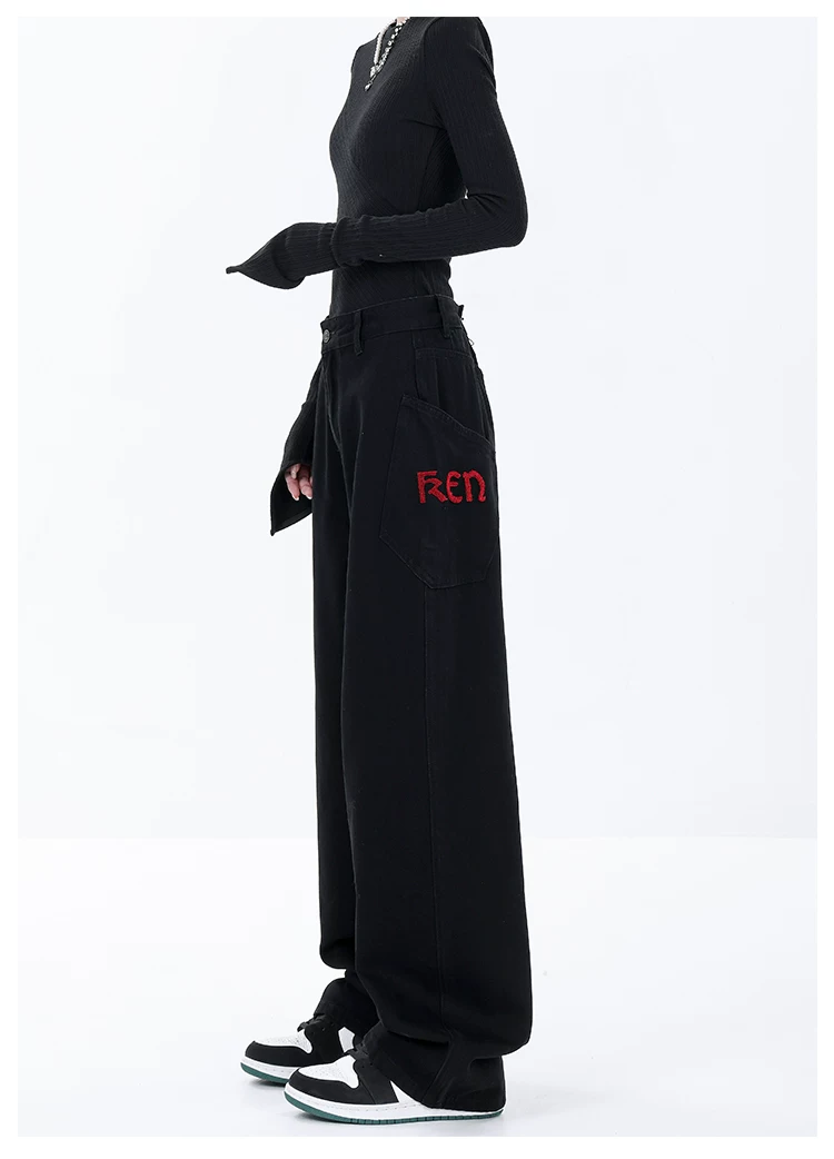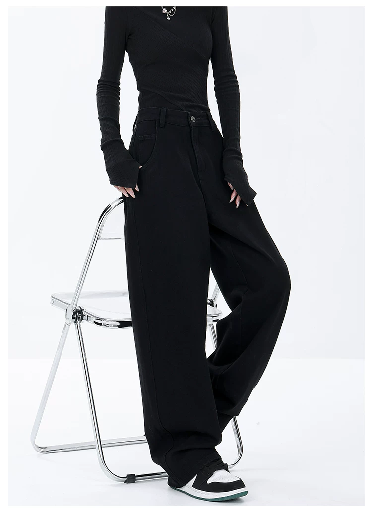 - KEN STUDIO Xuân Thu Mới Màu Đen Rộng Quần Jean Ống Rộng Nữ Mỹ Retro Quần Ống Thẳng Quần Dài Quần