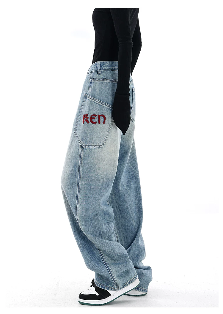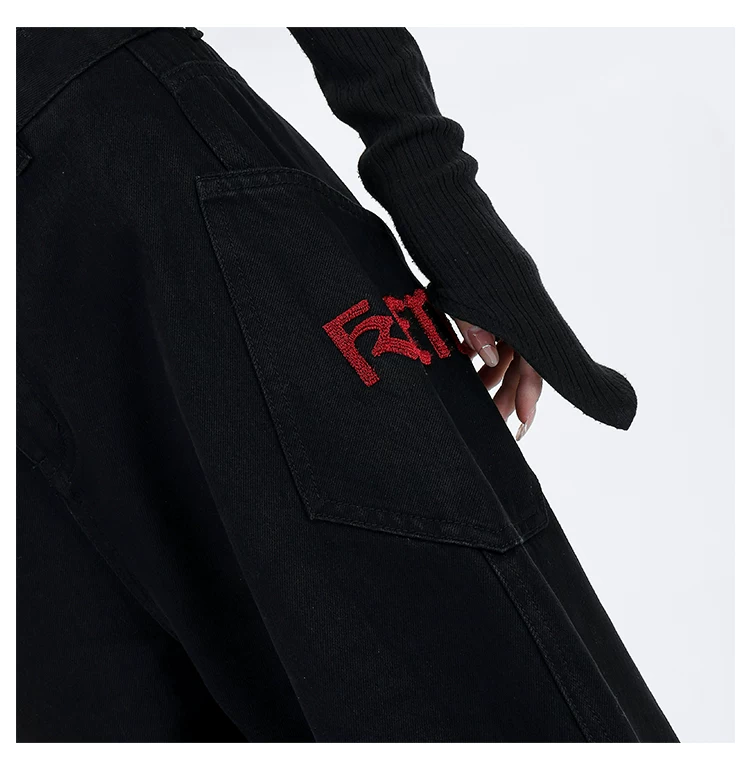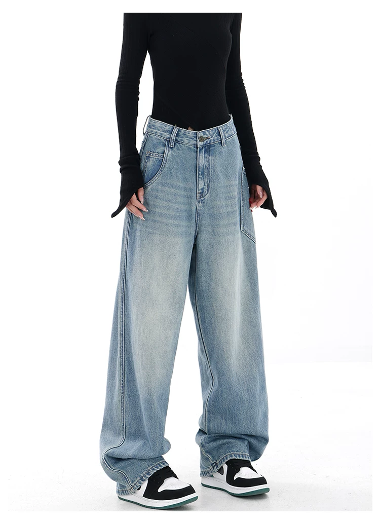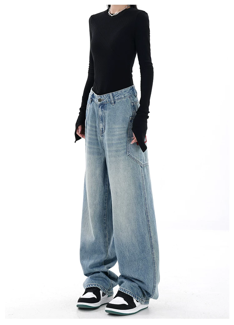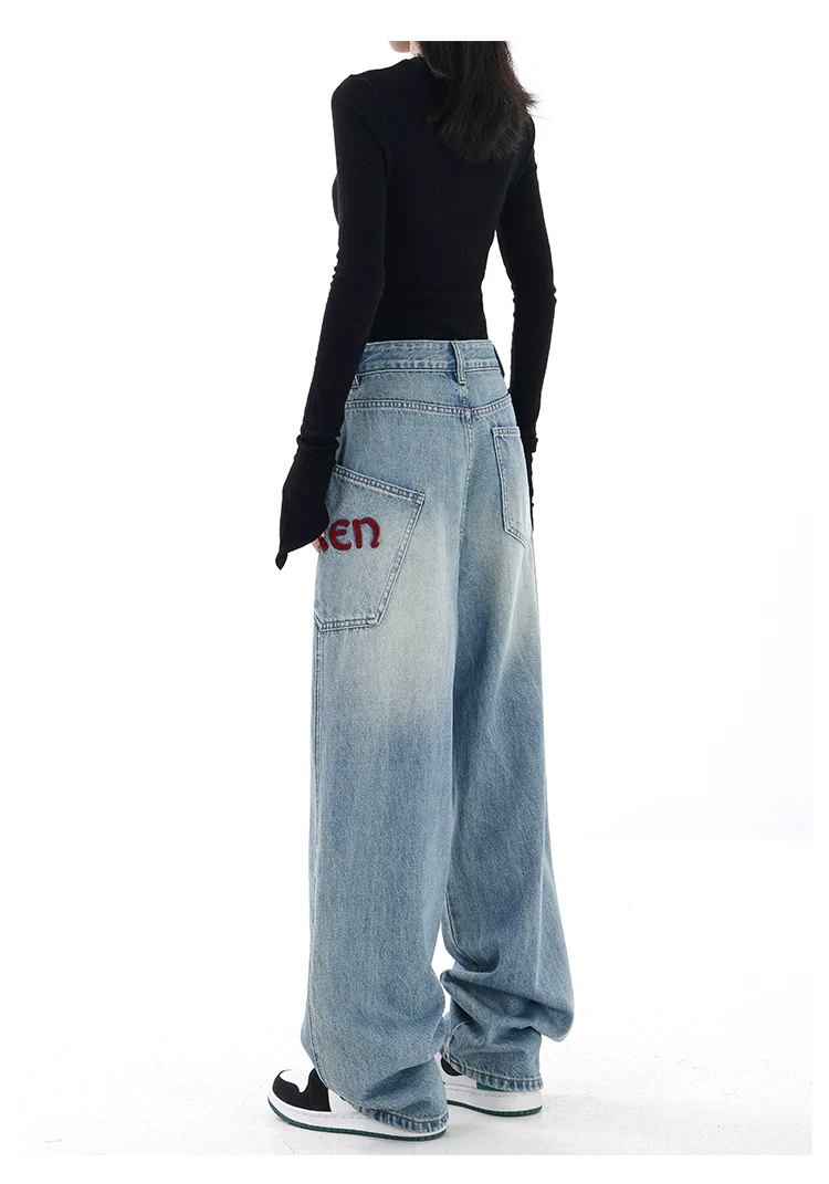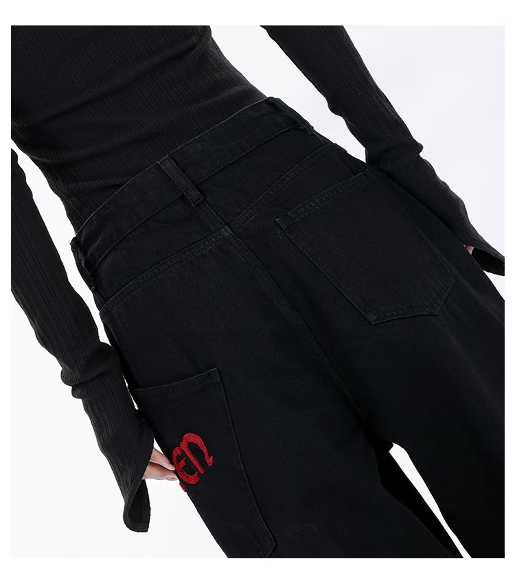 - KEN STUDIO Xuân Thu Mới Màu Đen Rộng Quần Jean Ống Rộng Nữ Mỹ Retro Quần Ống Thẳng Quần Dài Quần